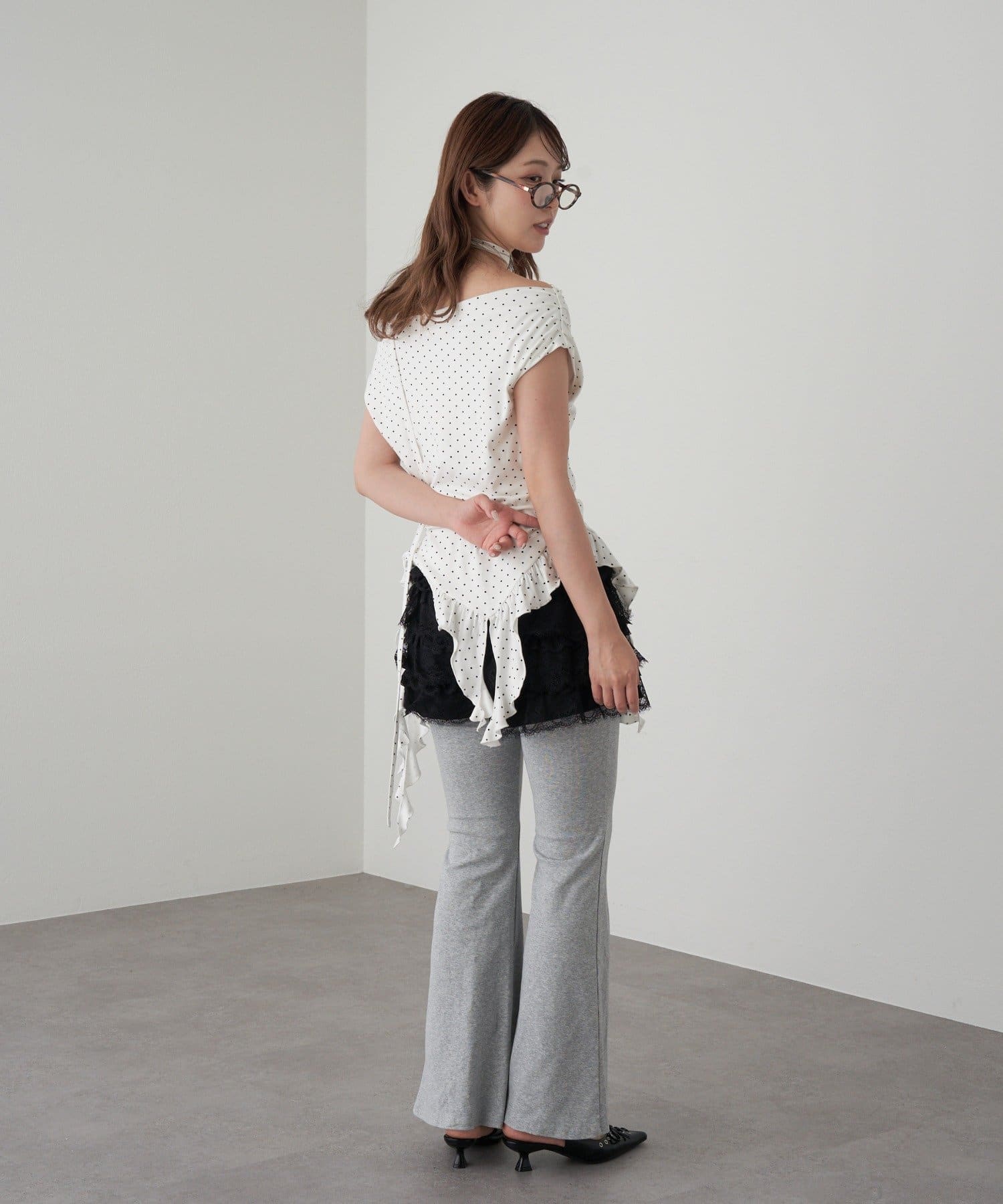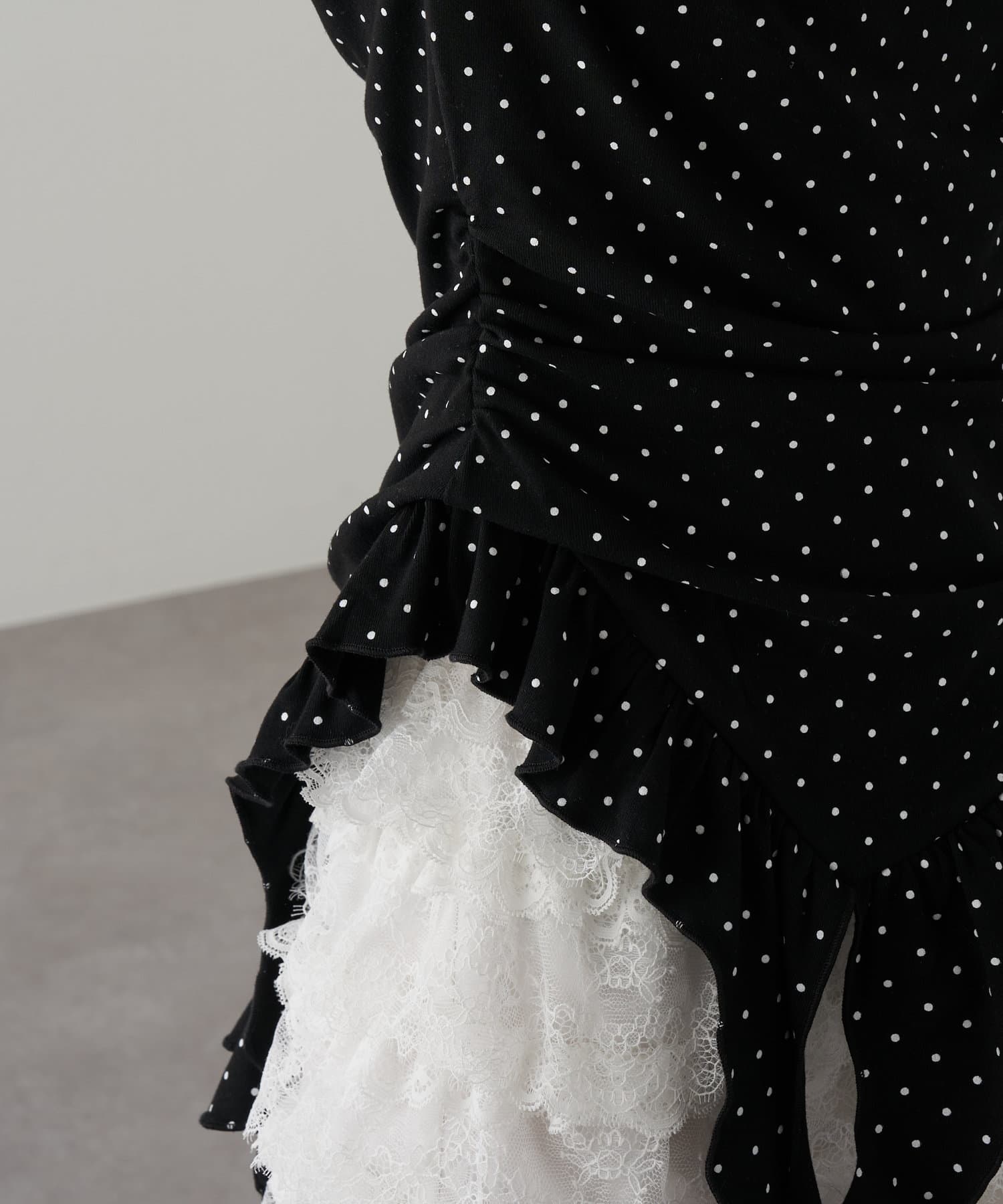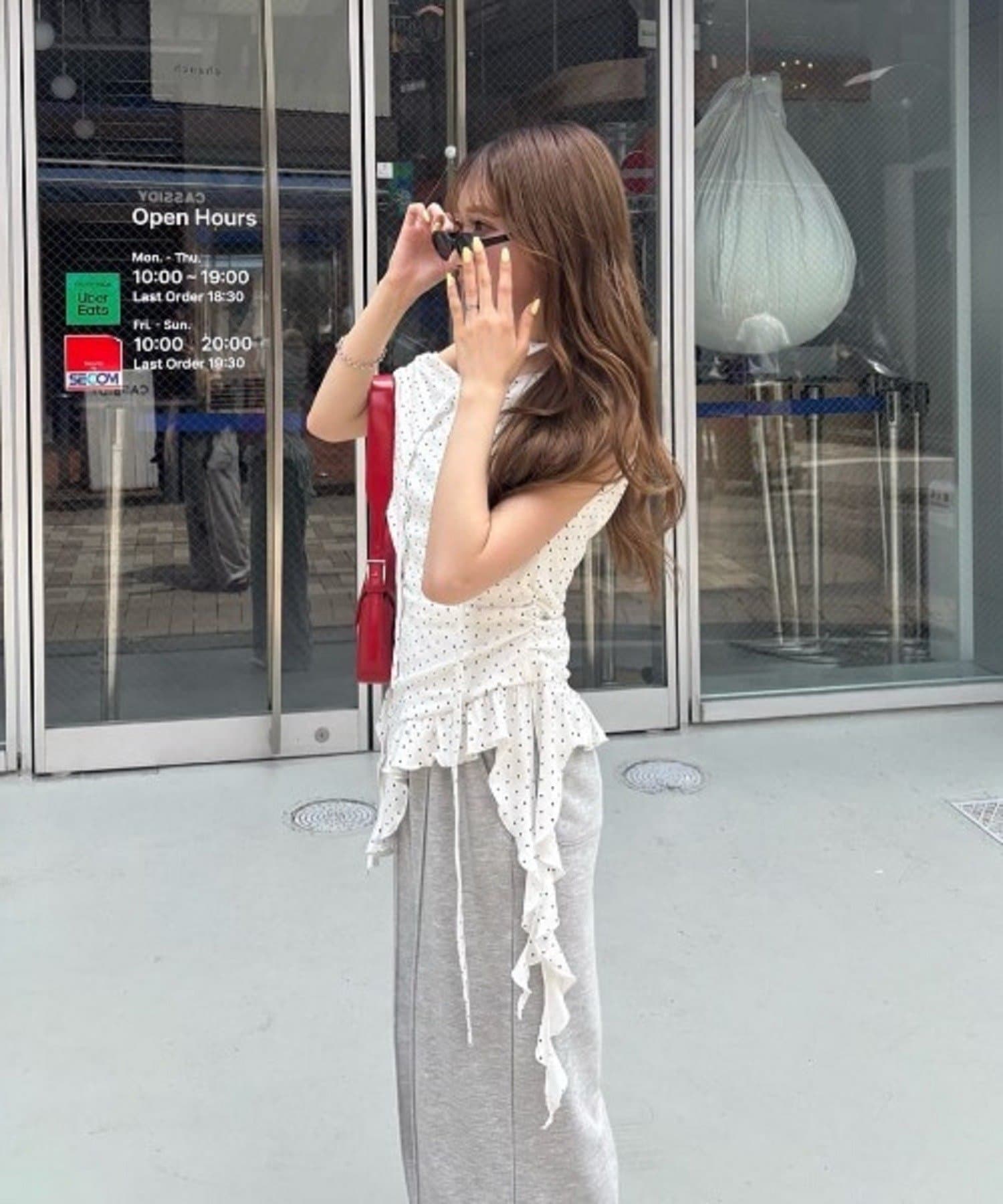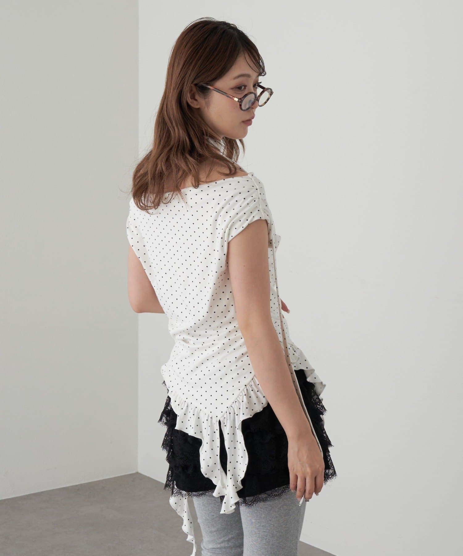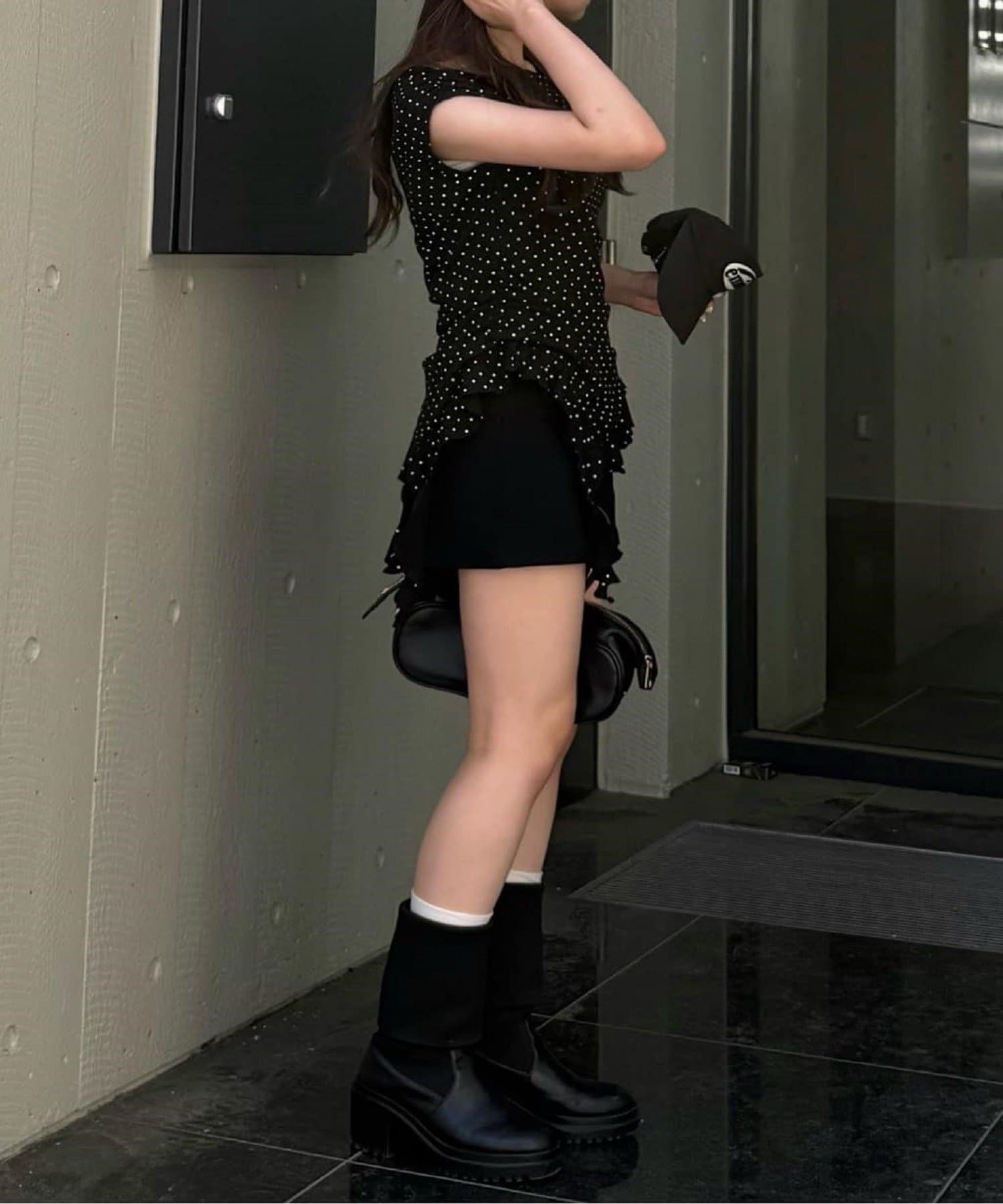 最近よく見かける流行りのドット柄がとても可愛くて買いました!裾の部分がひらひらで長くなっているのもオシャレで可愛いです♡