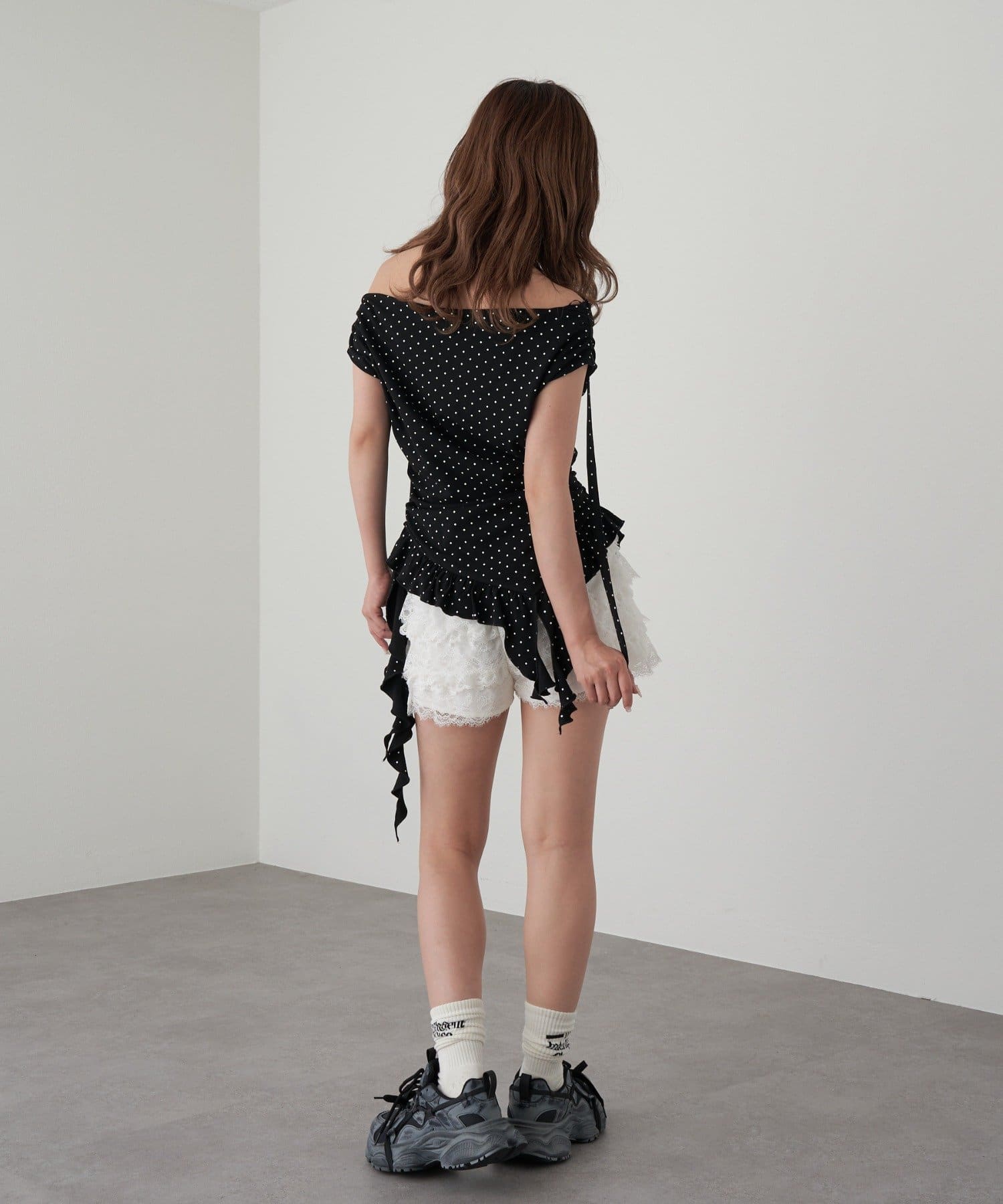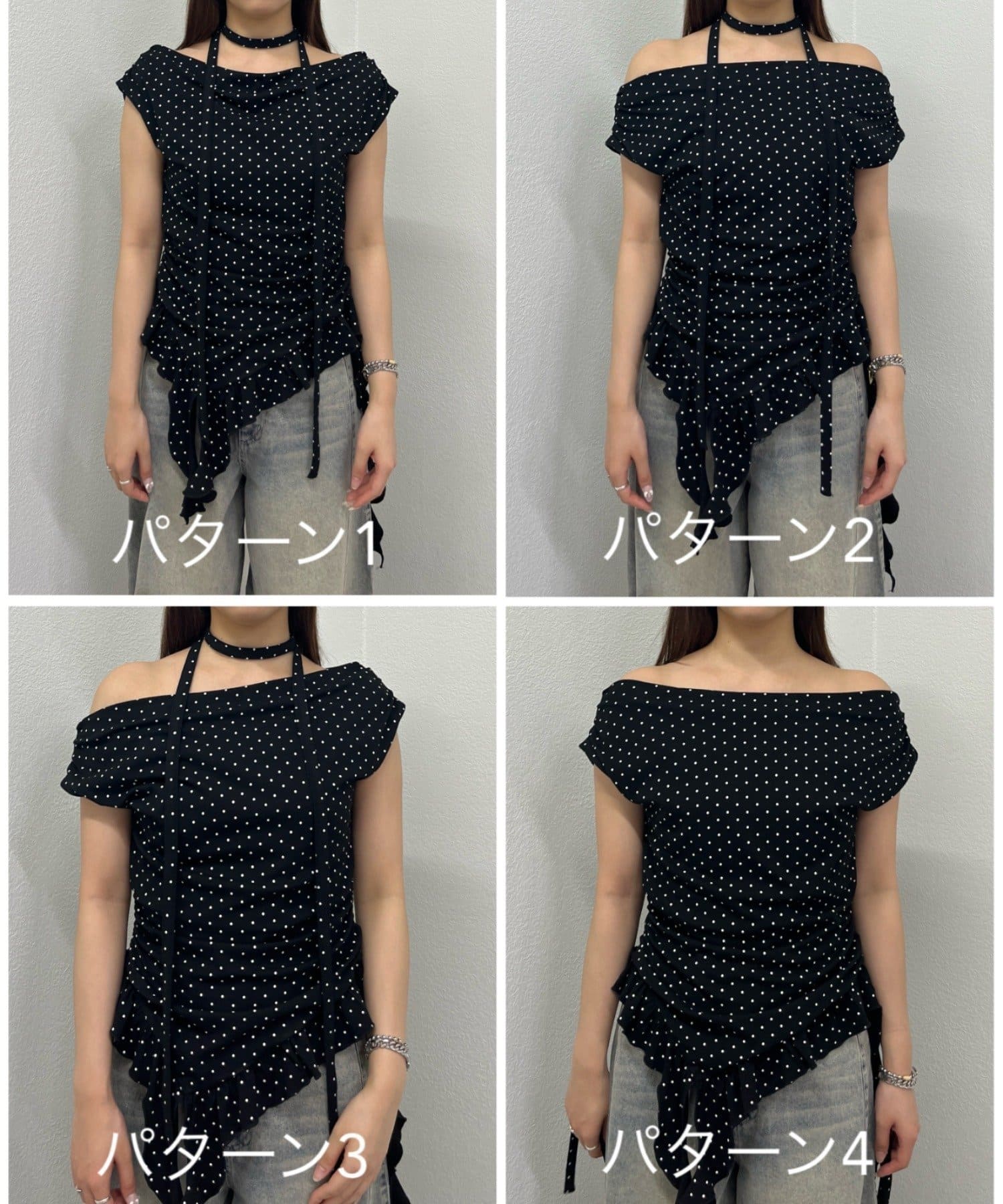 オフショル、ワンショル、ノーマルなど様々な着方ができるトップスです。