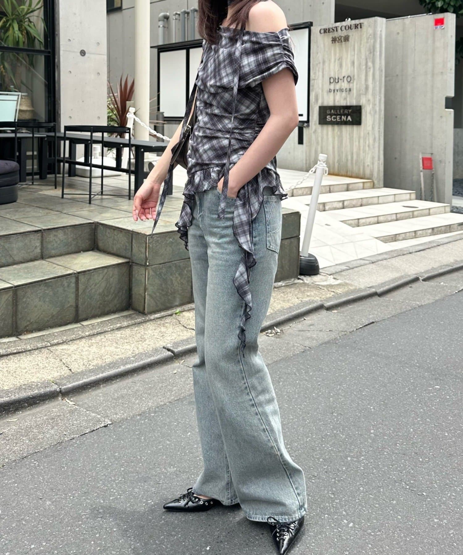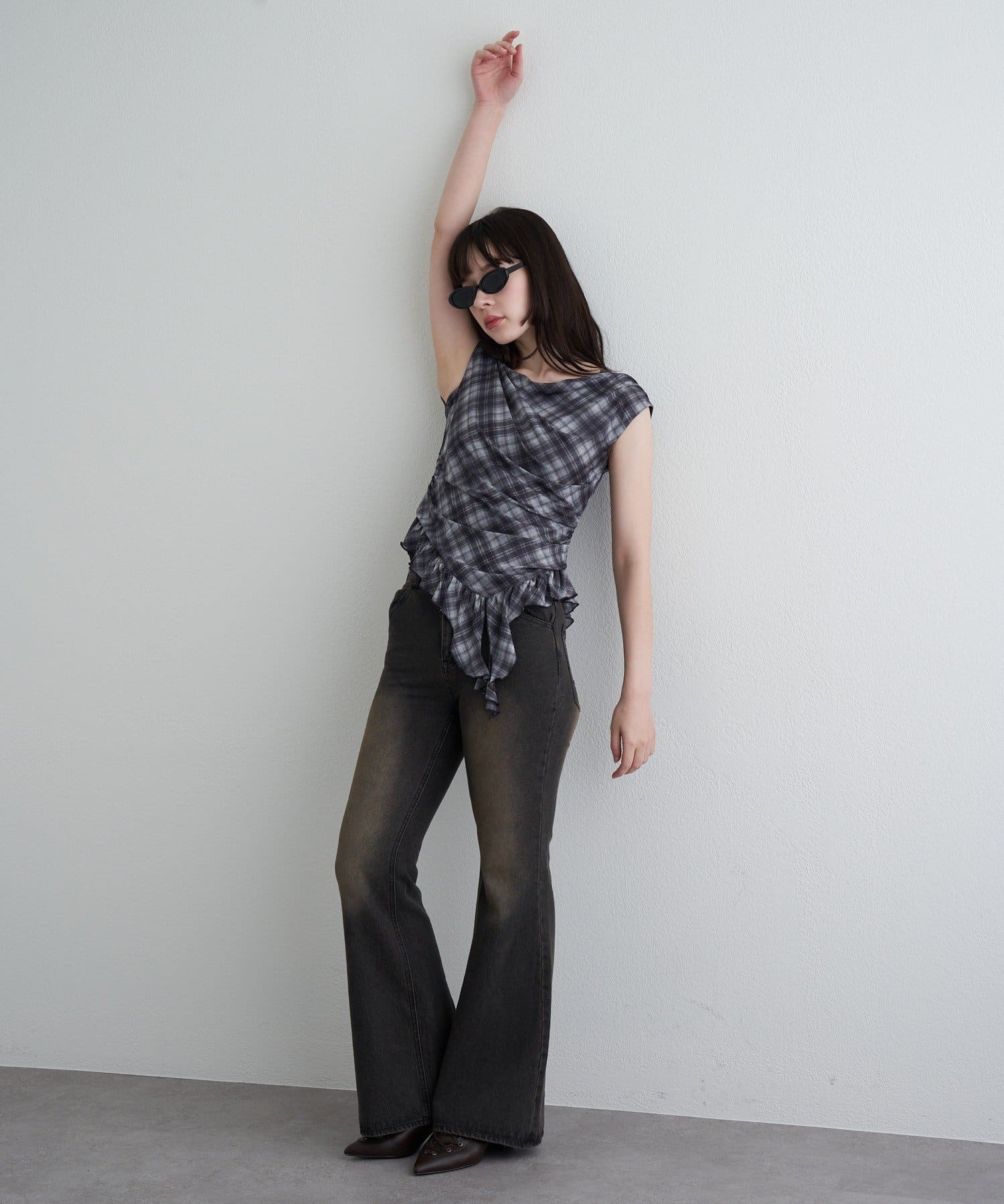 フリルデザインですが、カットソー素材でカジュアルなので甘く見え過ぎずに着れます!
