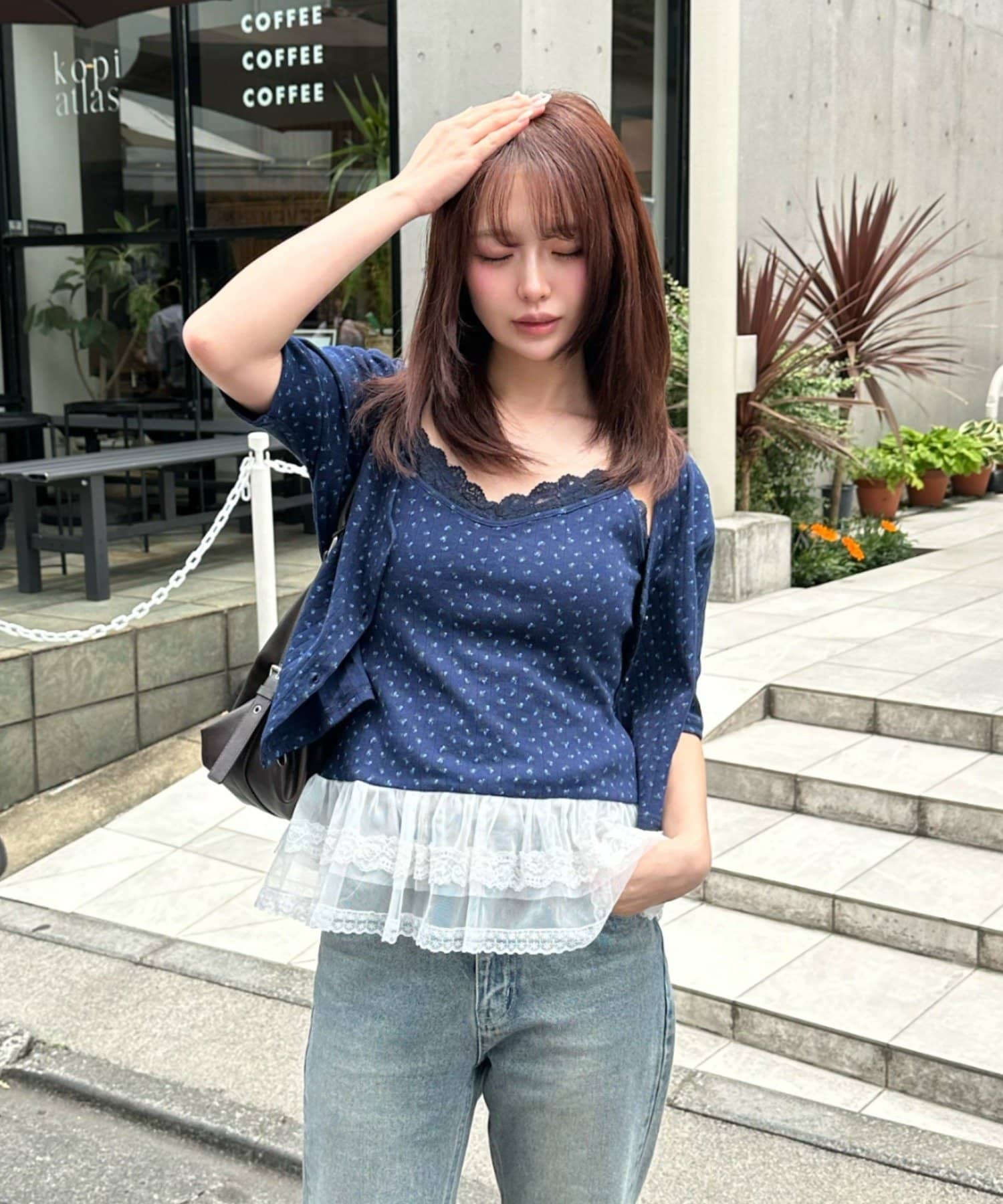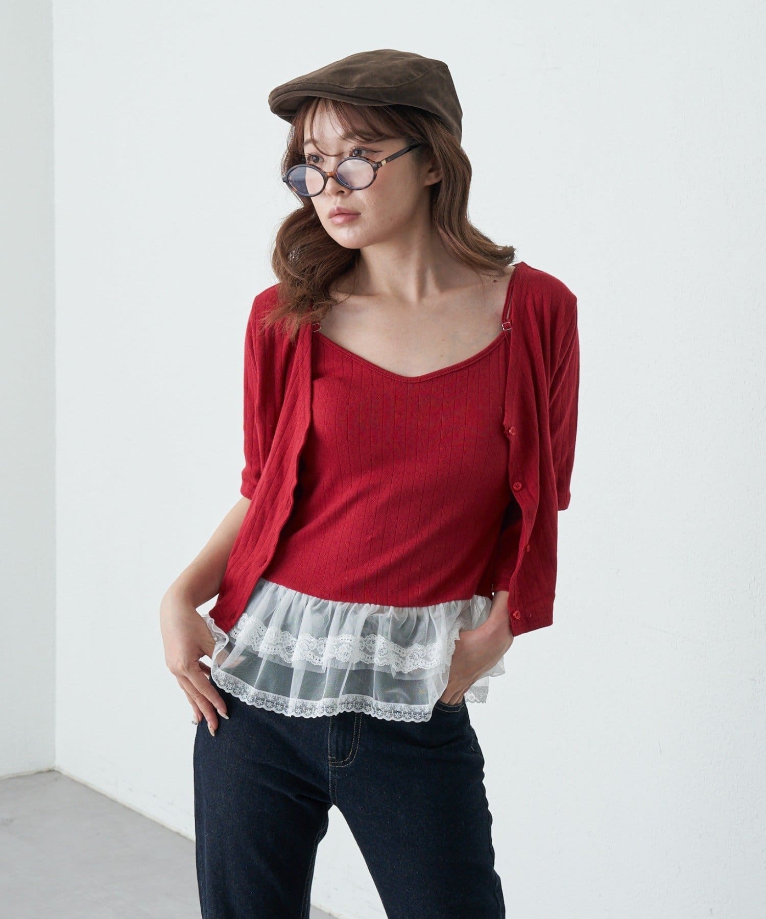 ・フリルキャミソールとカーディガンがセットのアイテム。