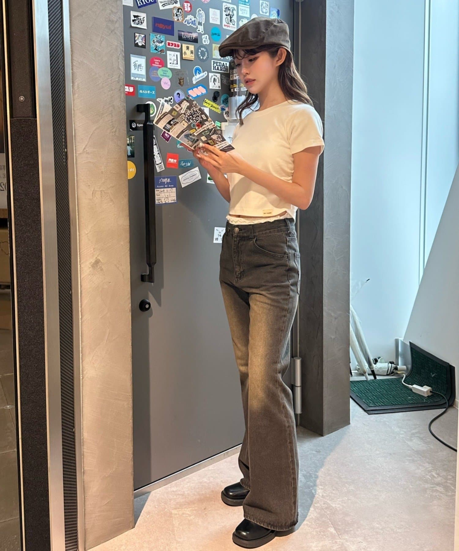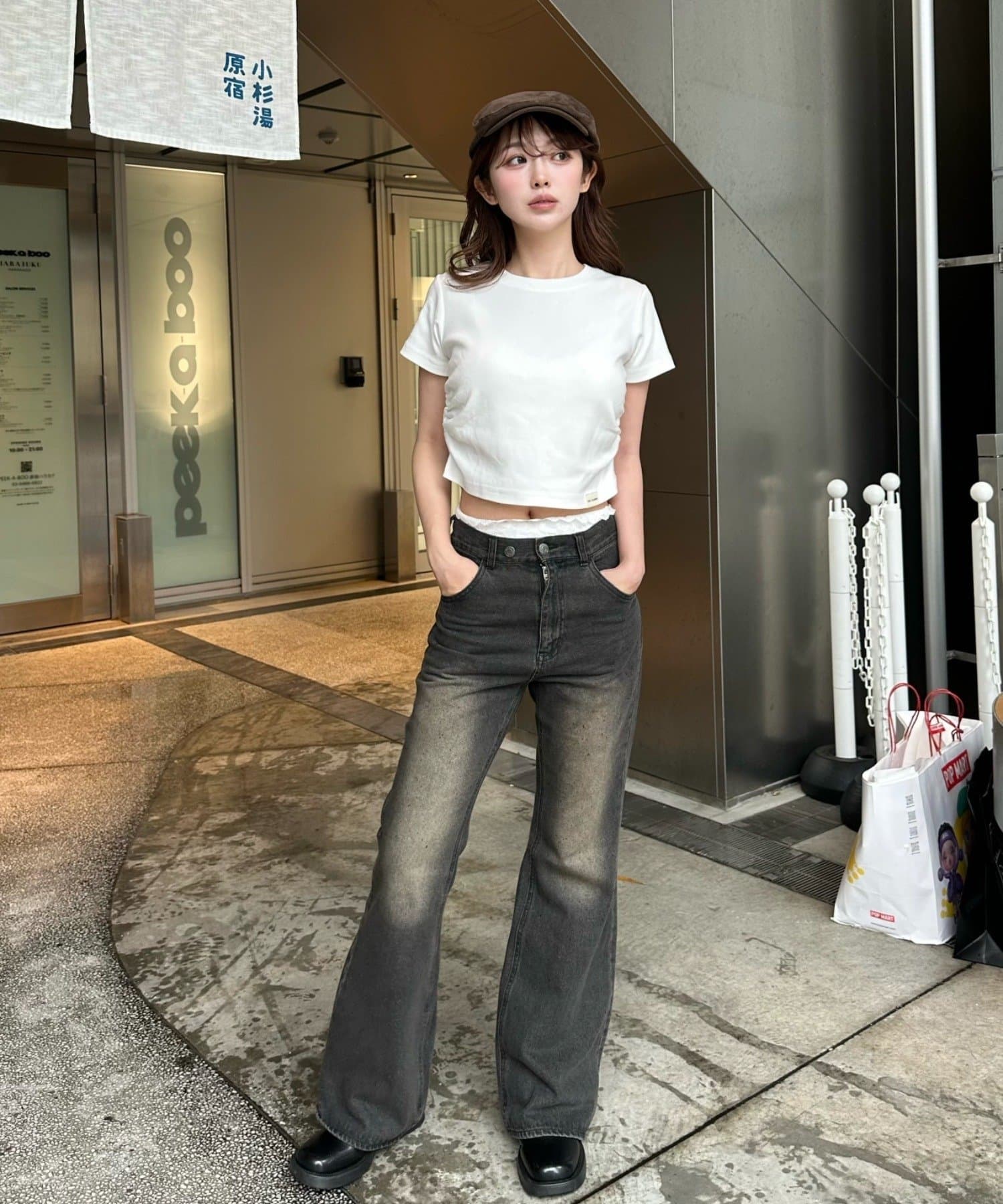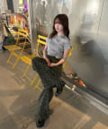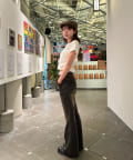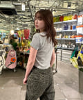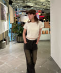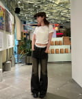 ・コンパクトなTシャツのため、ルーズなボトムもバランス良く、フレアなボトムでよりスタイルアップして着用できます。