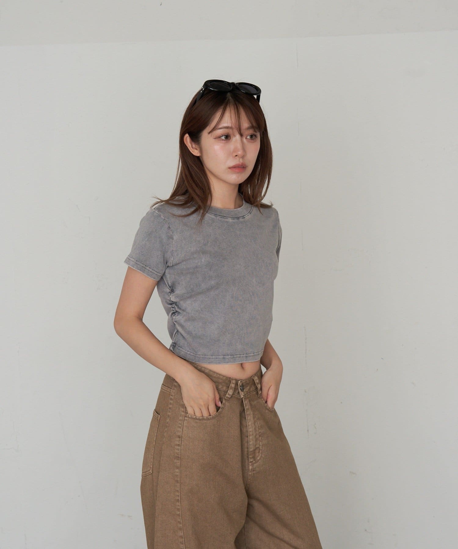 コンパクトTシャツ / ミニTシャツ / ギャザー / 骨格ストレート / カジュアル