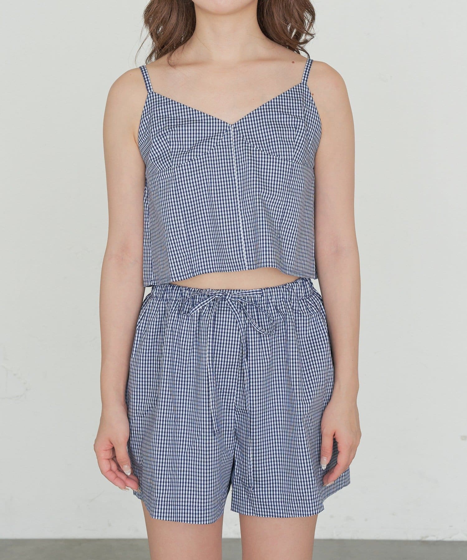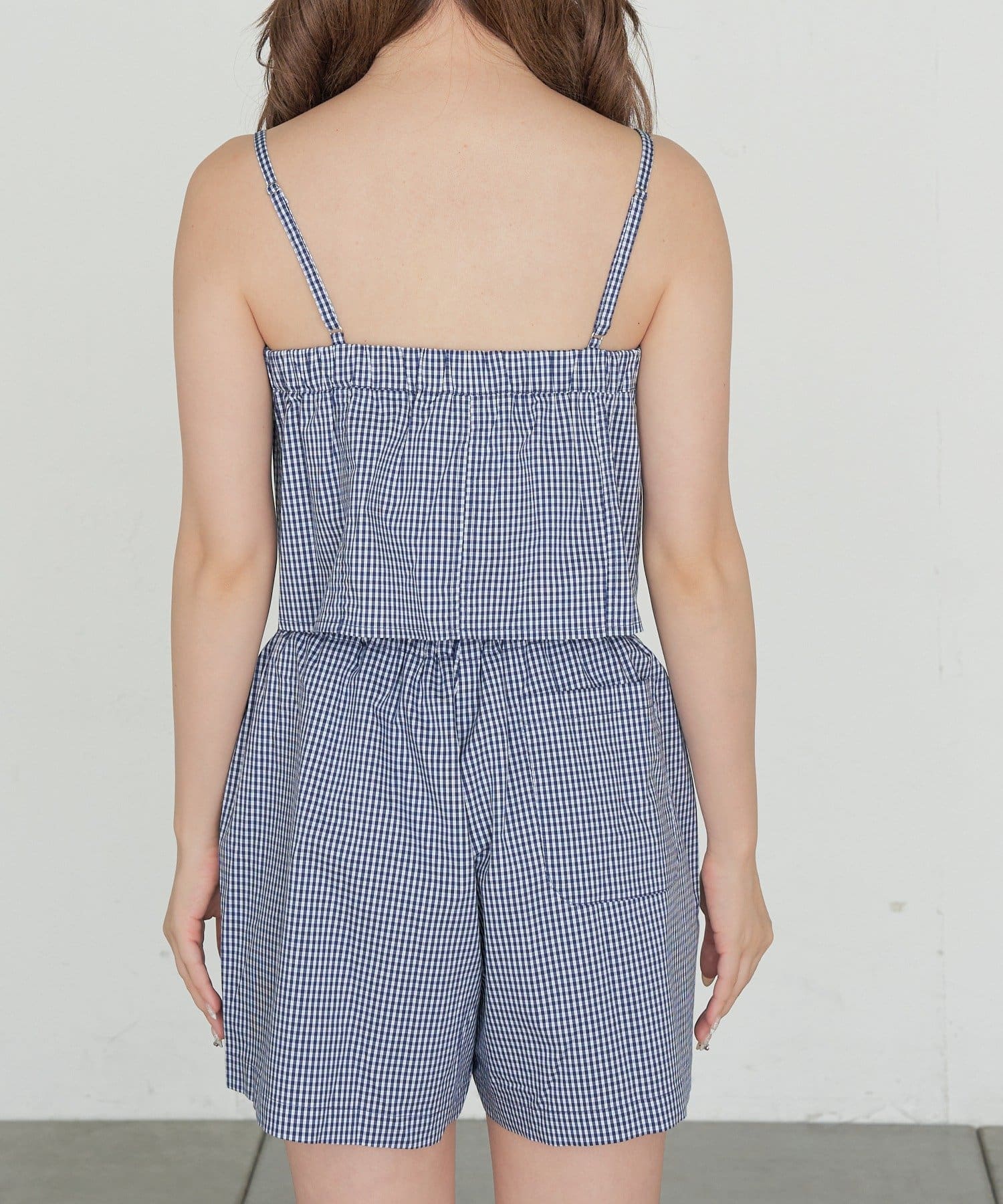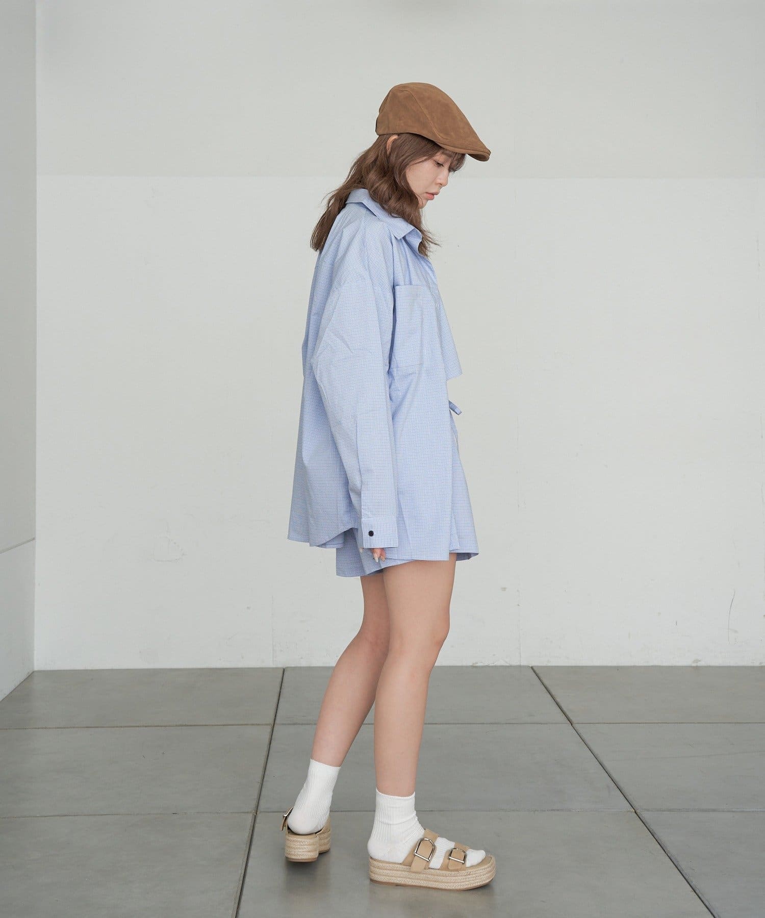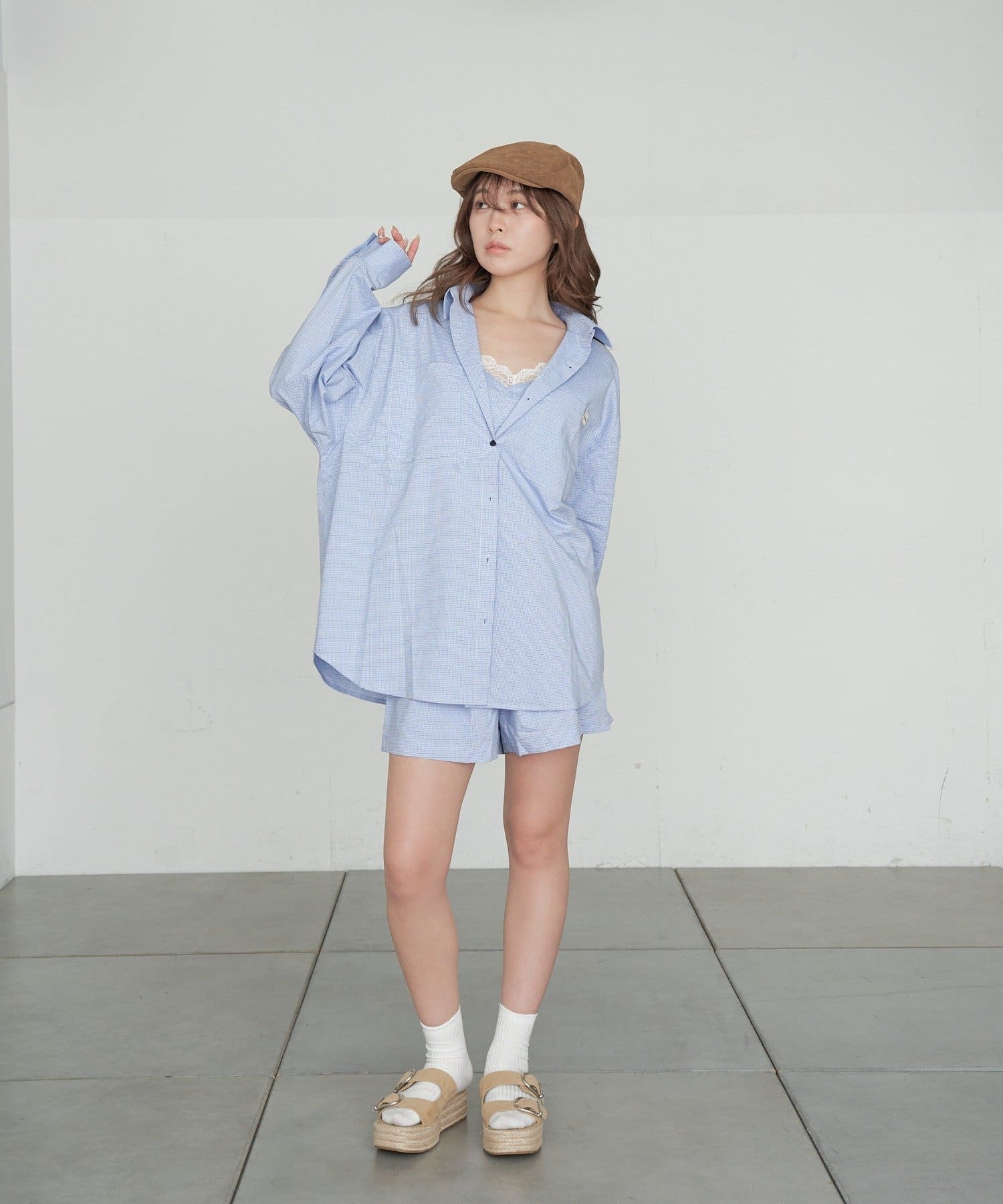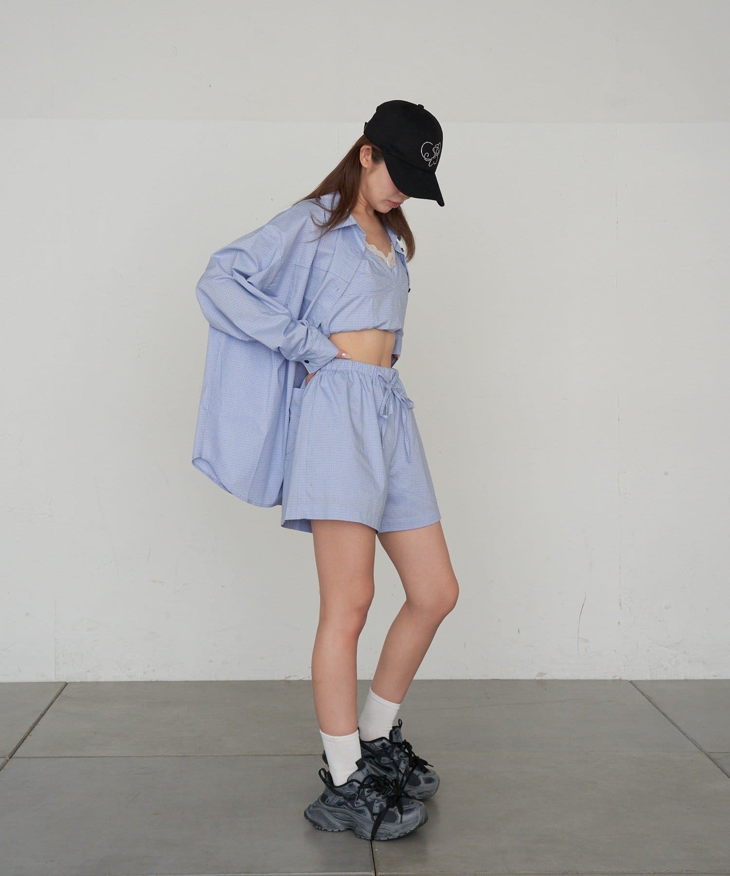 【セットアップ/3点セット】ルーズチェックシャツフリルキャミSET