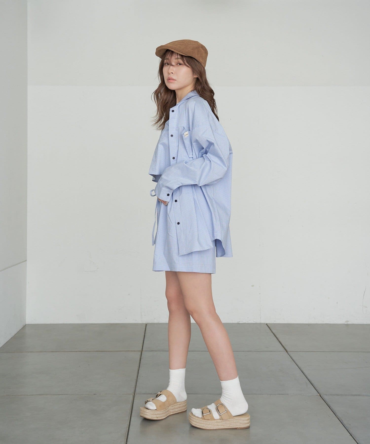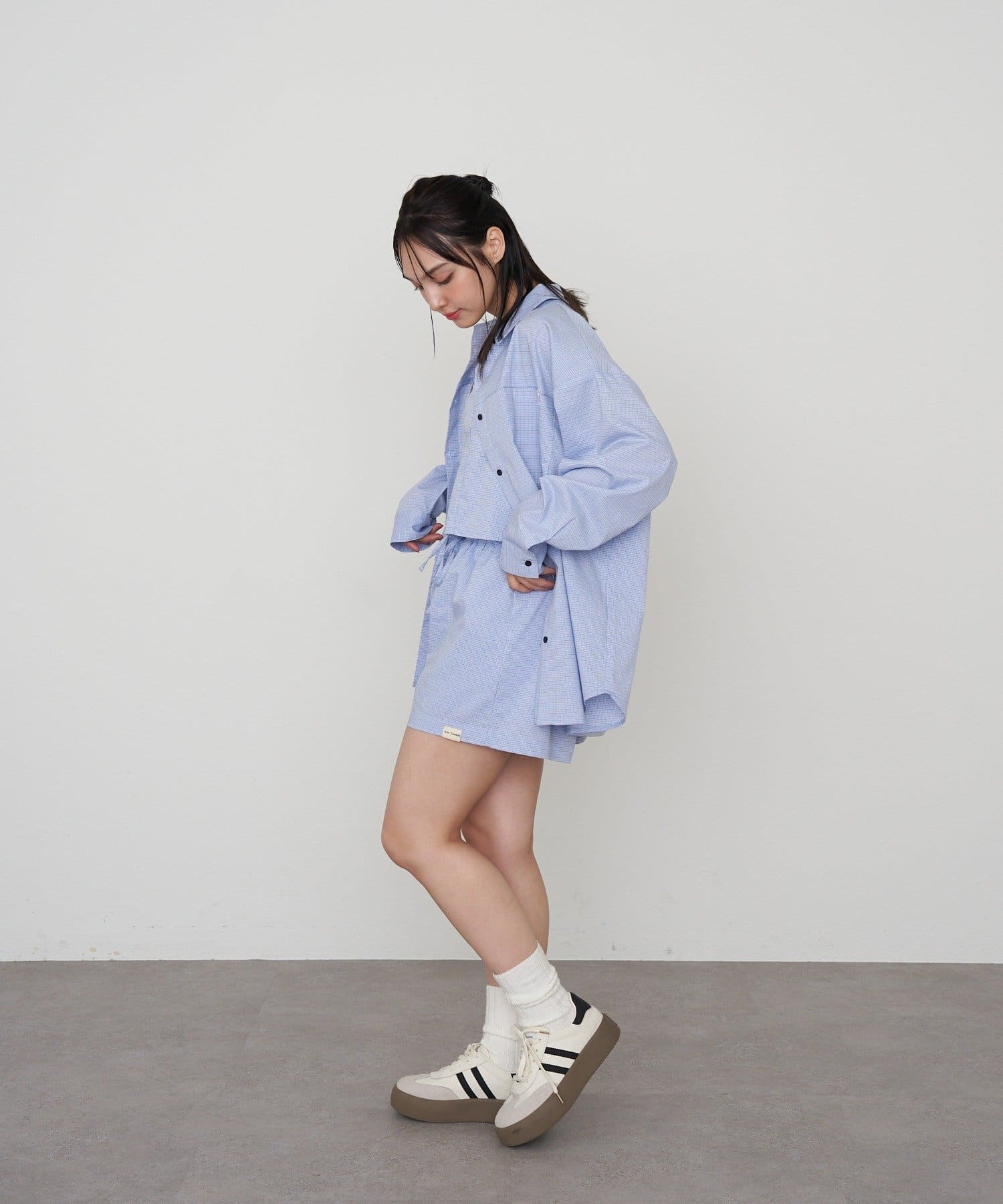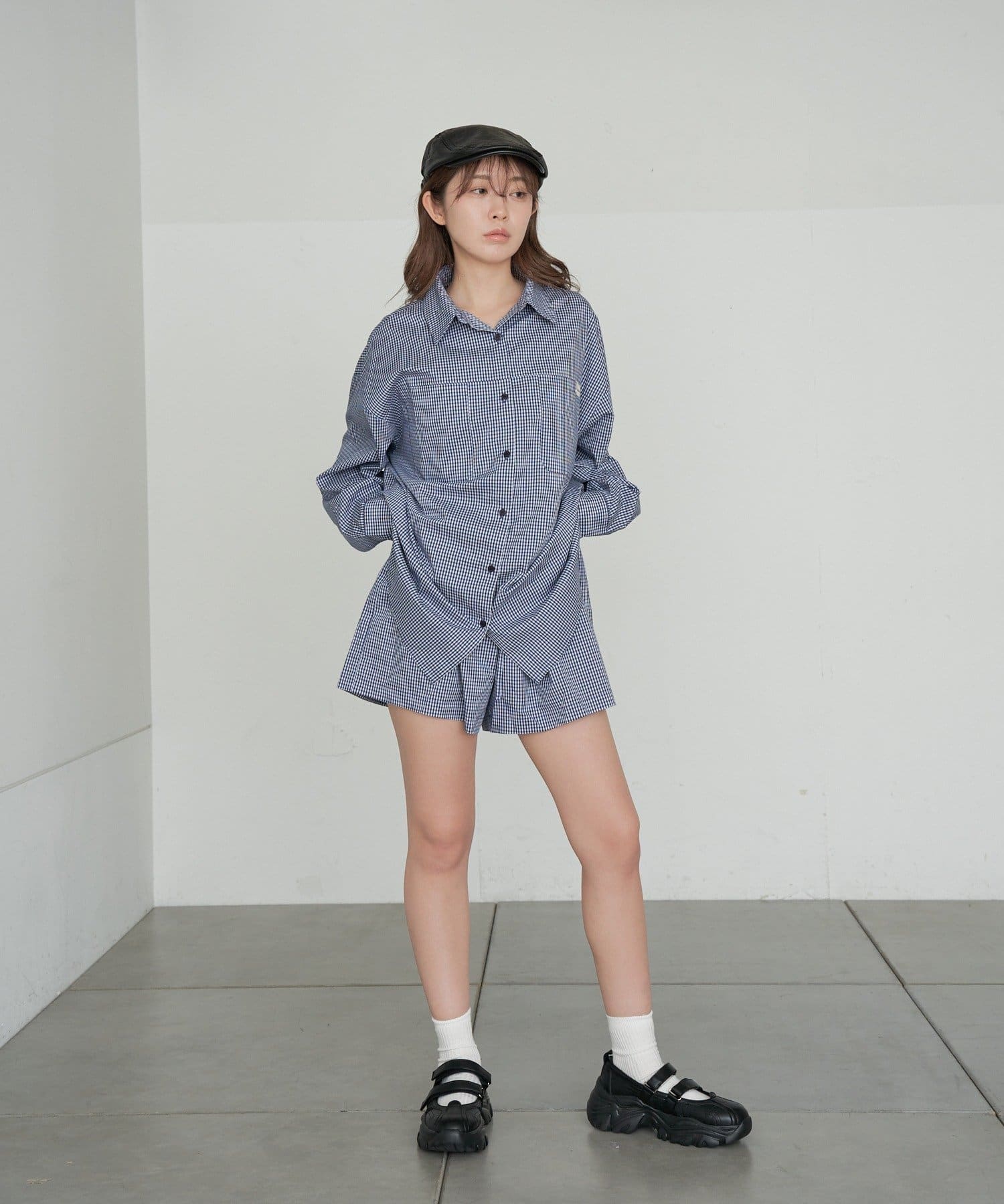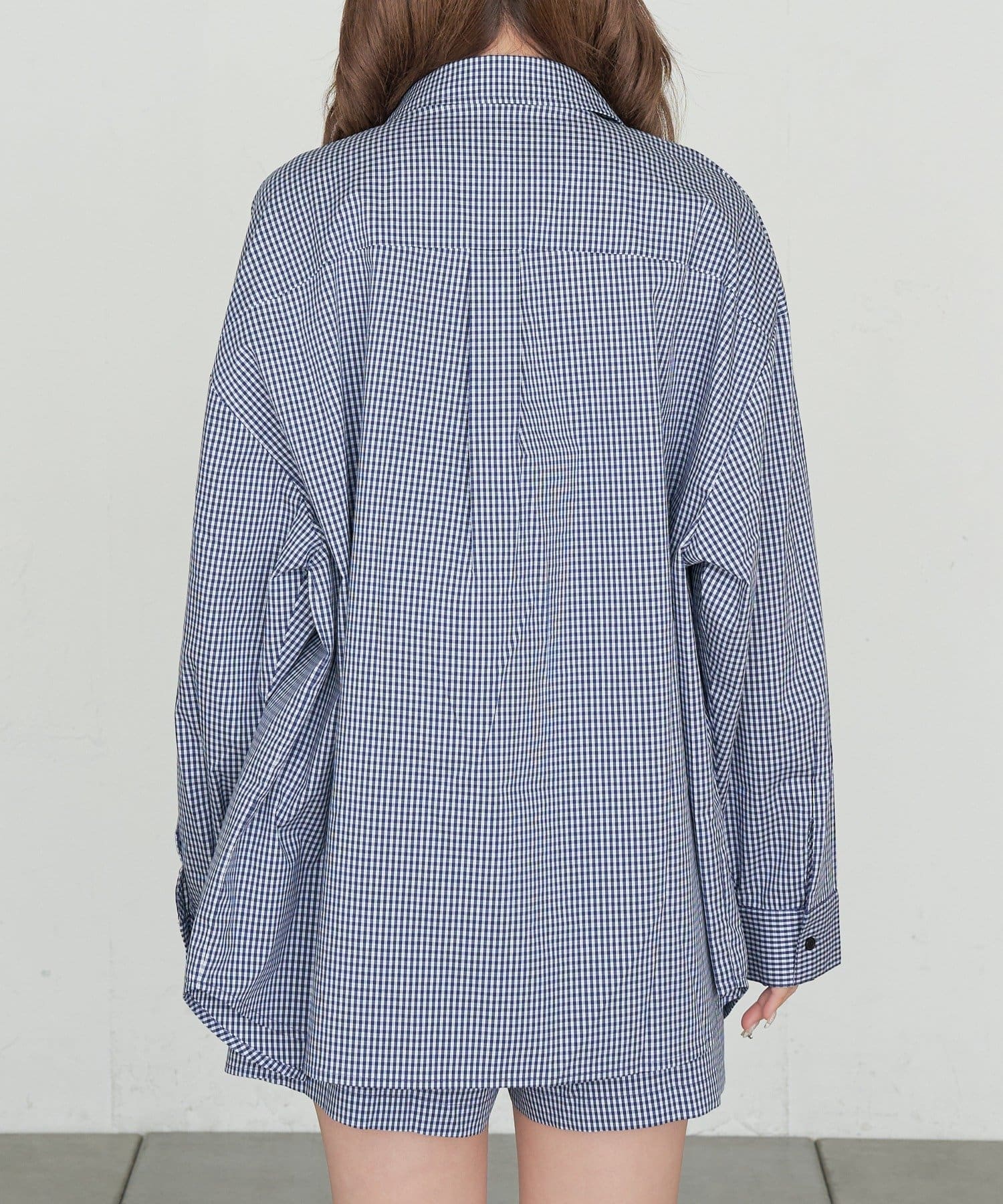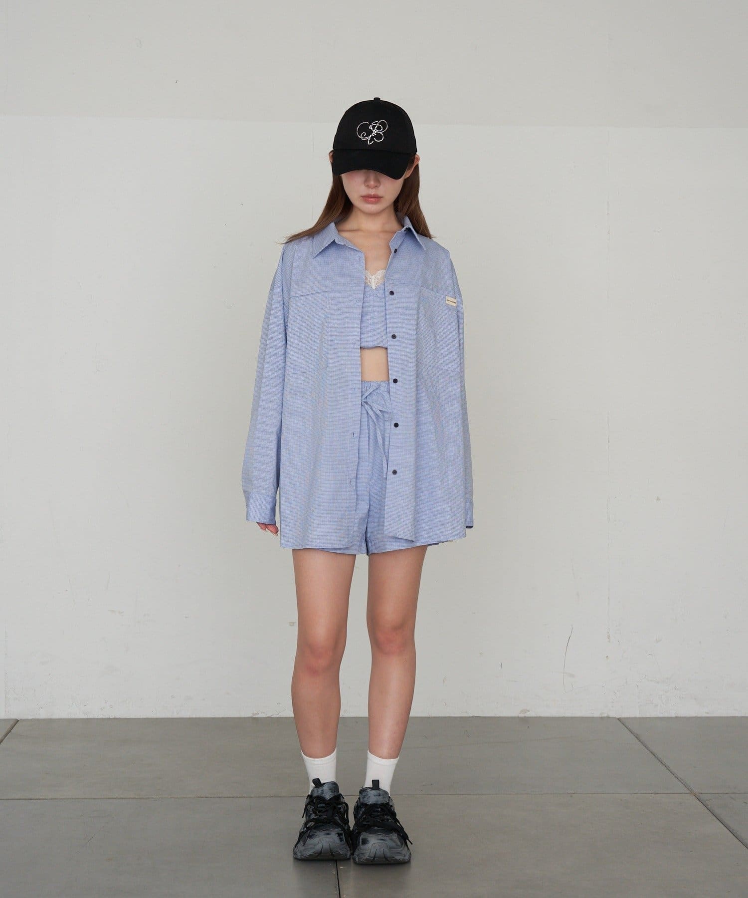 【セットアップ/3点セット】ルーズチェックシャツフリルキャミSET