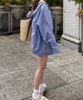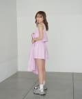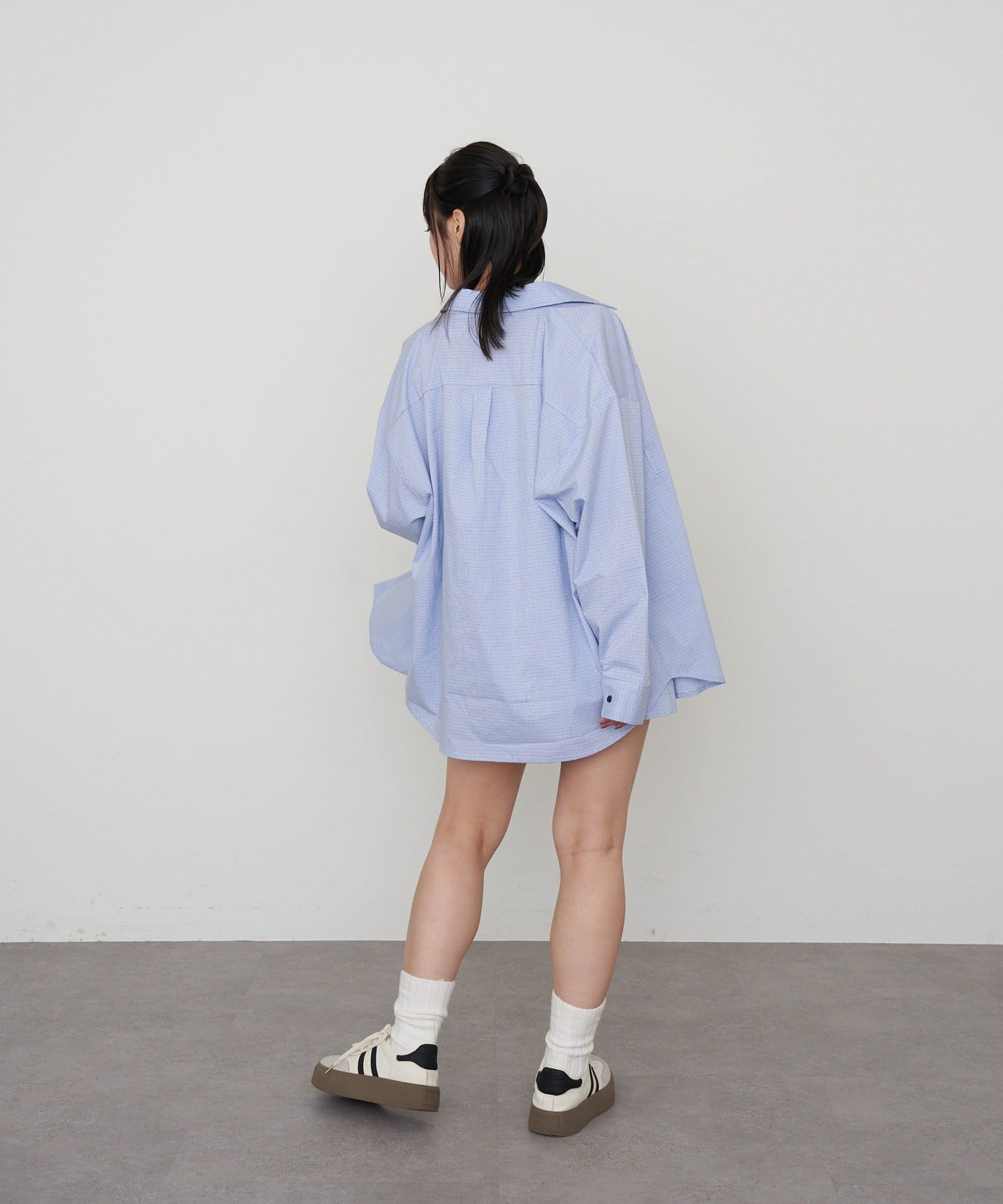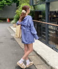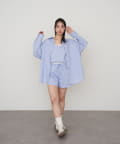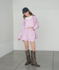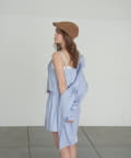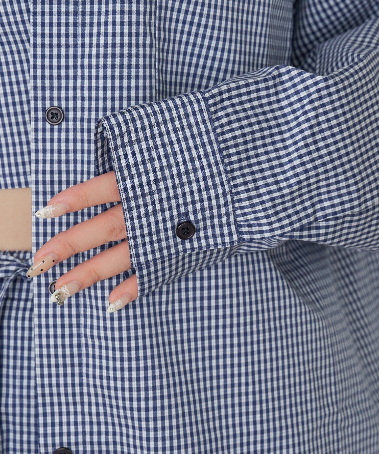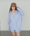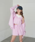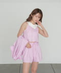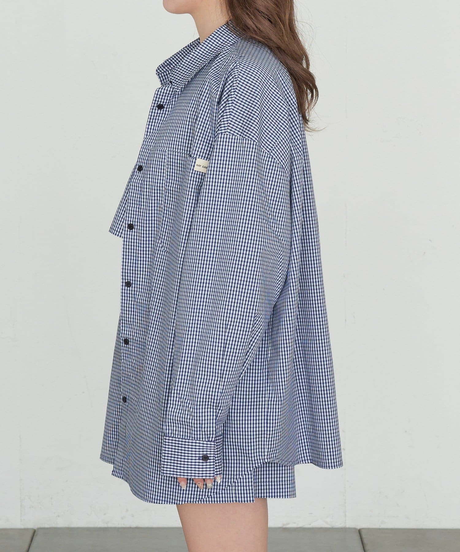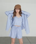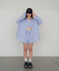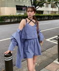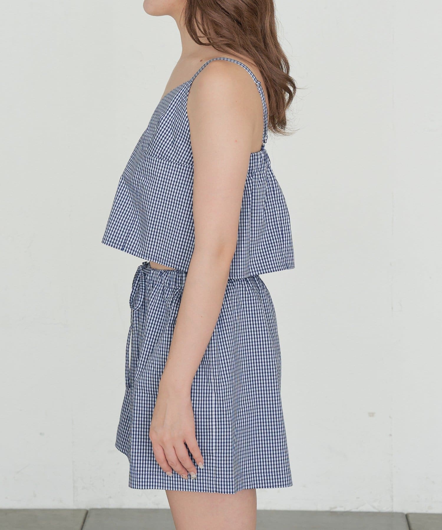 【セットアップ/3点セット】ルーズチェックシャツフリルキャミSET