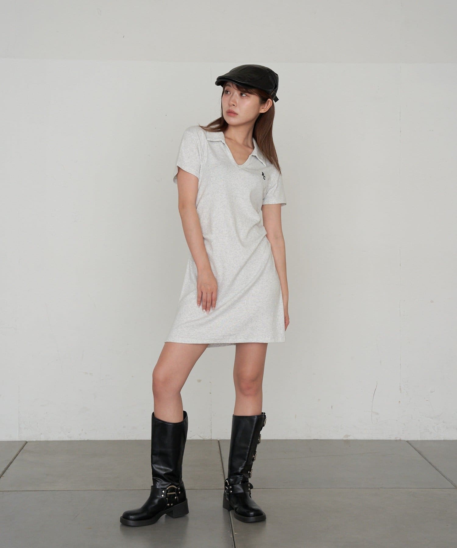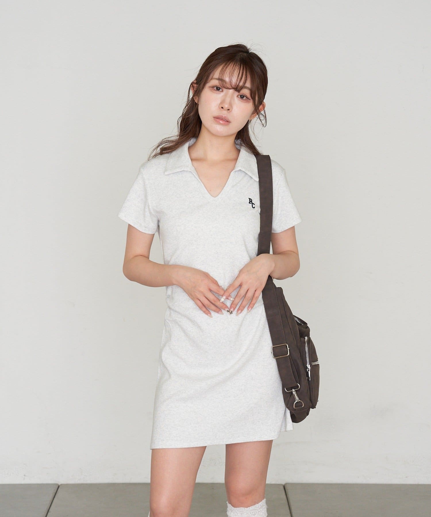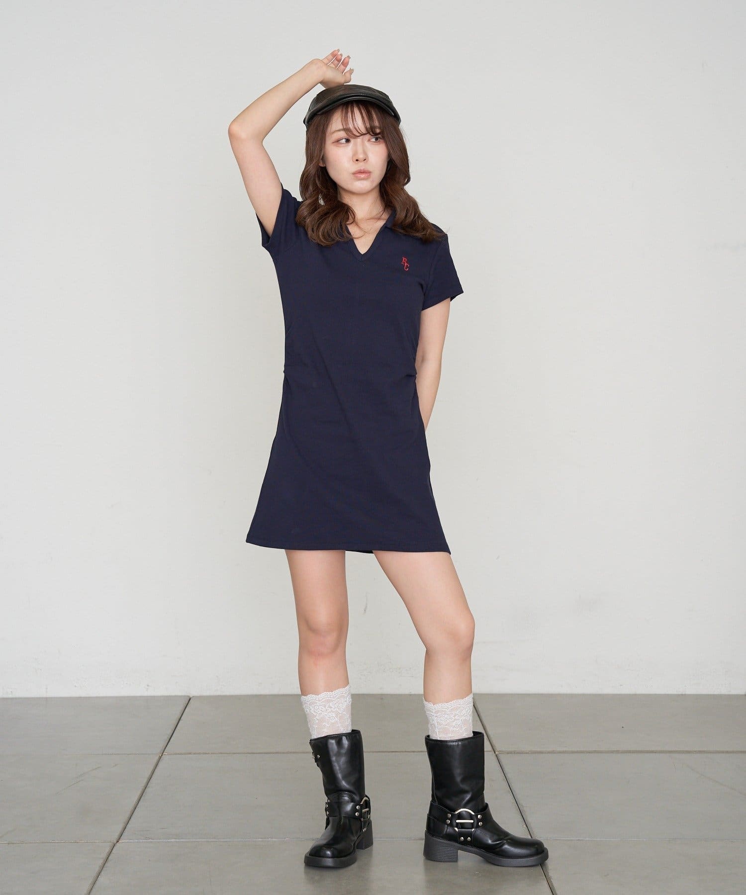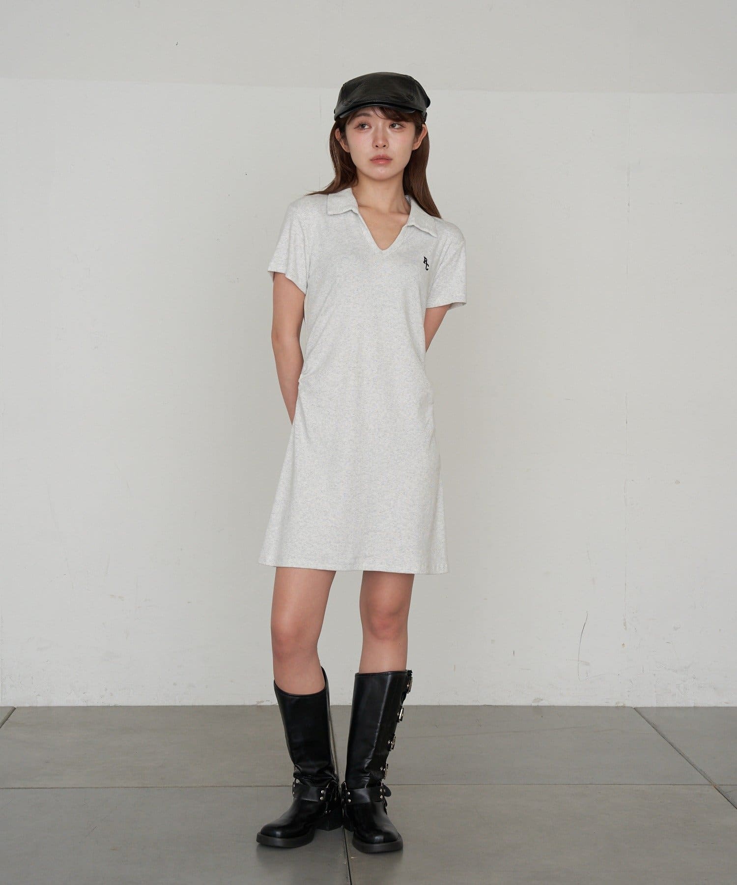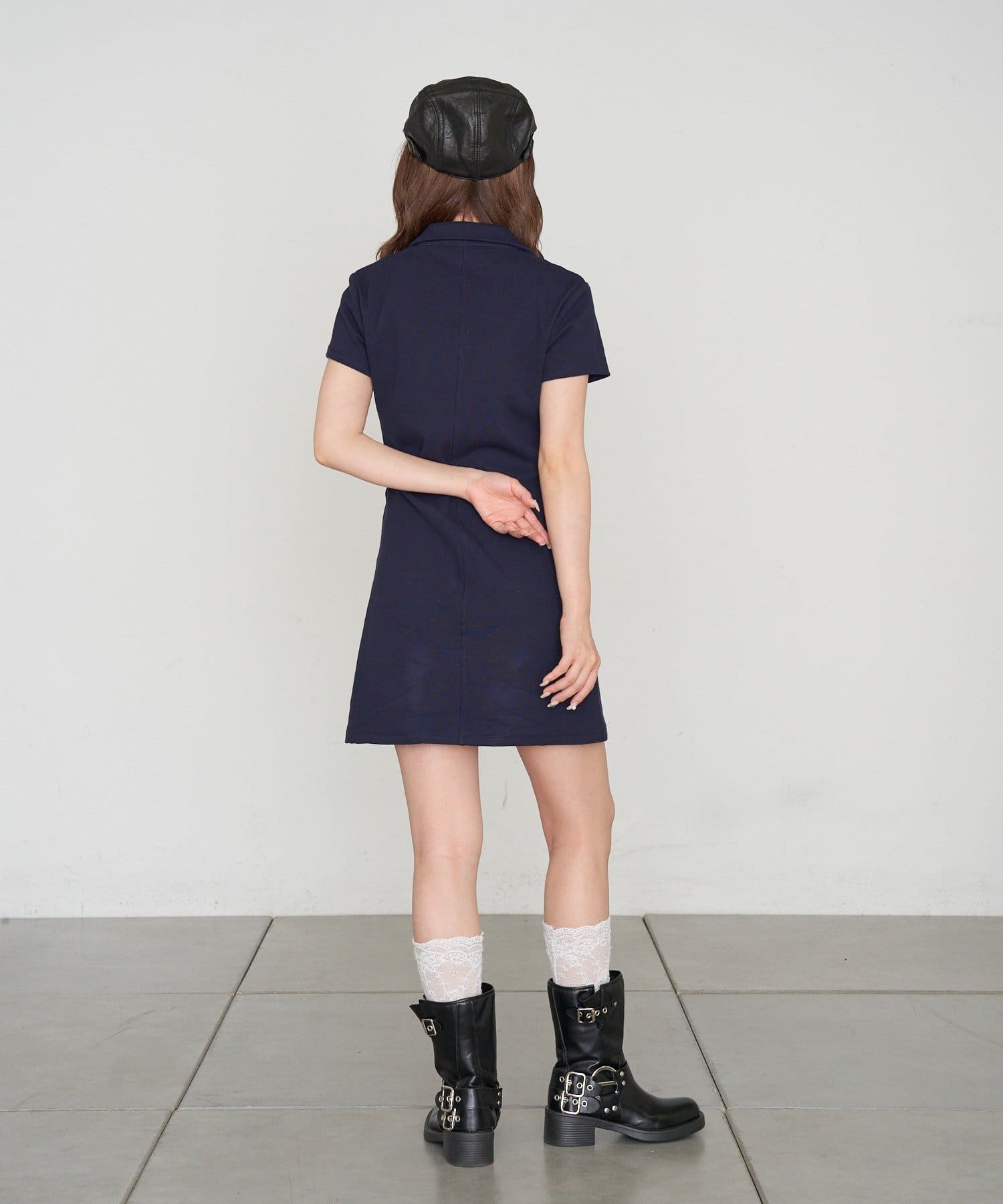 RAY CASSIN(レイカズン) スキッパーポロ刺繍ミニワンピース