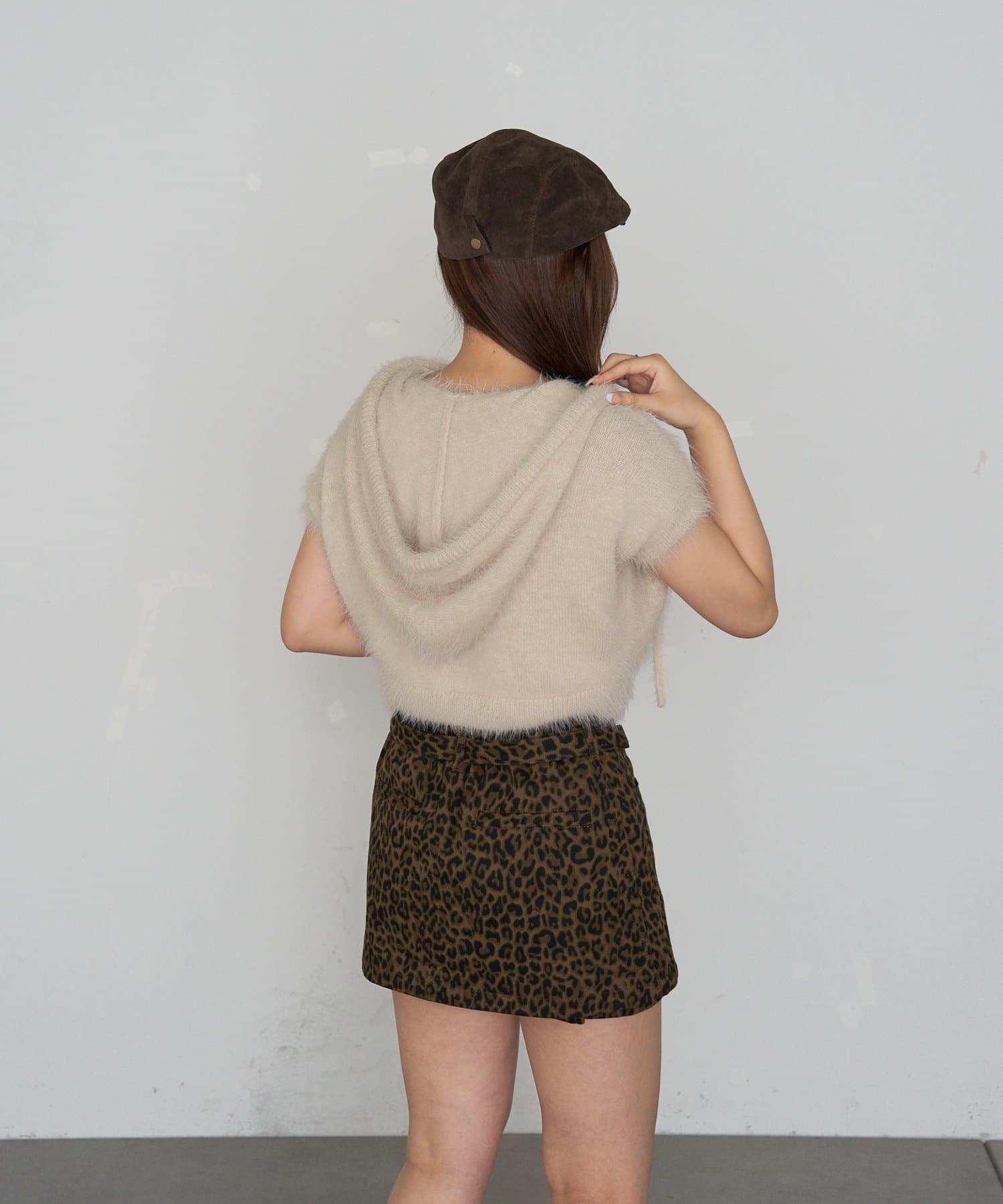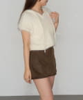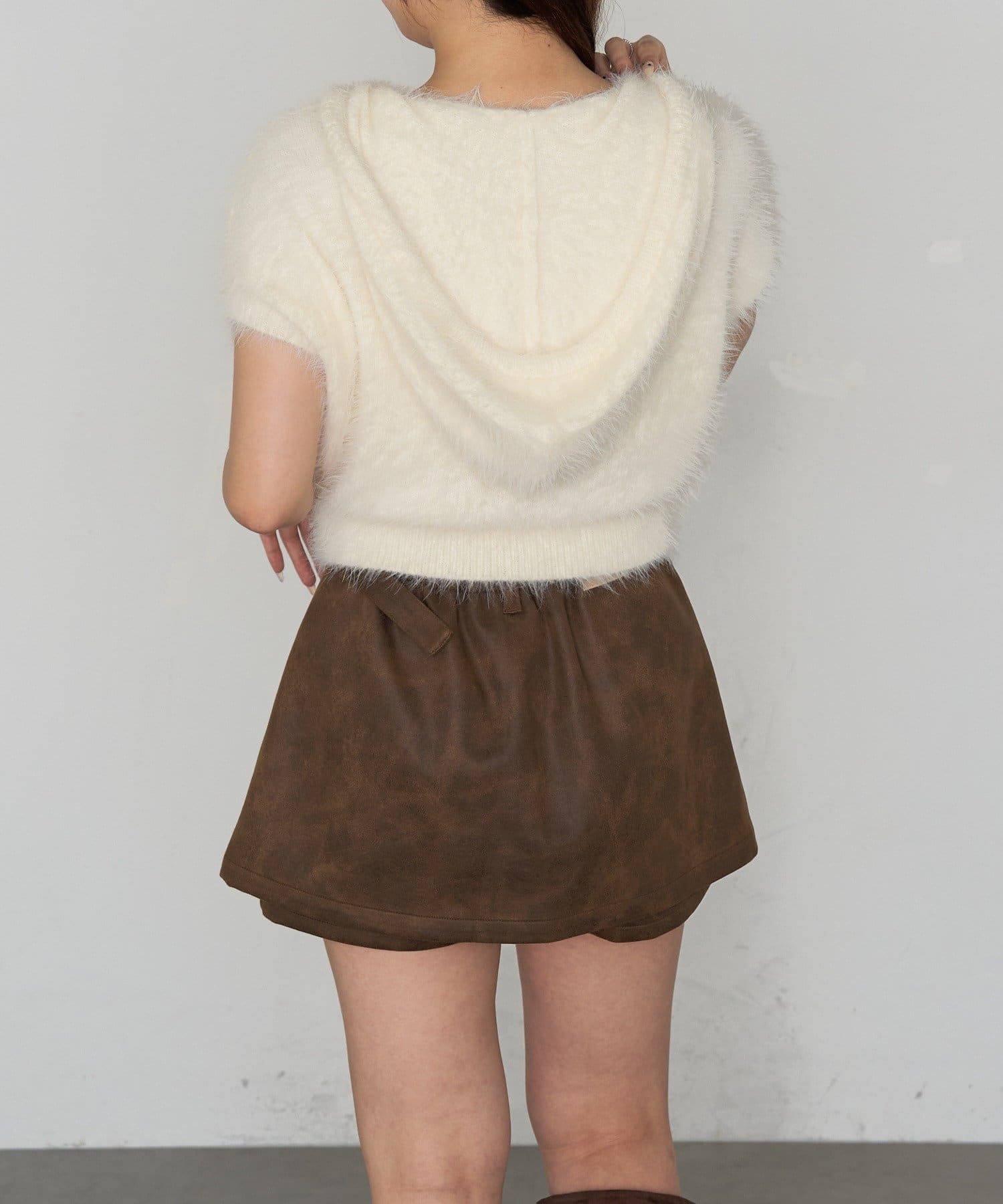 シャギーフード半袖ニットプルオーバー