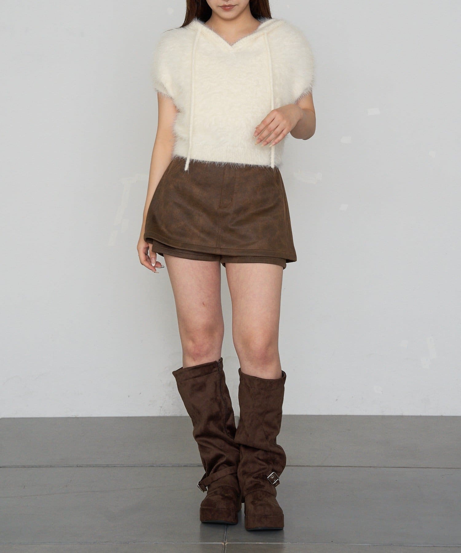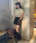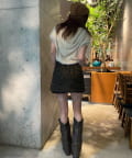 ・ミニボトムス合わせでスタイルアップ。