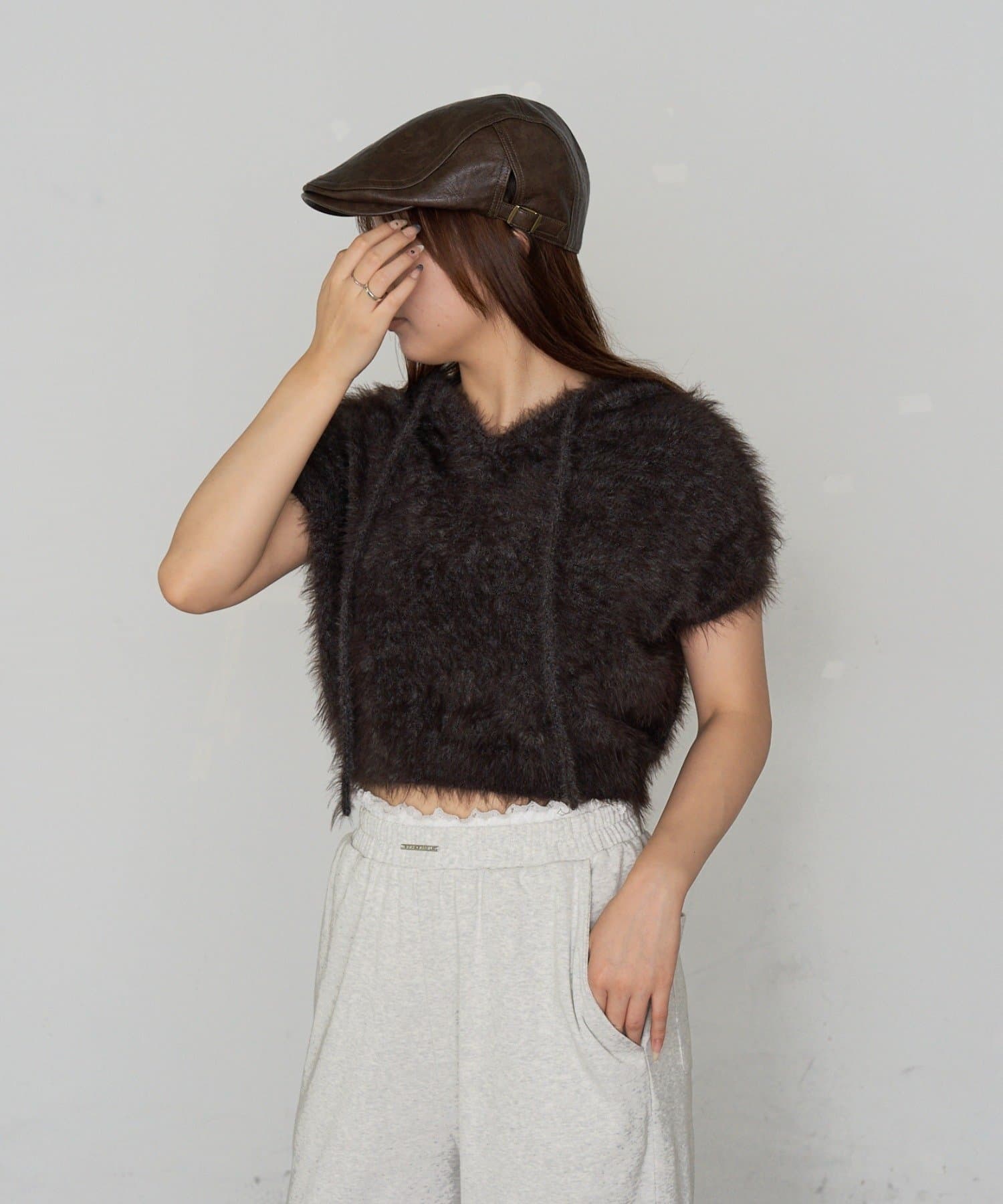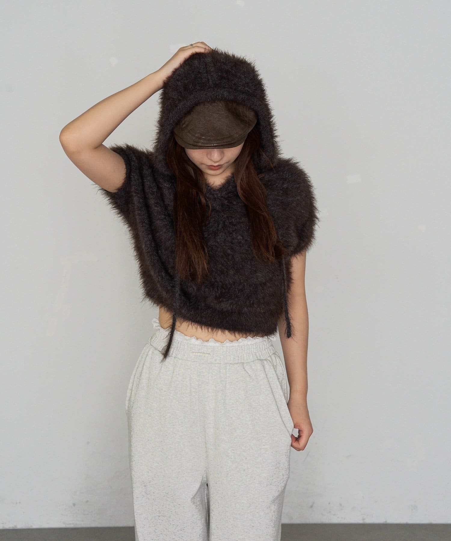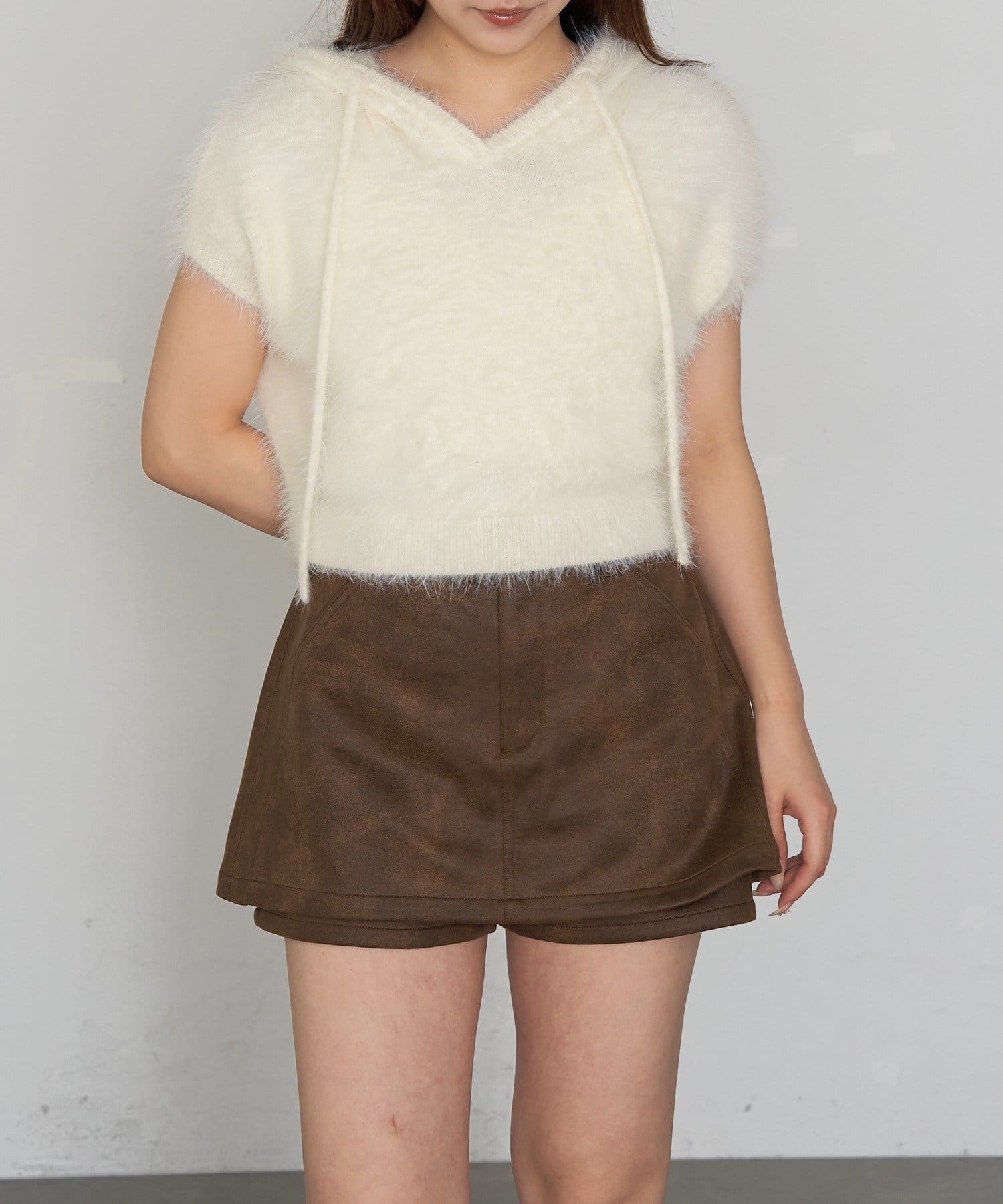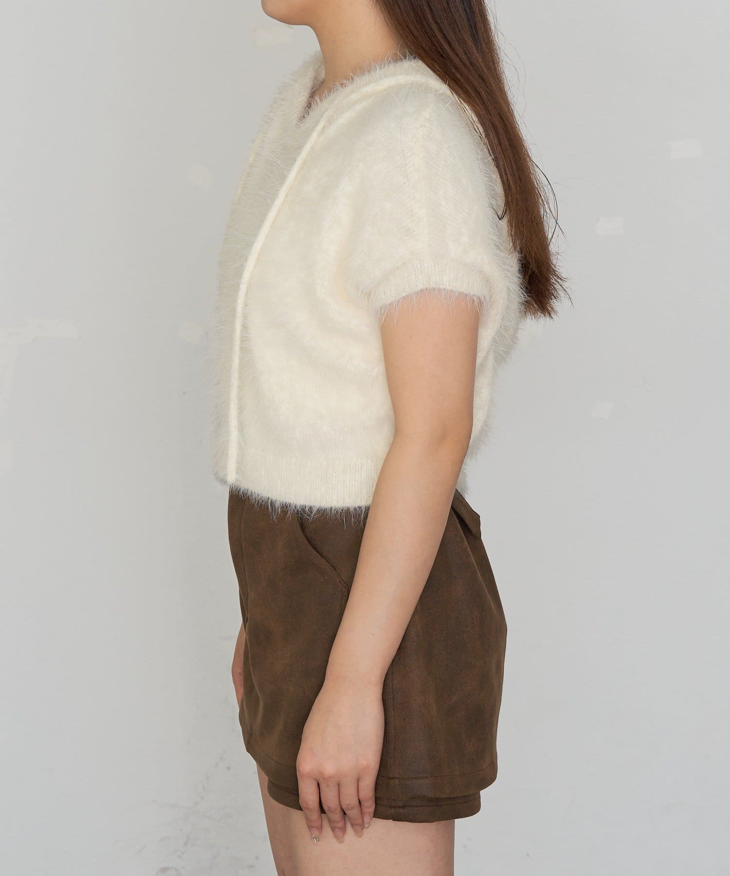 TOP > RAY CASSIN > レディース > トップス > ニット/セーター > シャギーフード半袖ニットプルオーバー