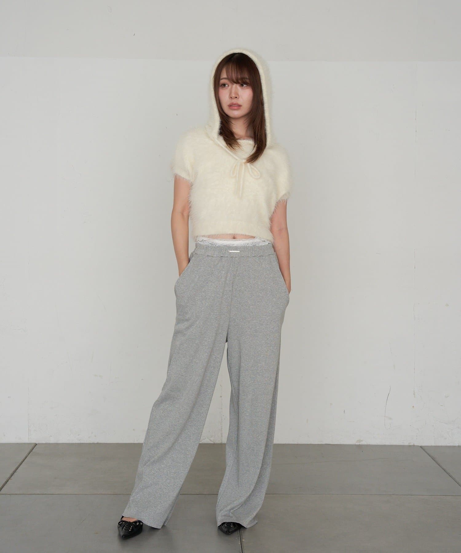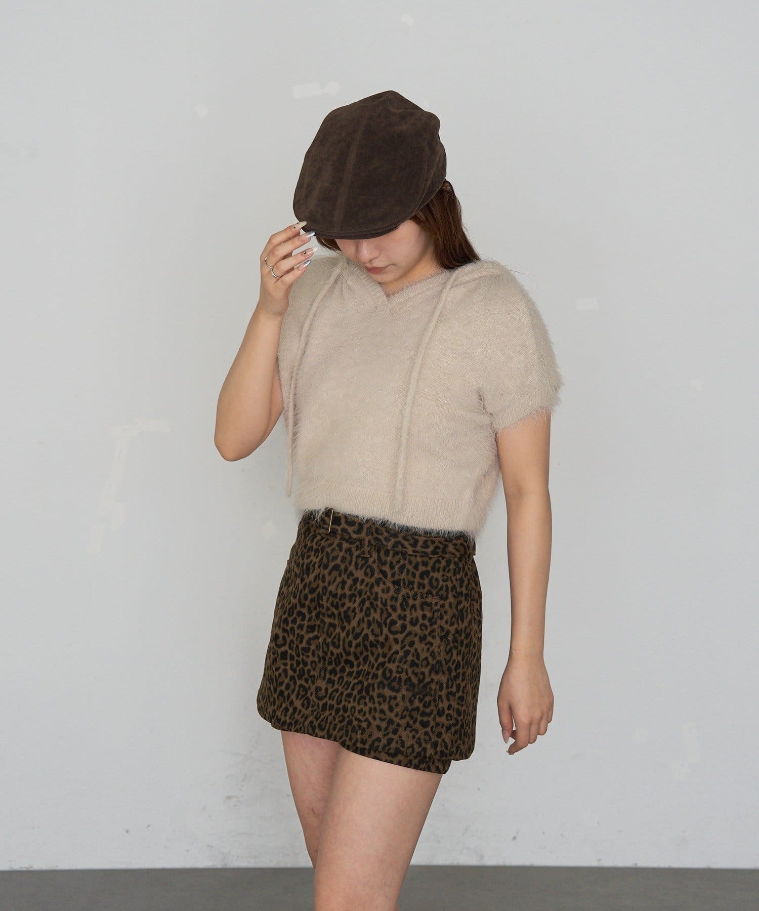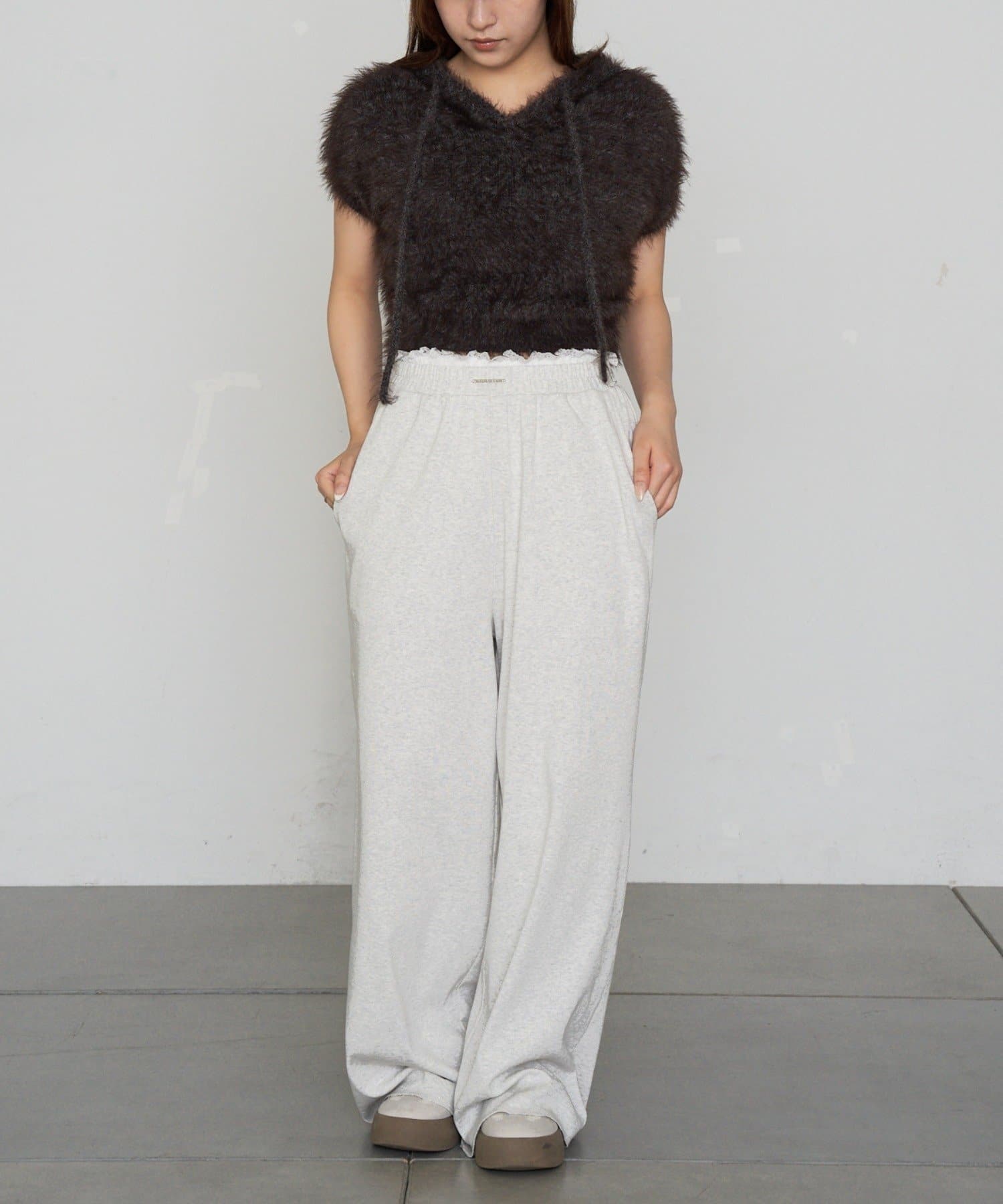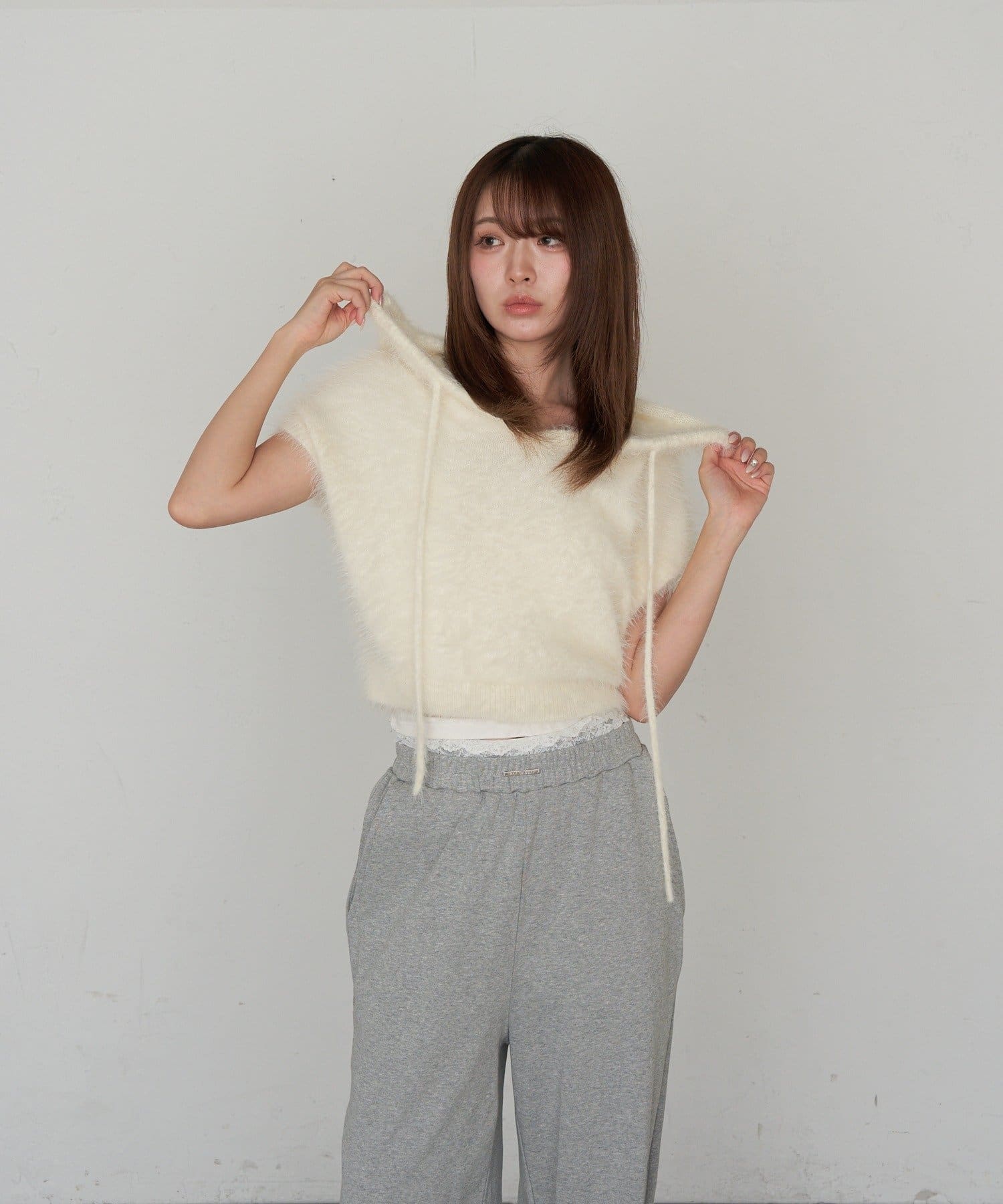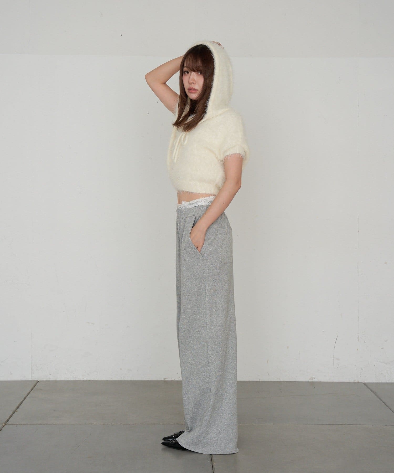 TOP > RAY CASSIN > レディース > トップス > ニット/セーター > シャギーフード半袖ニットプルオーバー