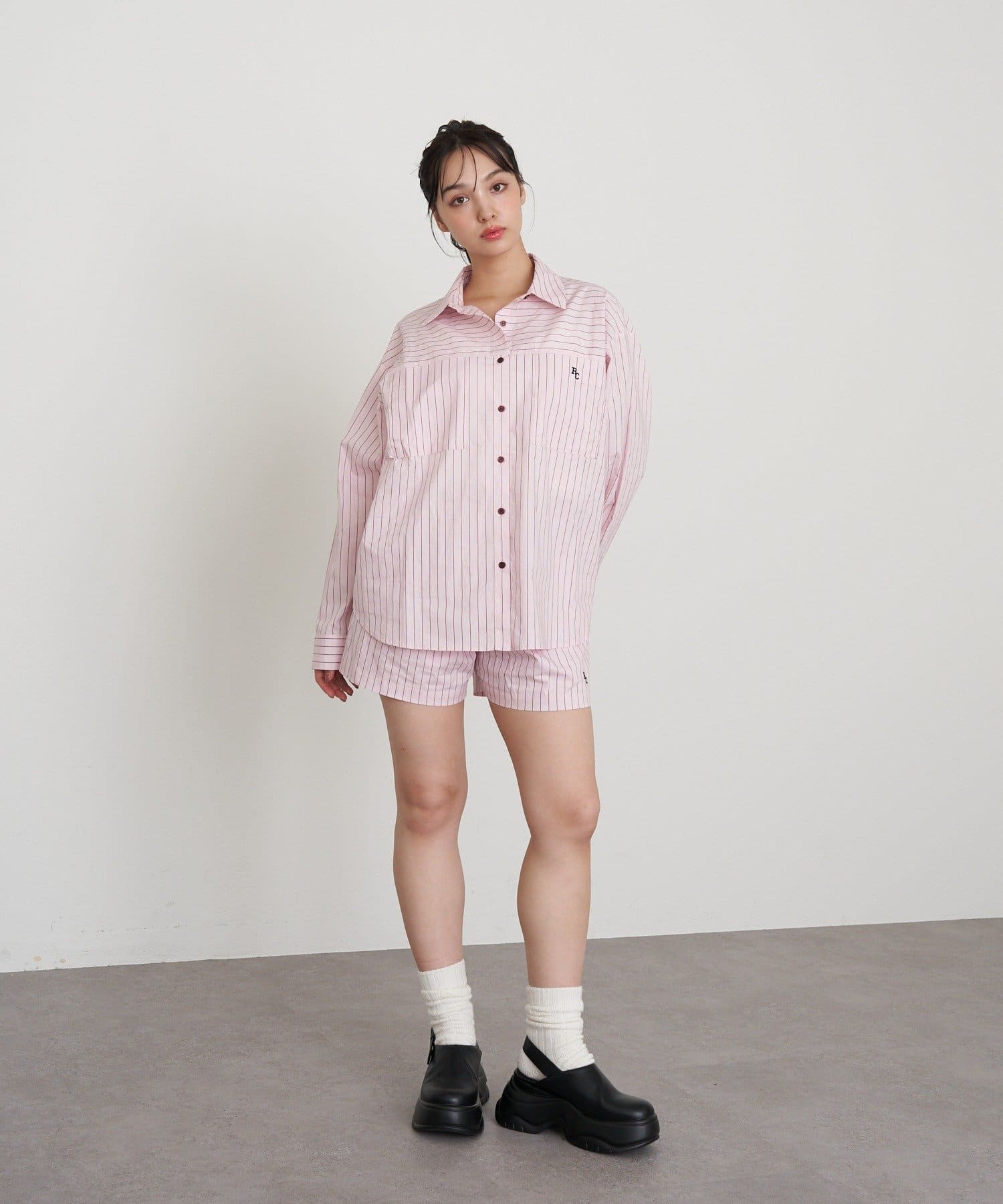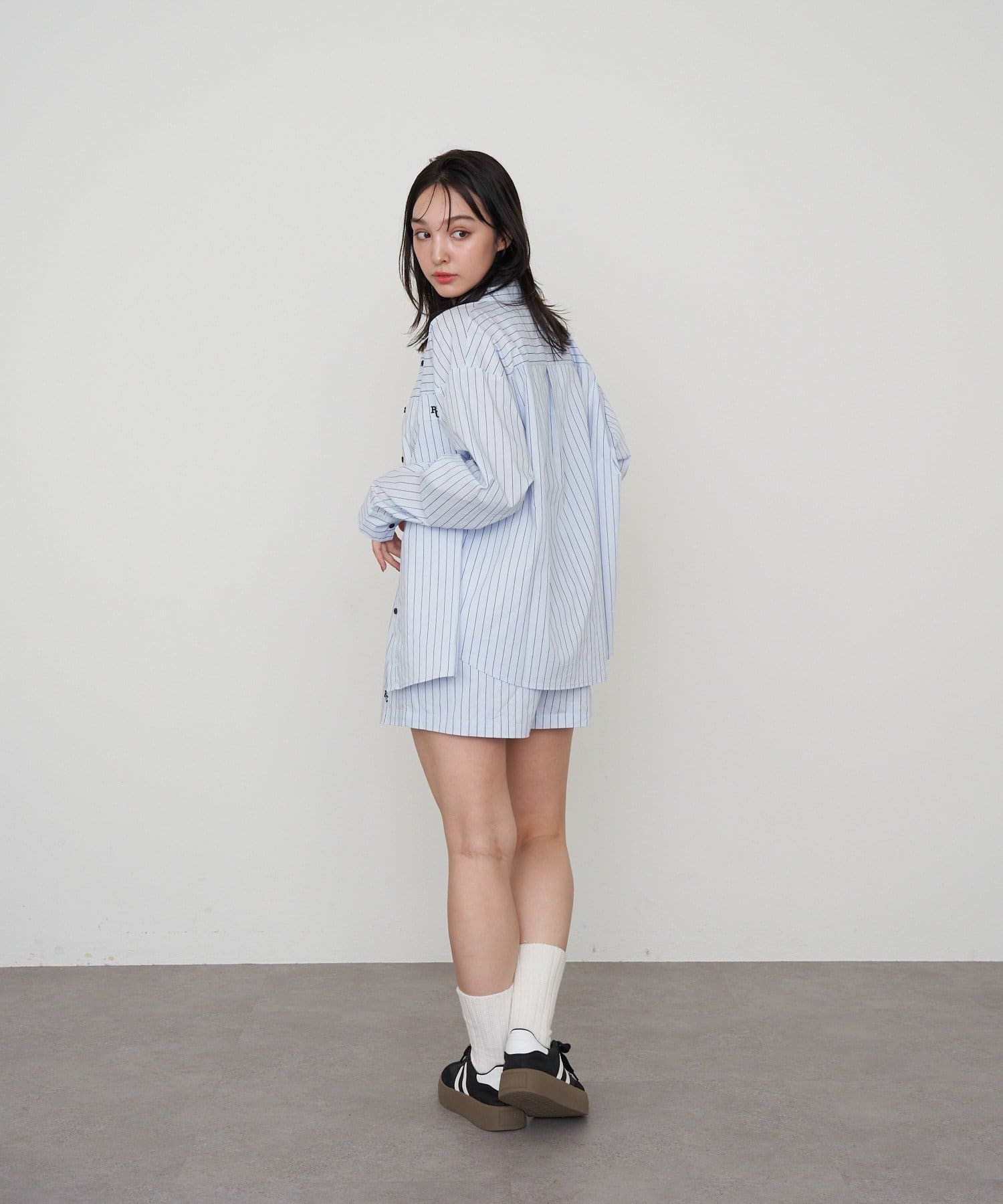 ・シャツ素材のショートパンツなので楽ちんながらもこなれ感を出しつつ着ていただけます。