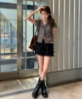 ・フェミニン:ミニ丈×ロングブーツで王道女子スタイリング。