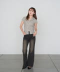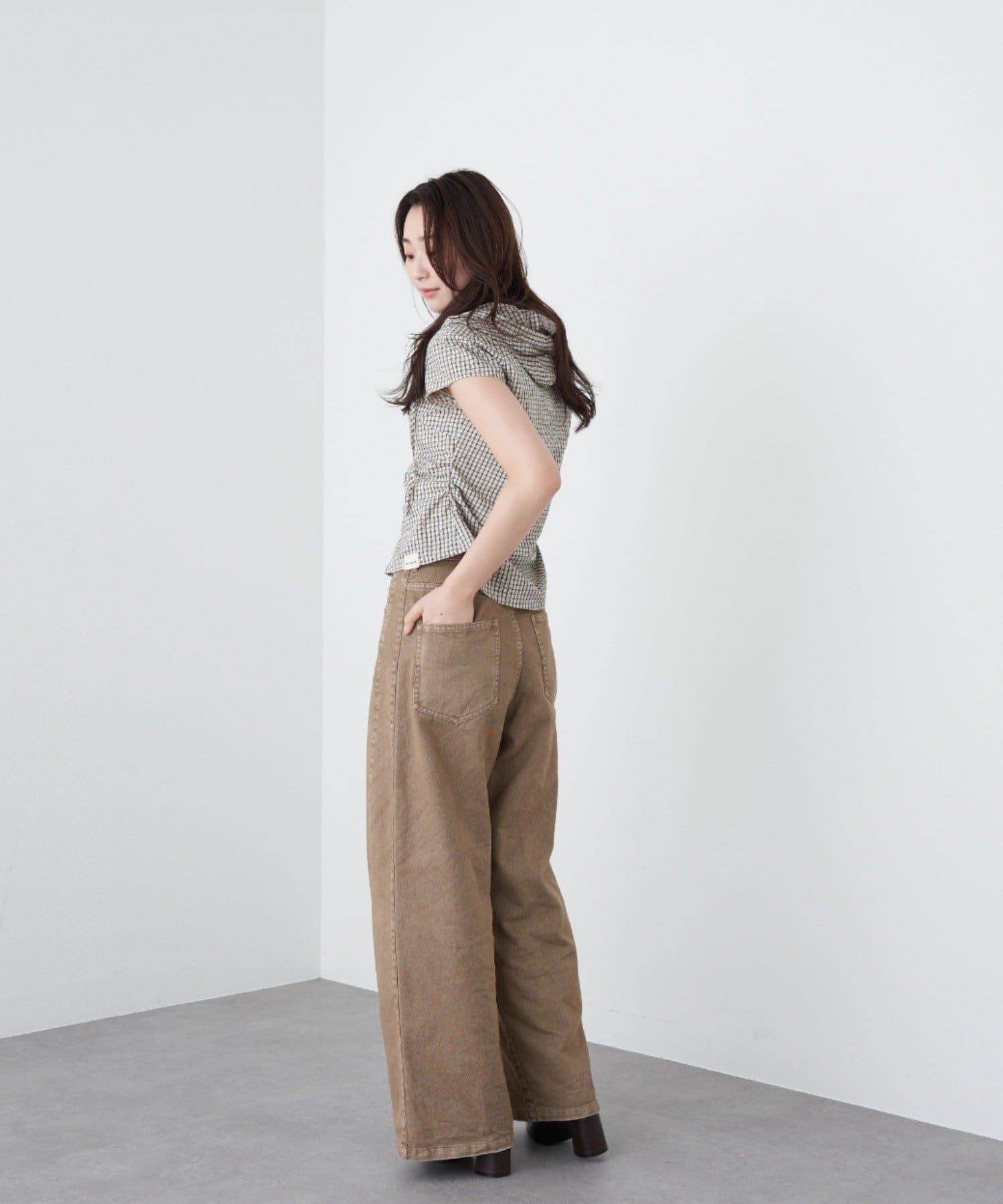 【ウエスト調整可】サイド切替デニムワイドパンツ/【ウエスト調整可】サイド切替ワイドデニムパンツ