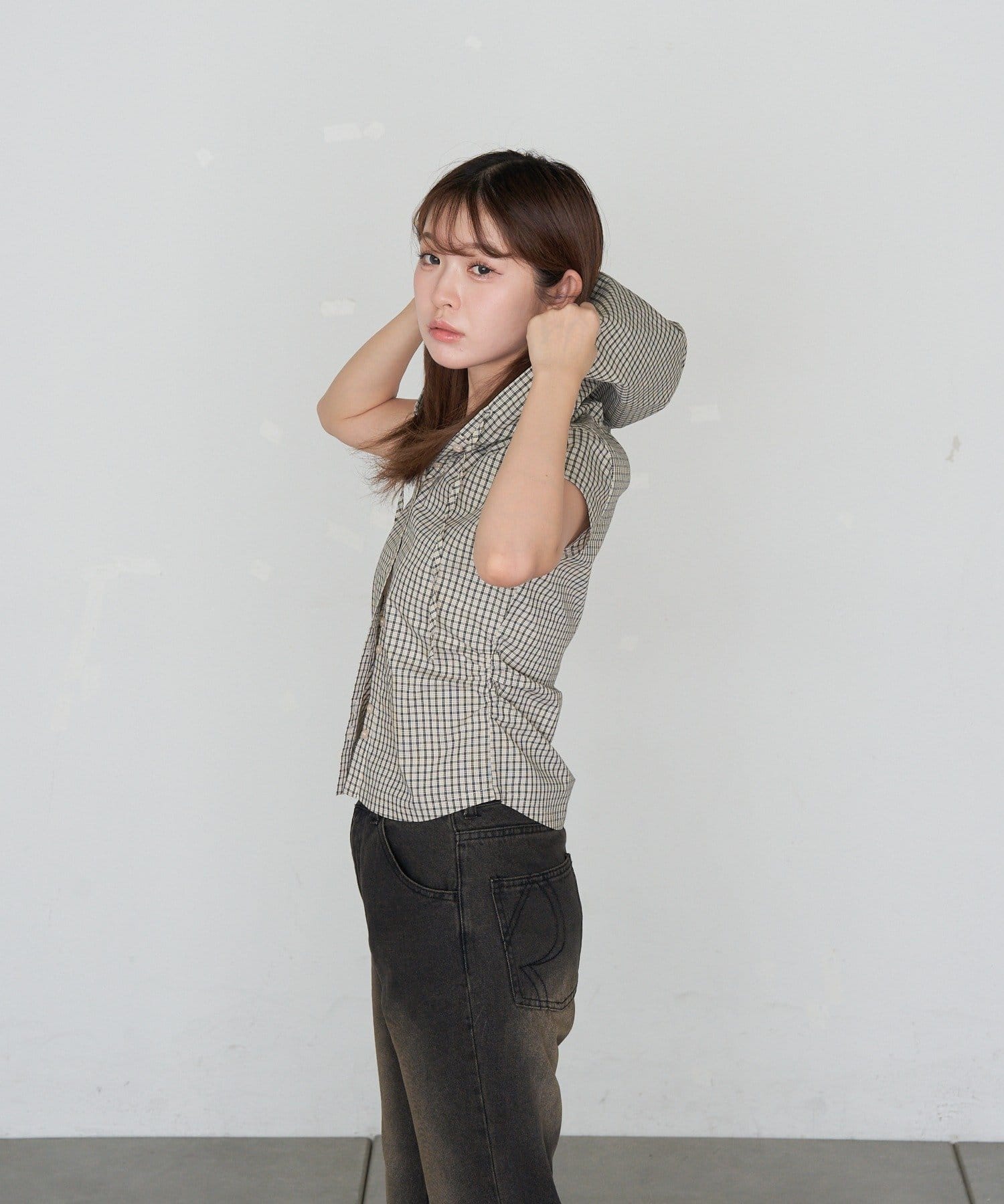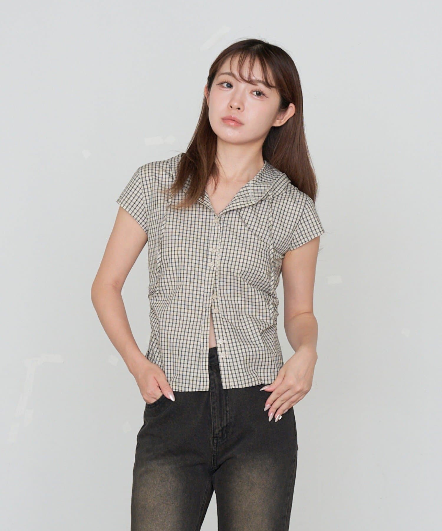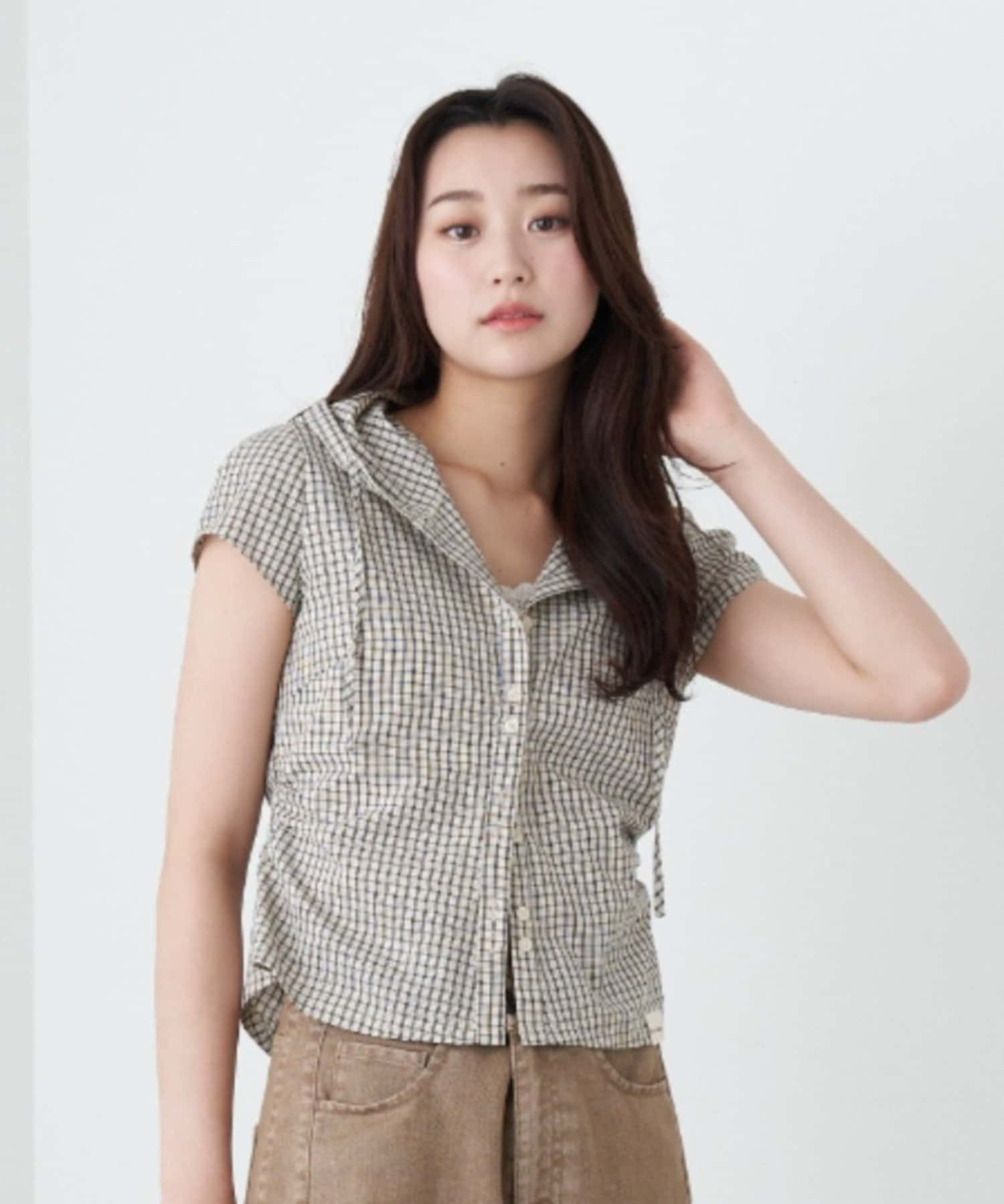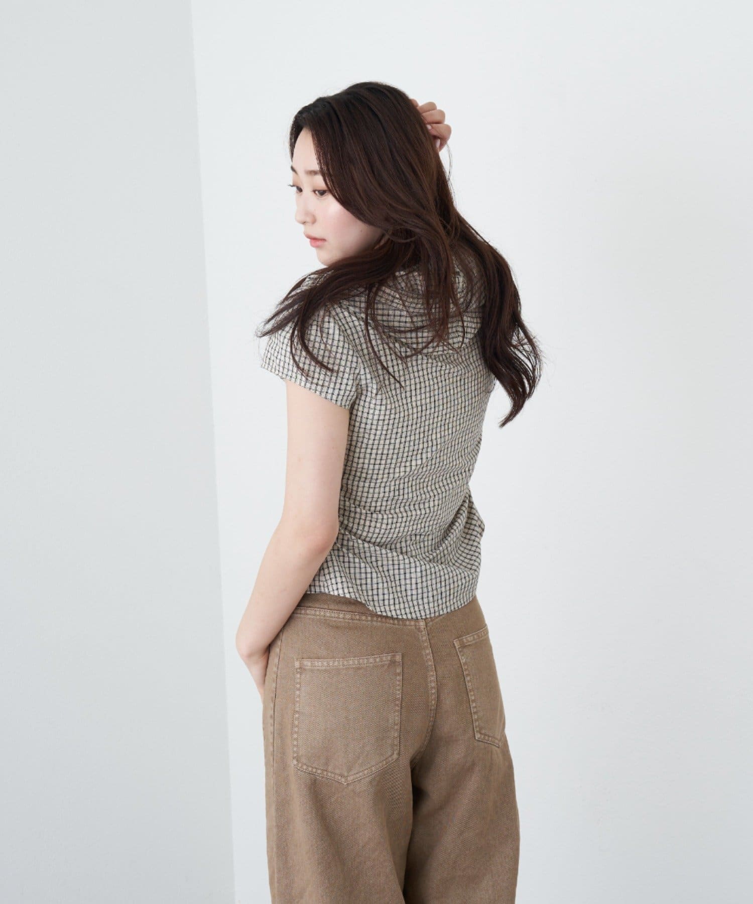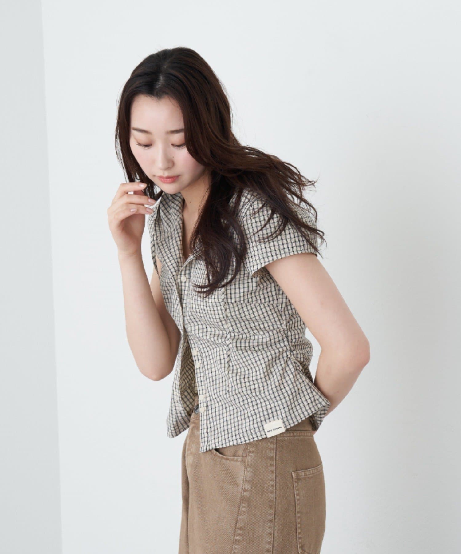 ・コンパクトなシルエットでカジュアルになりがちなチェックシャツも女性らしく着ていただけます