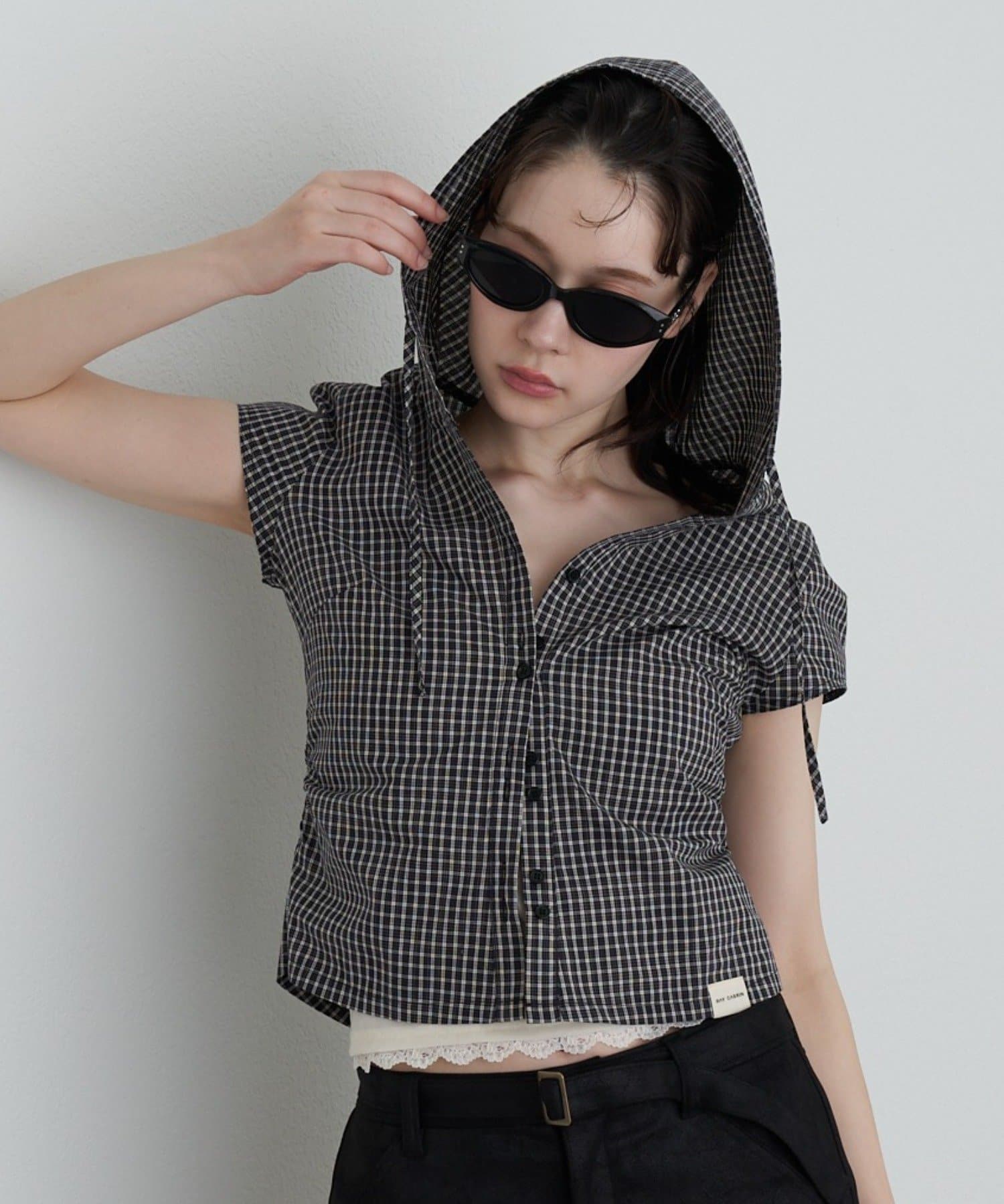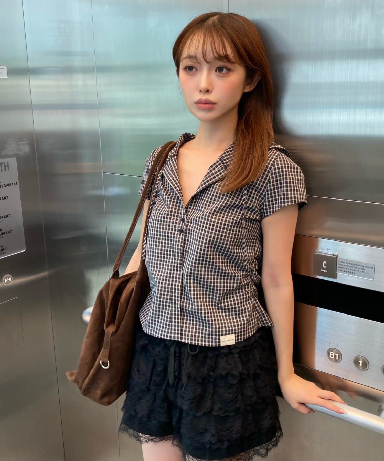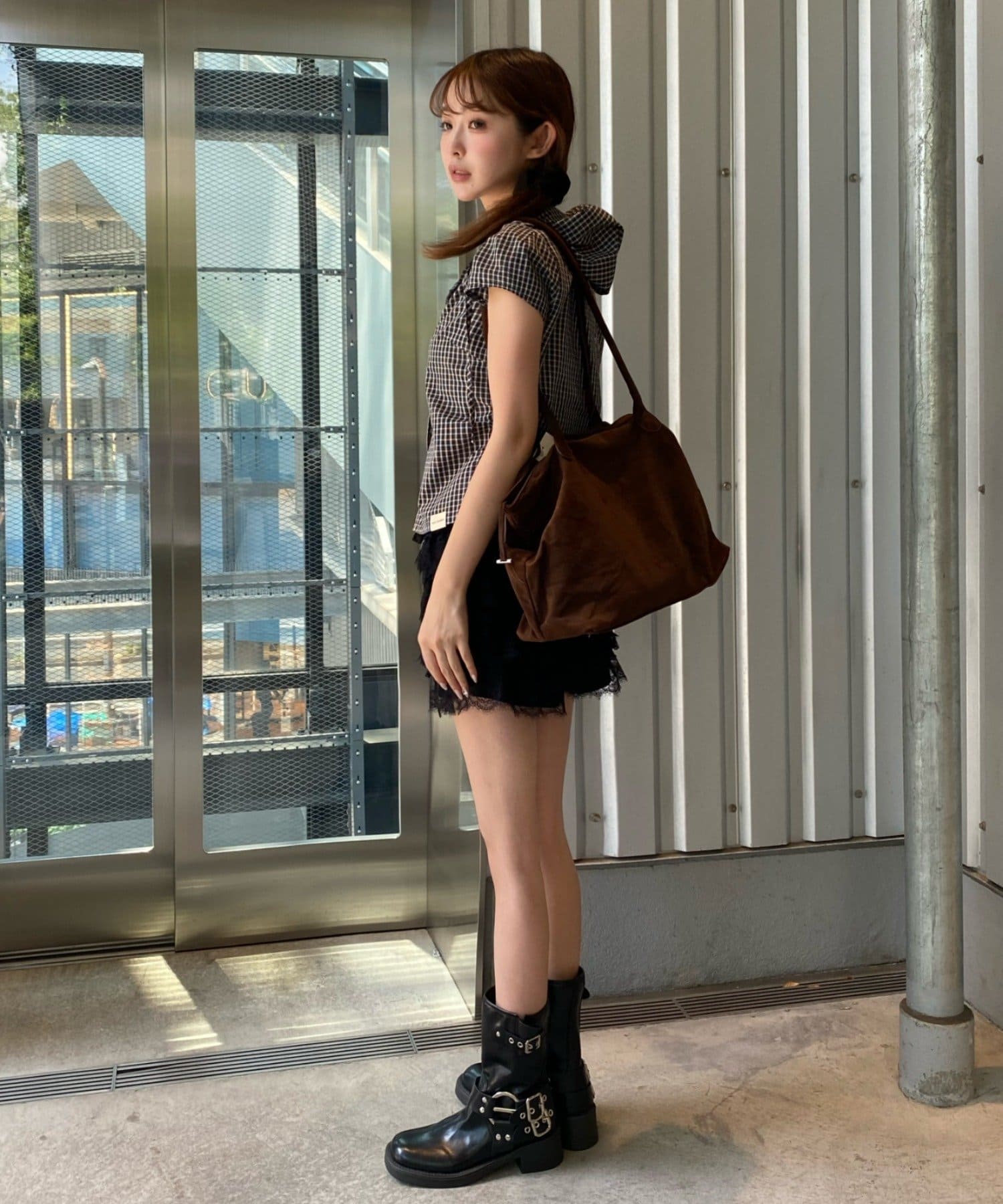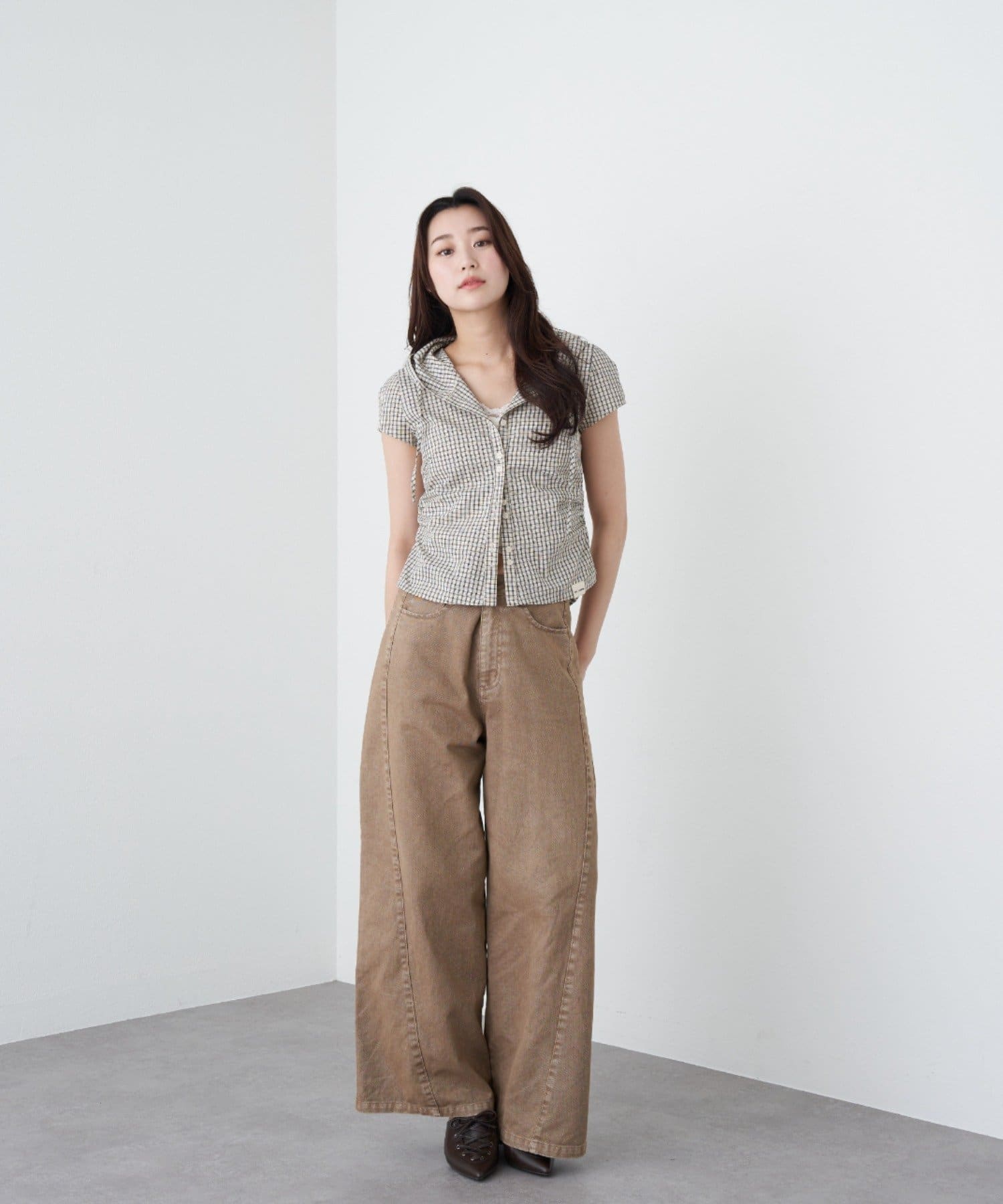 ・コンパクトなシルエットでカジュアルになりがちなチェックシャツも女性らしく着ていただけます