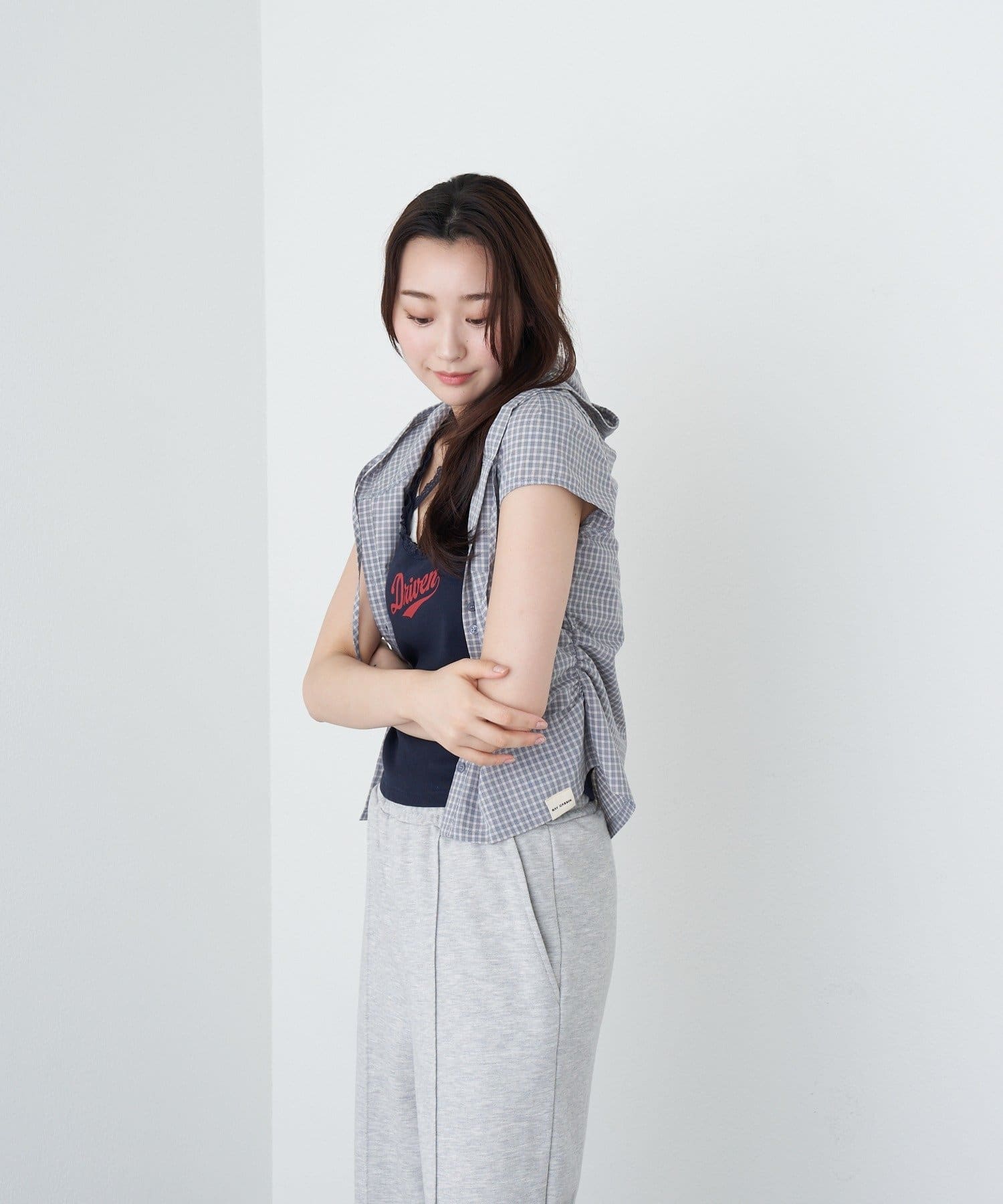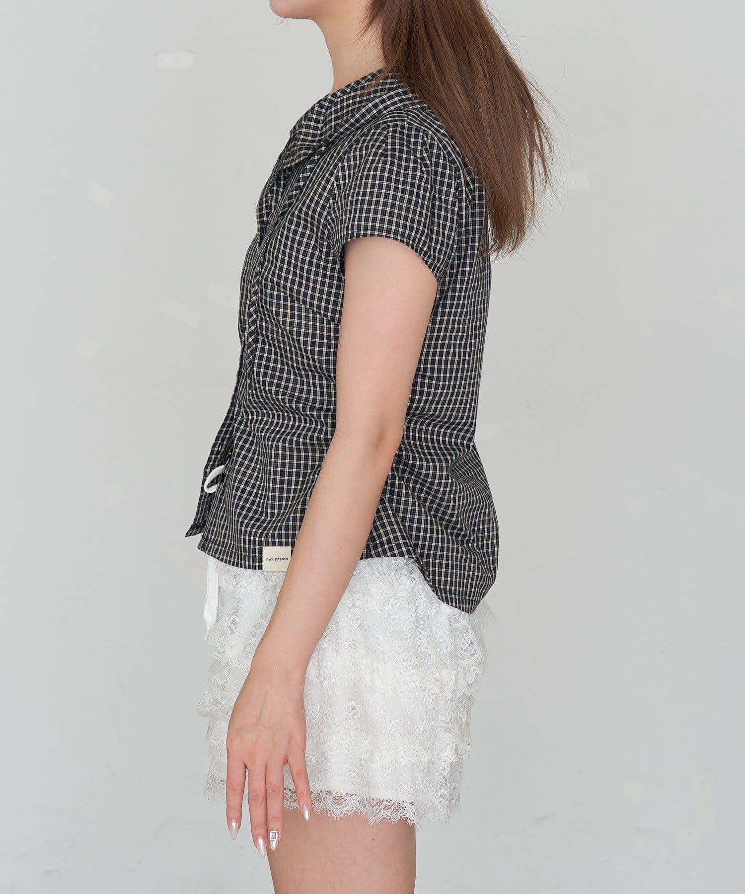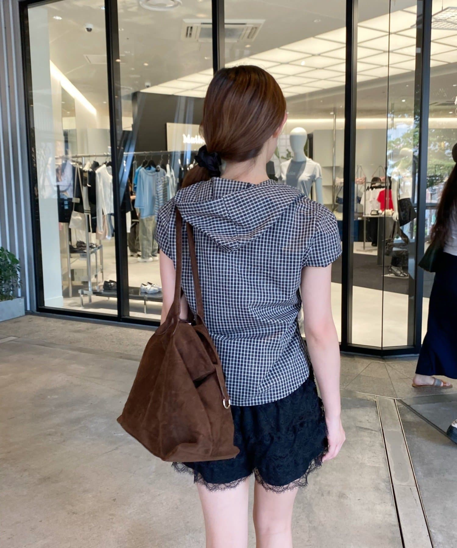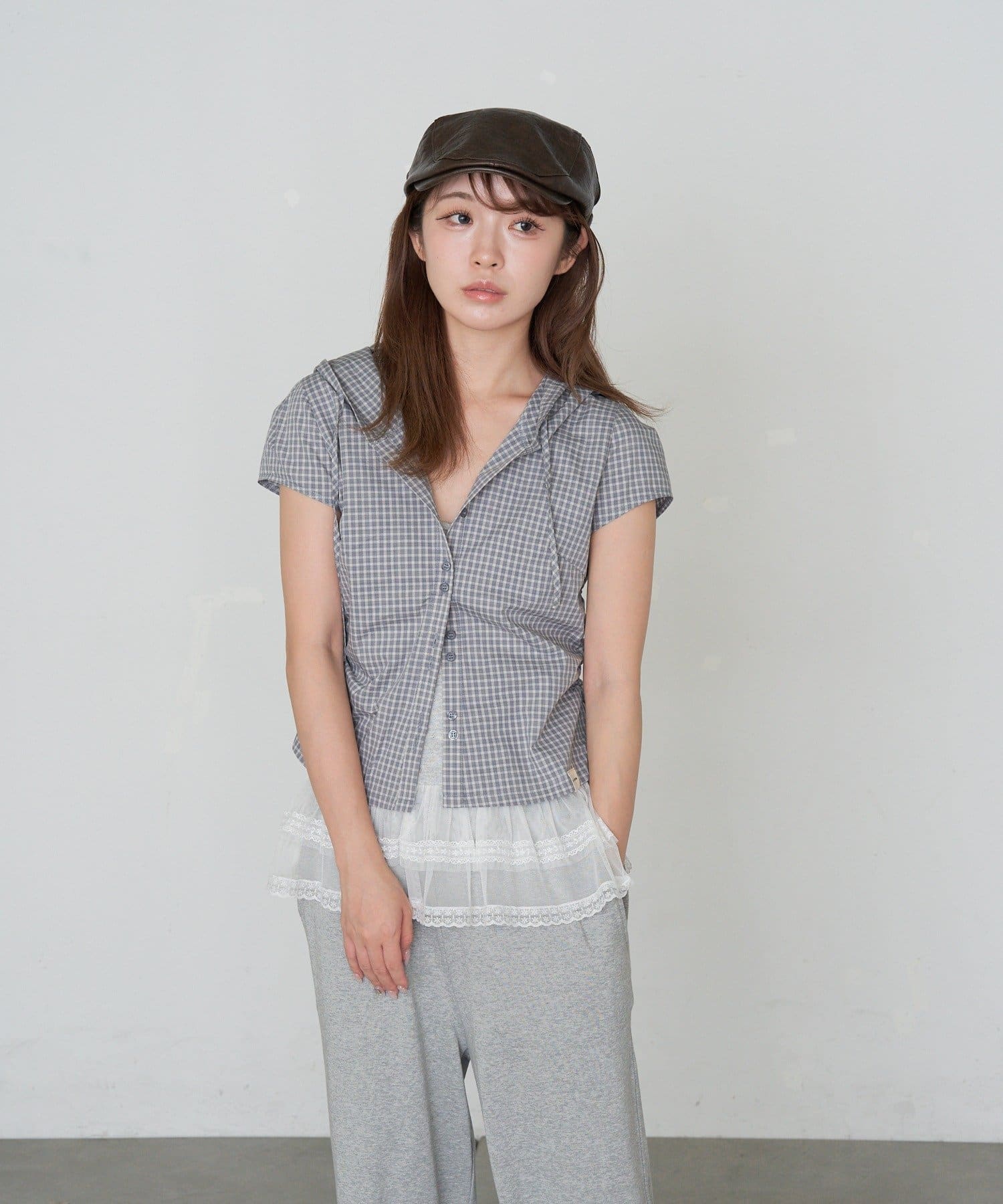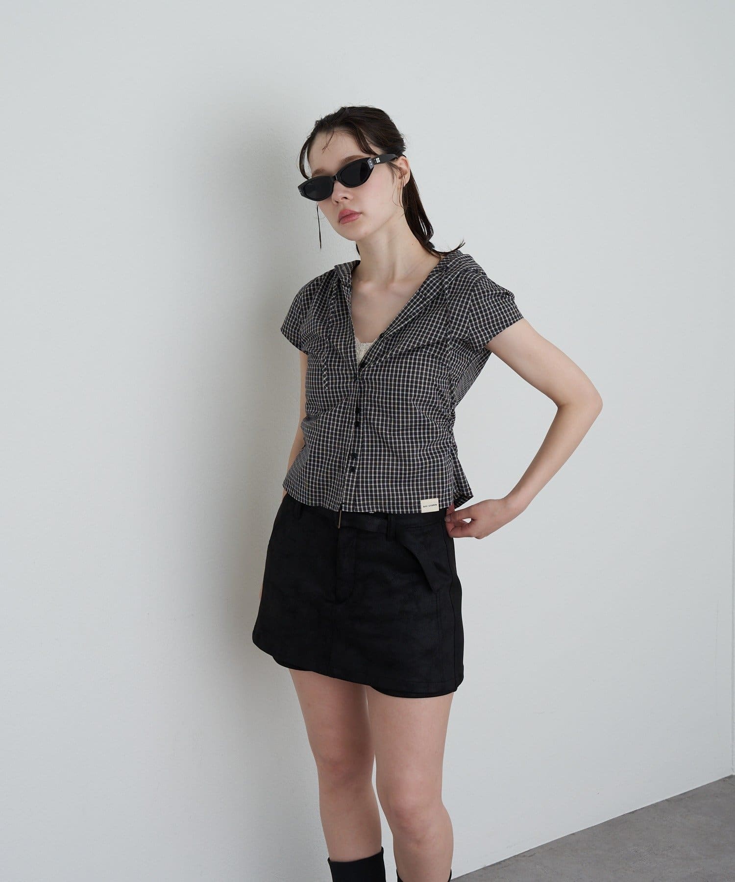 ・コンパクトなシルエットでカジュアルになりがちなチェックシャツも女性らしく着ていただけます