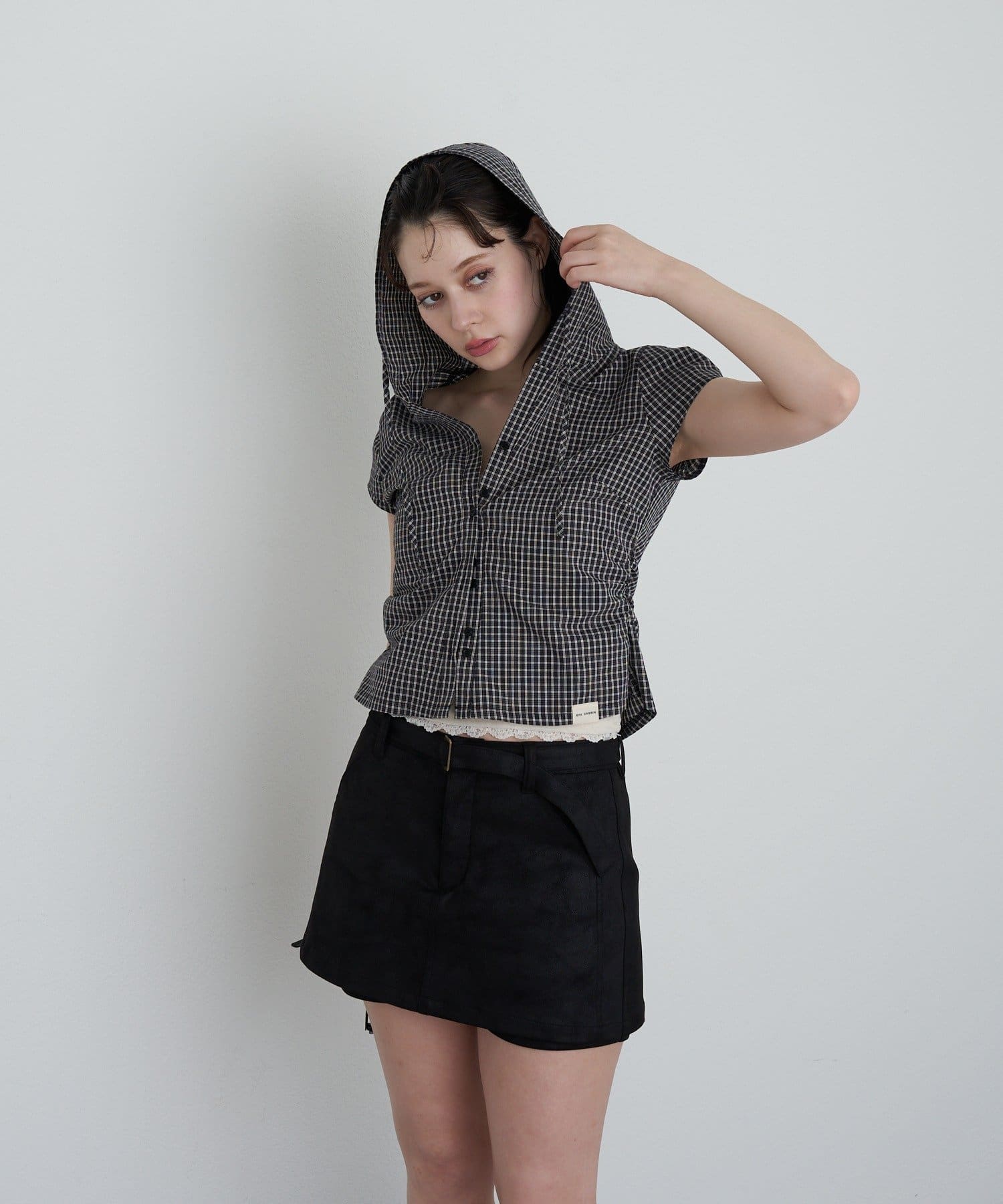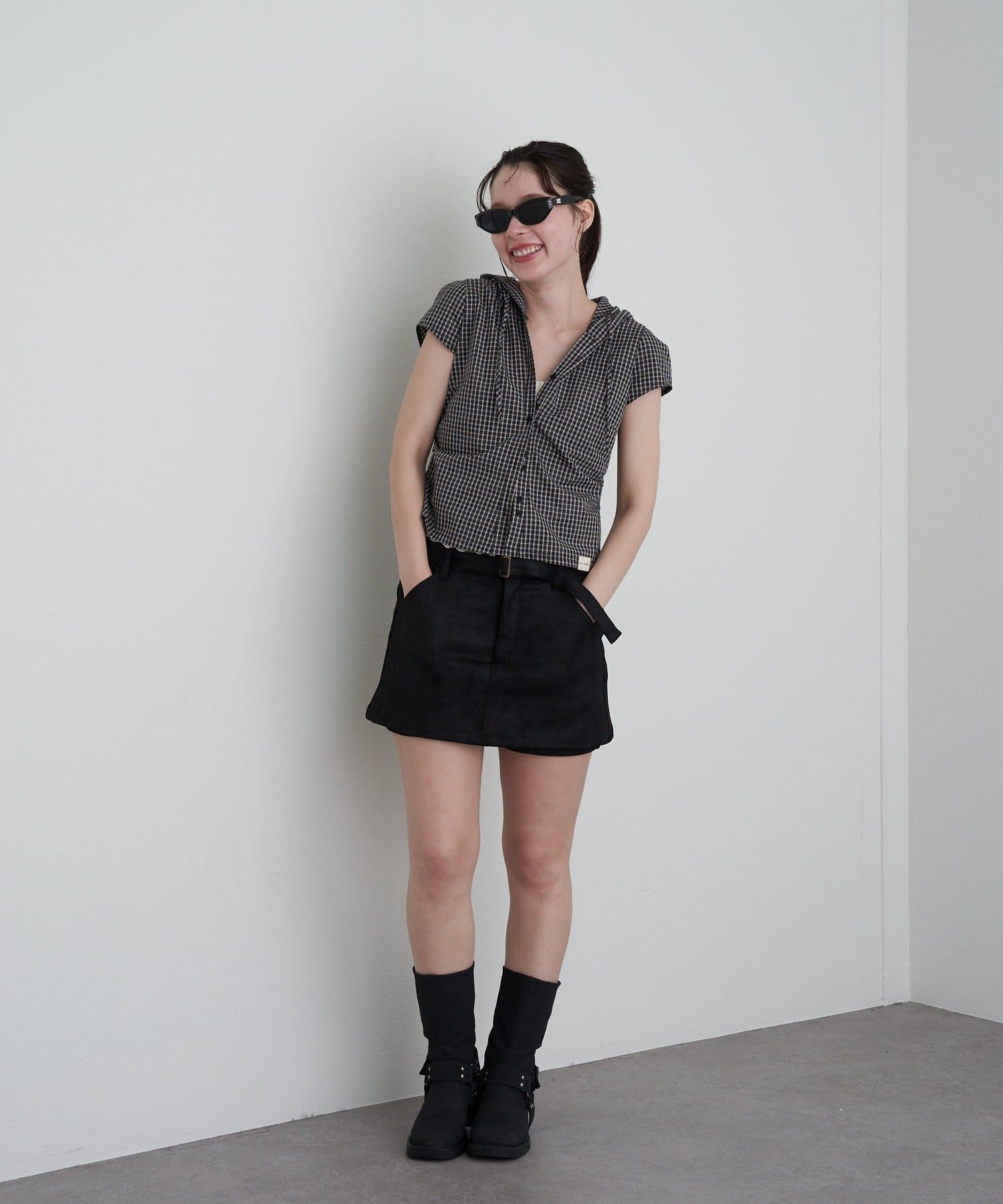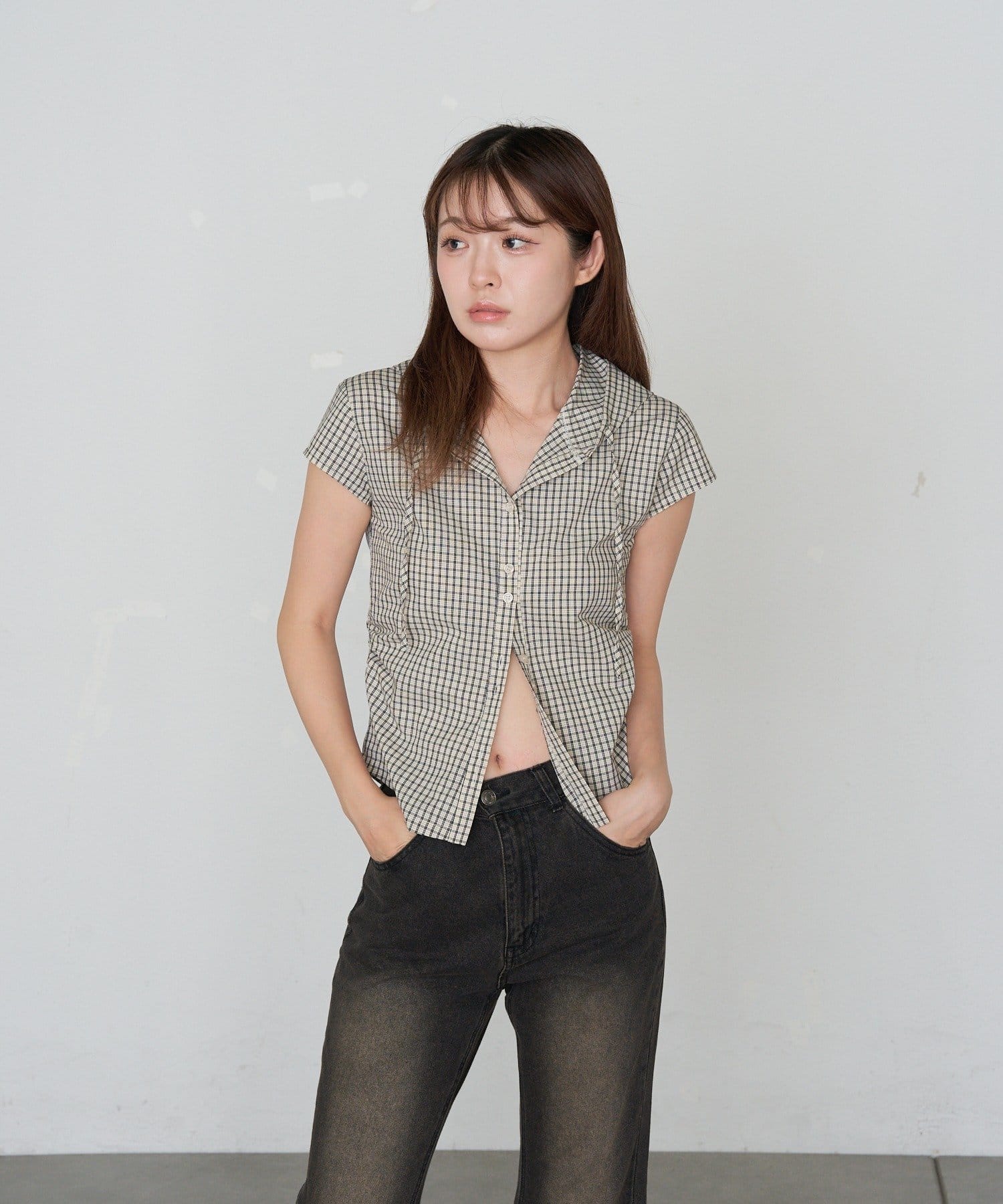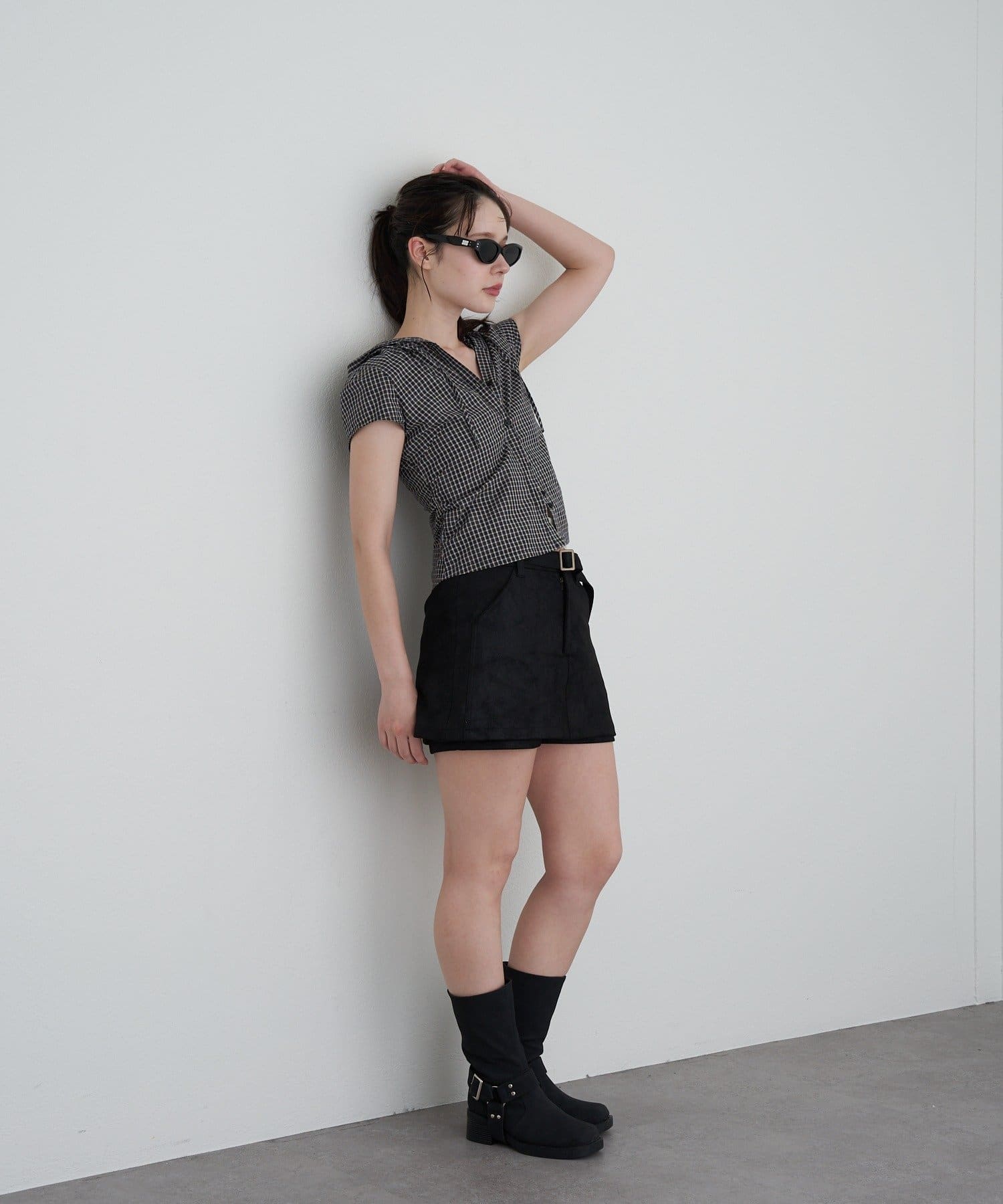 ・コンパクトなシルエットでカジュアルになりがちなチェックシャツも女性らしく着ていただけます