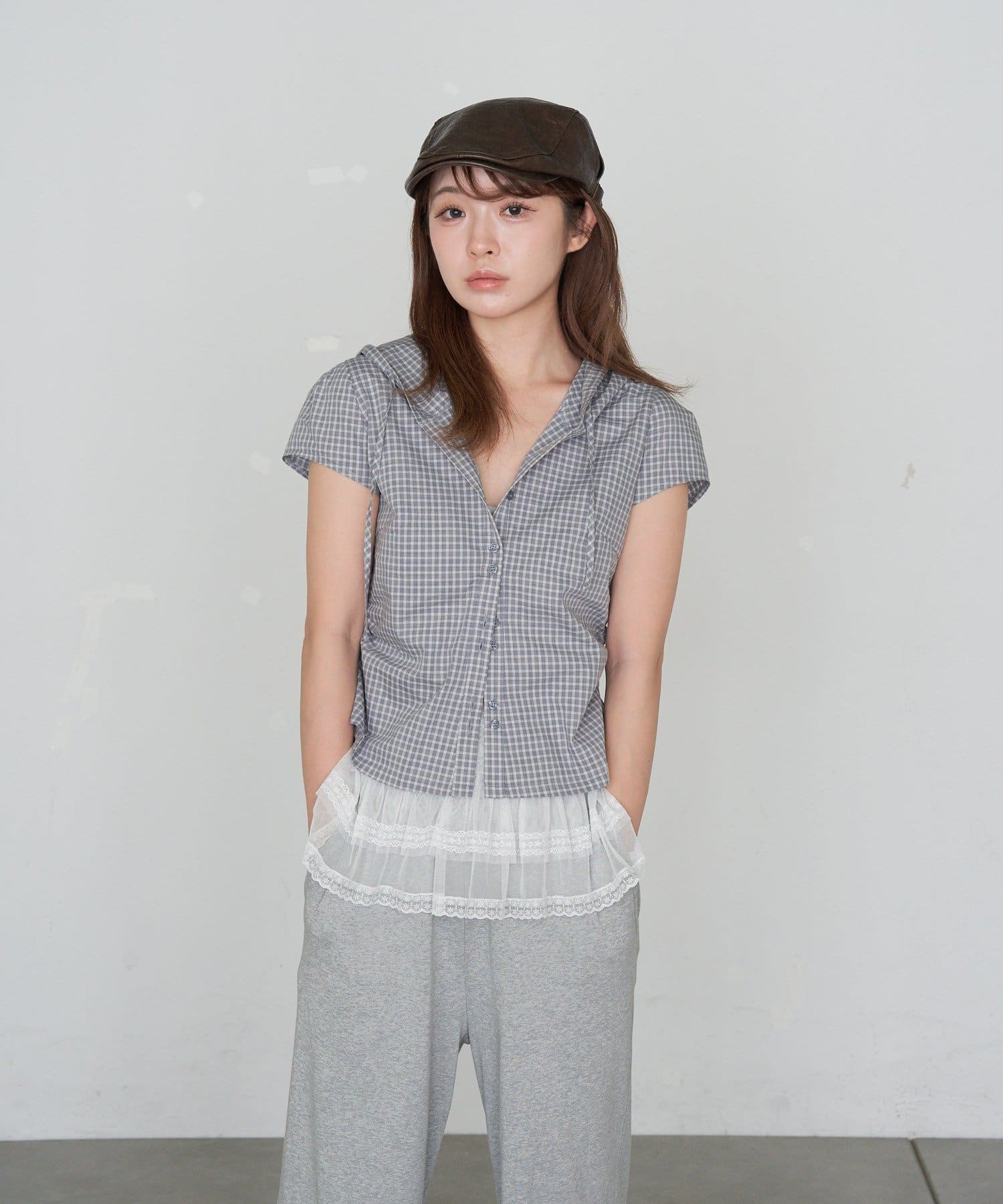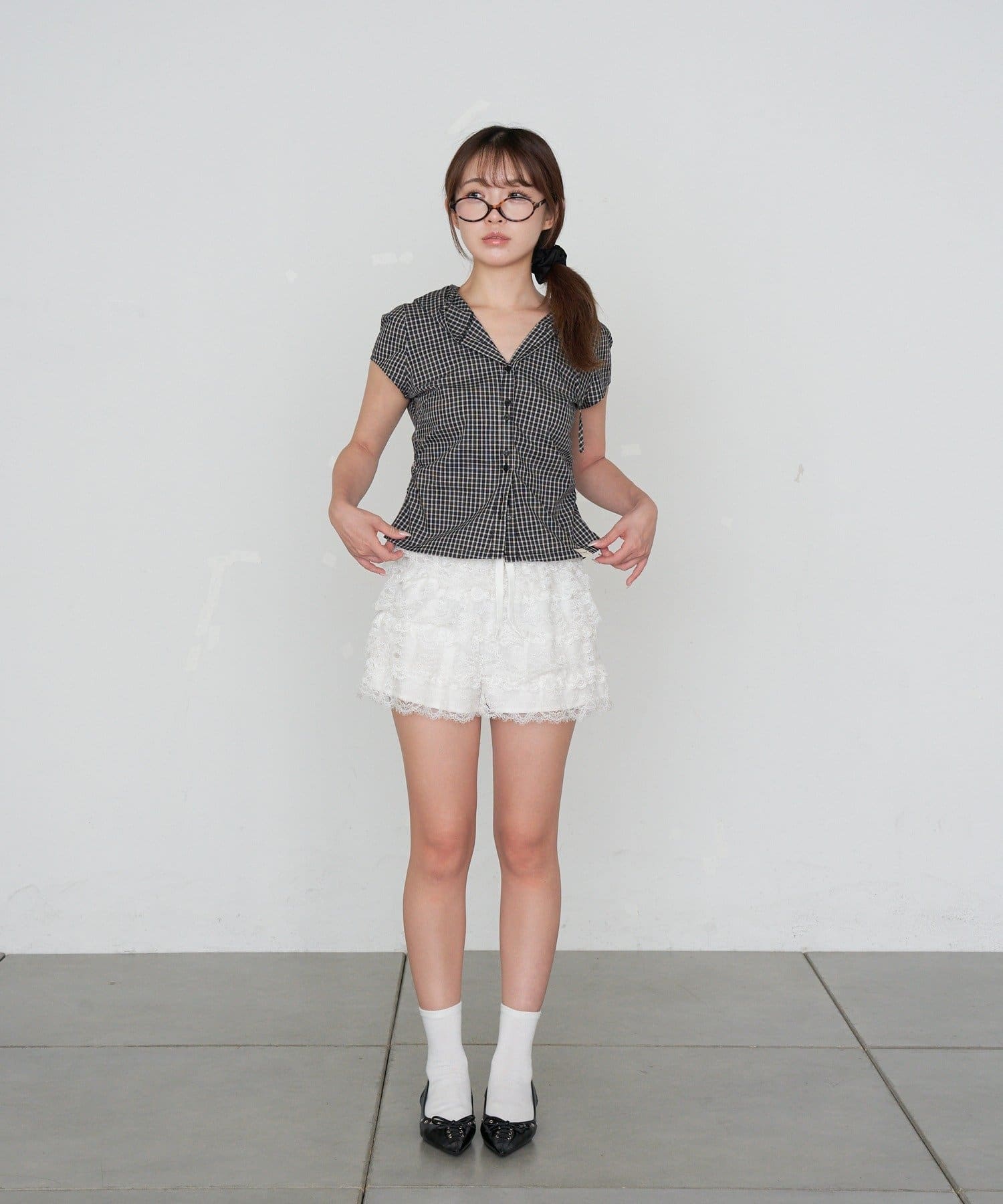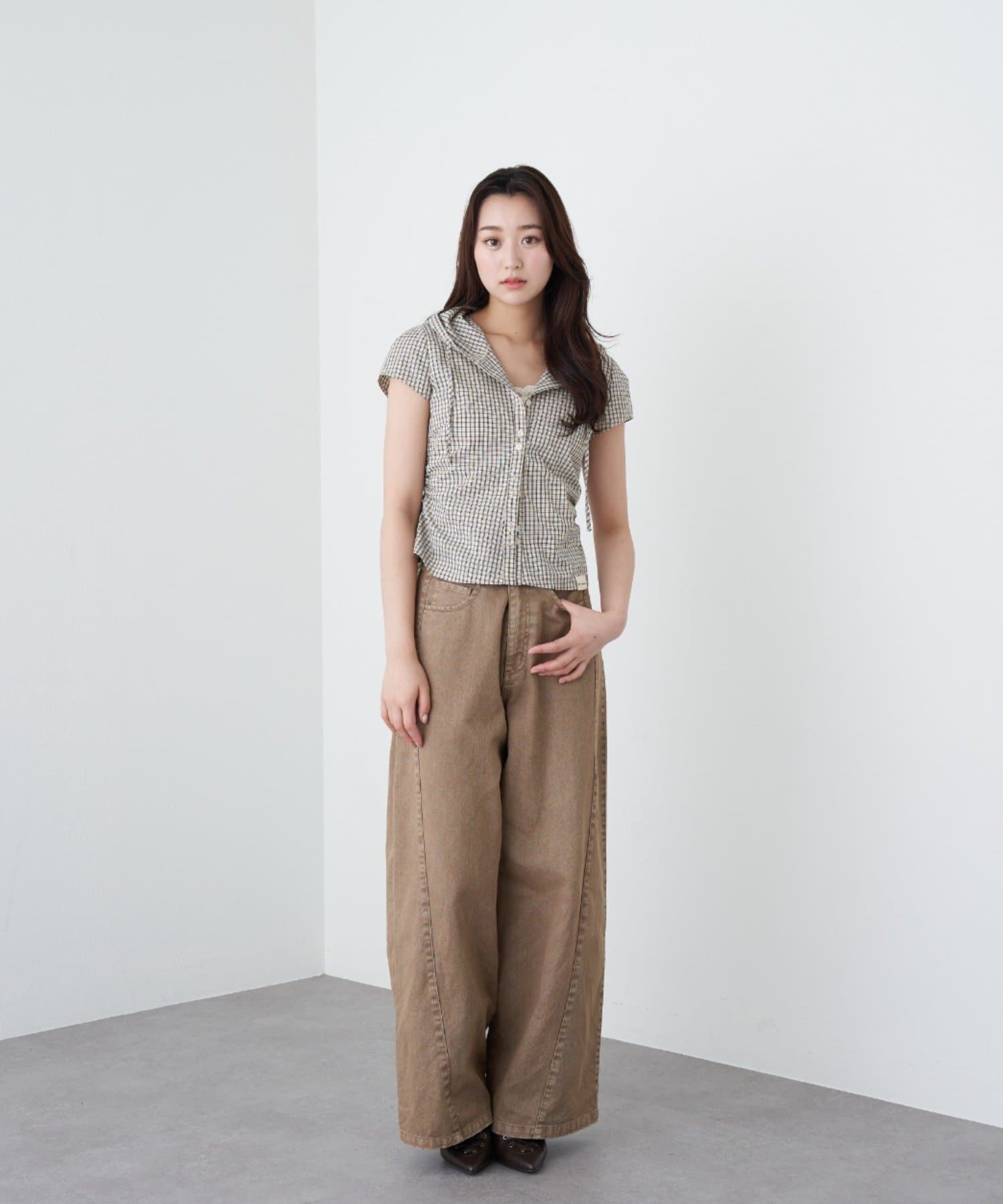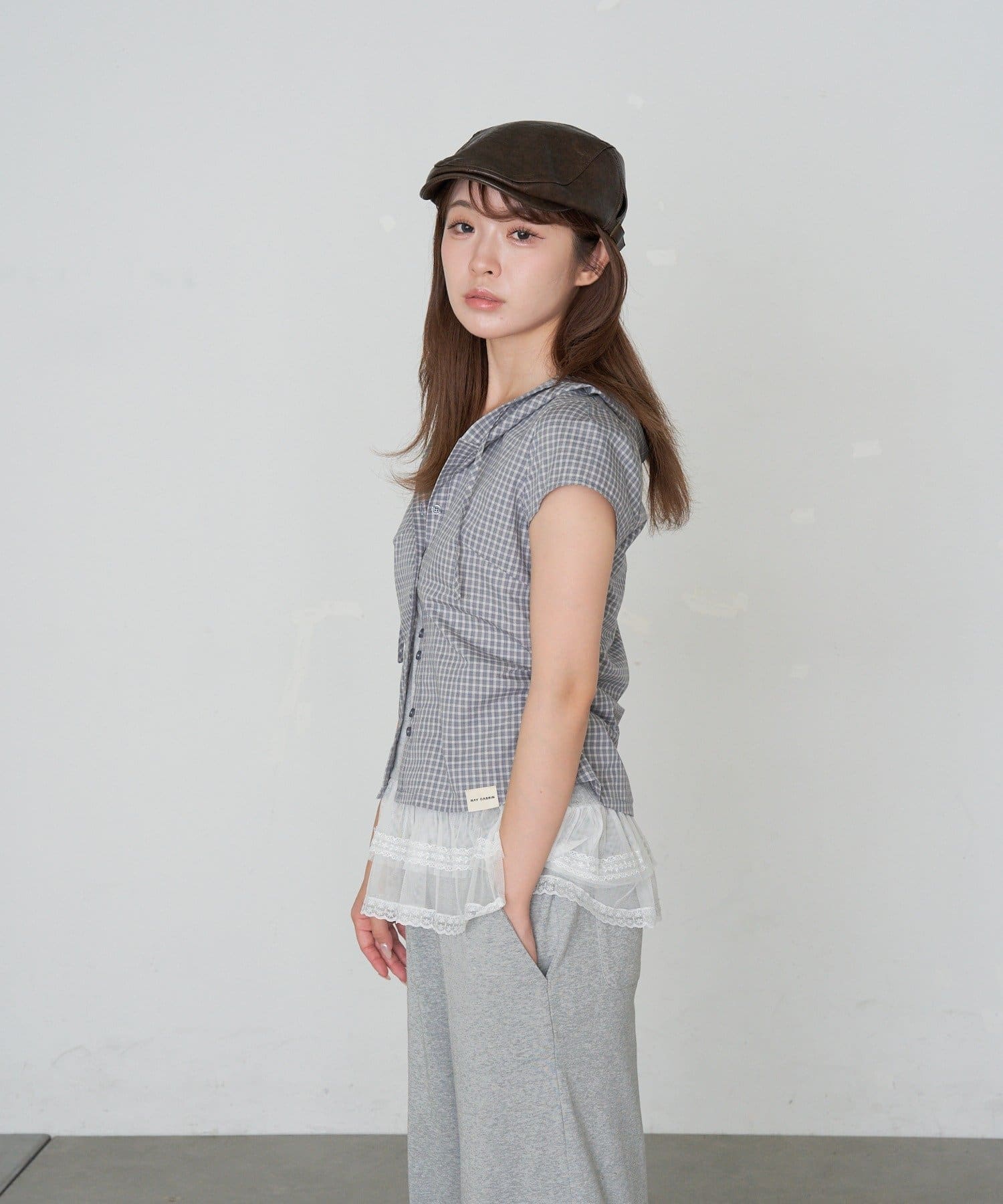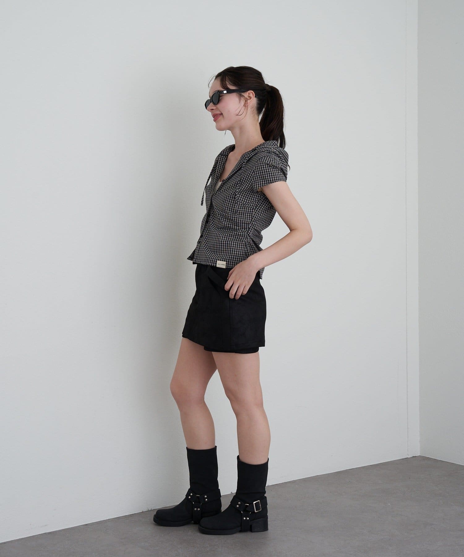 ・コンパクトなシルエットでカジュアルになりがちなチェックシャツも女性らしく着ていただけます