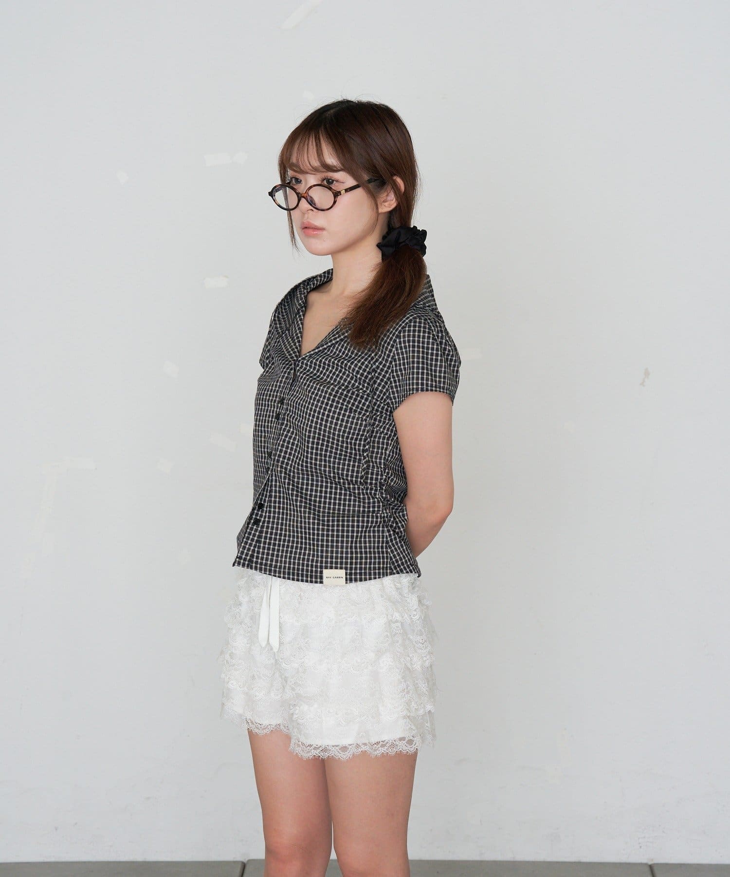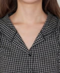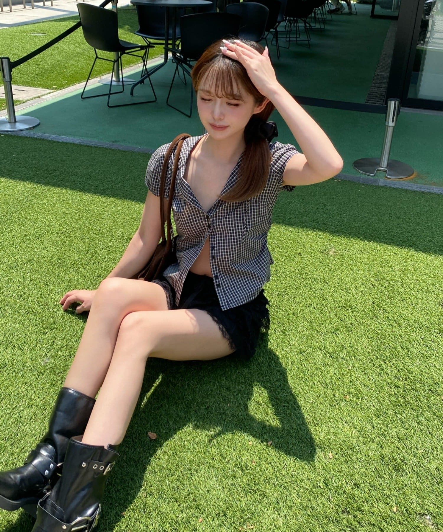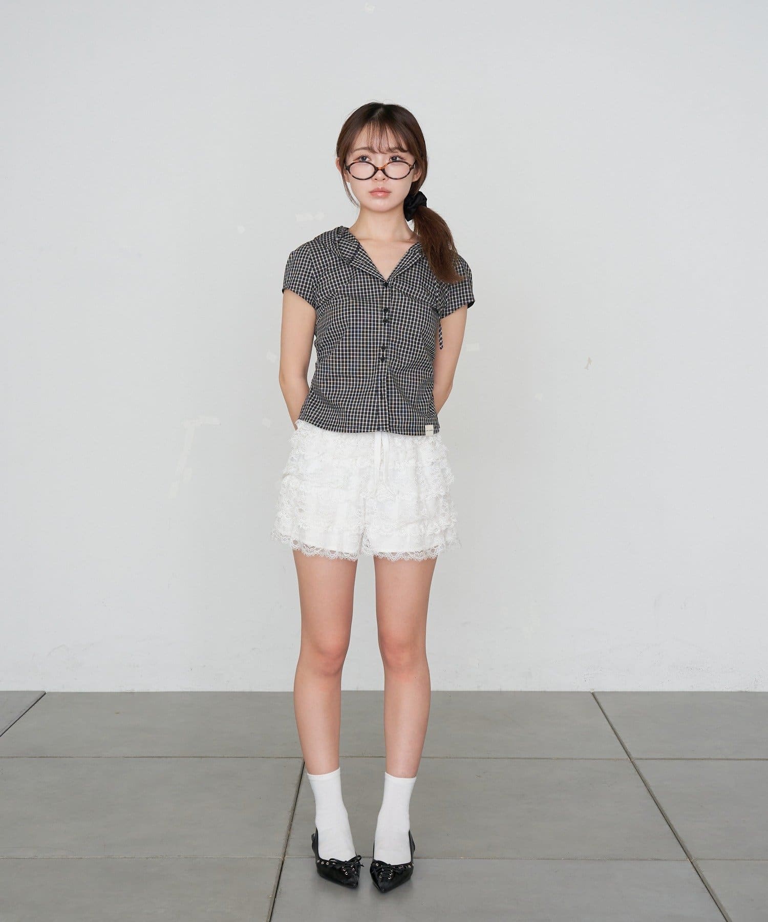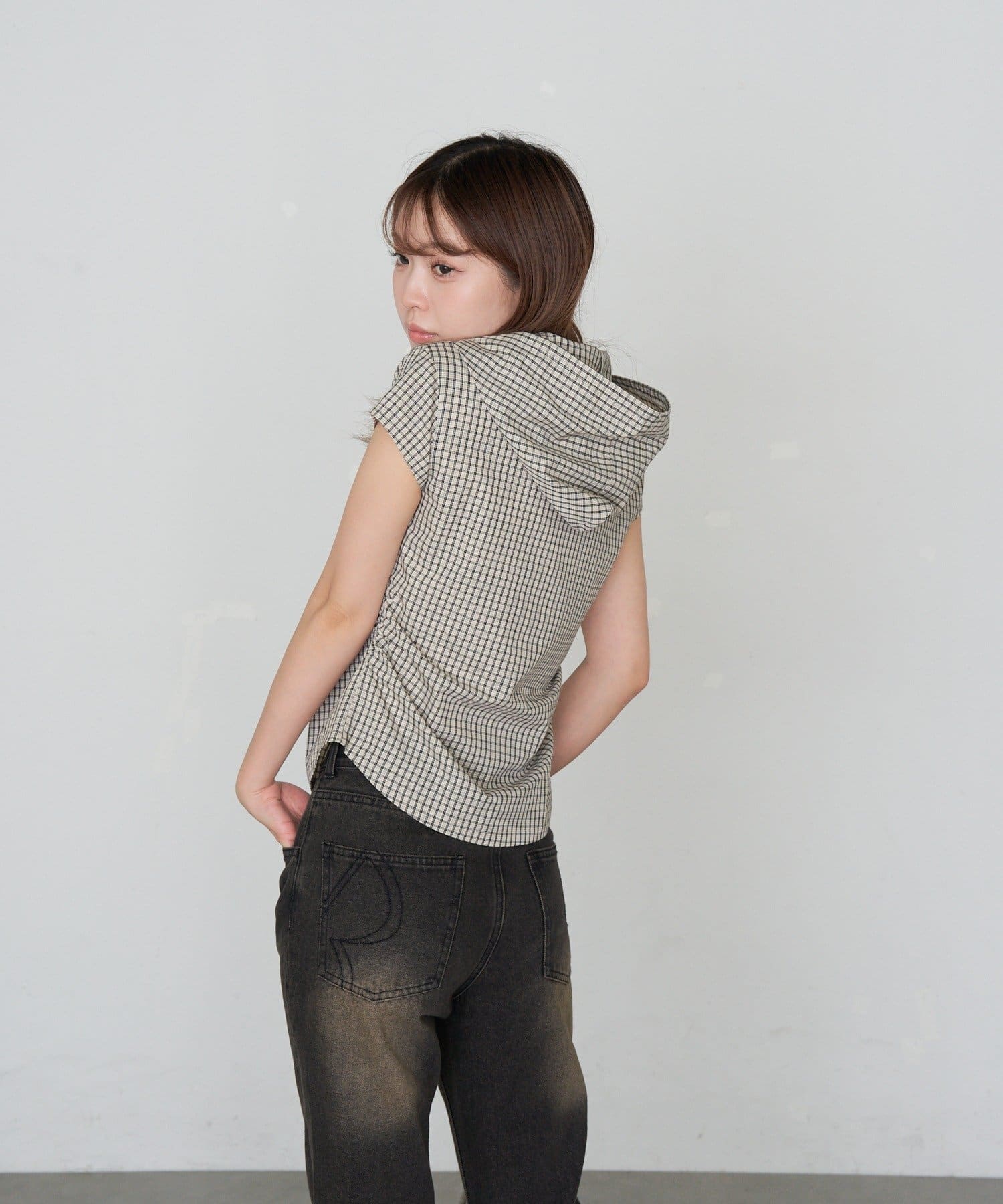 ・コンパクトなシルエットでカジュアルになりがちなチェックシャツも女性らしく着ていただけます