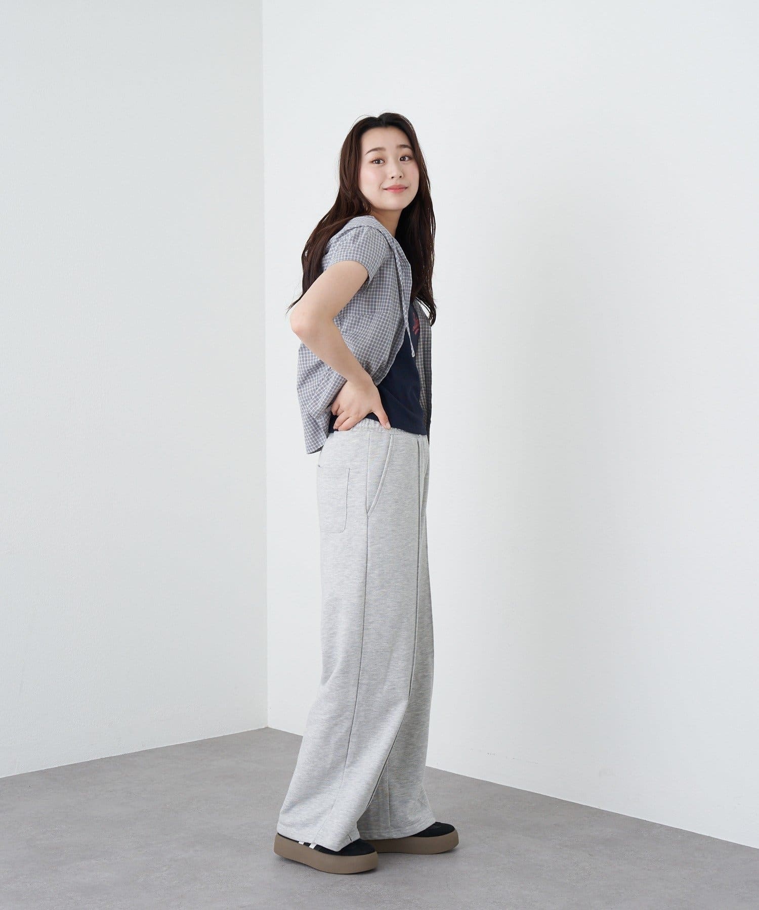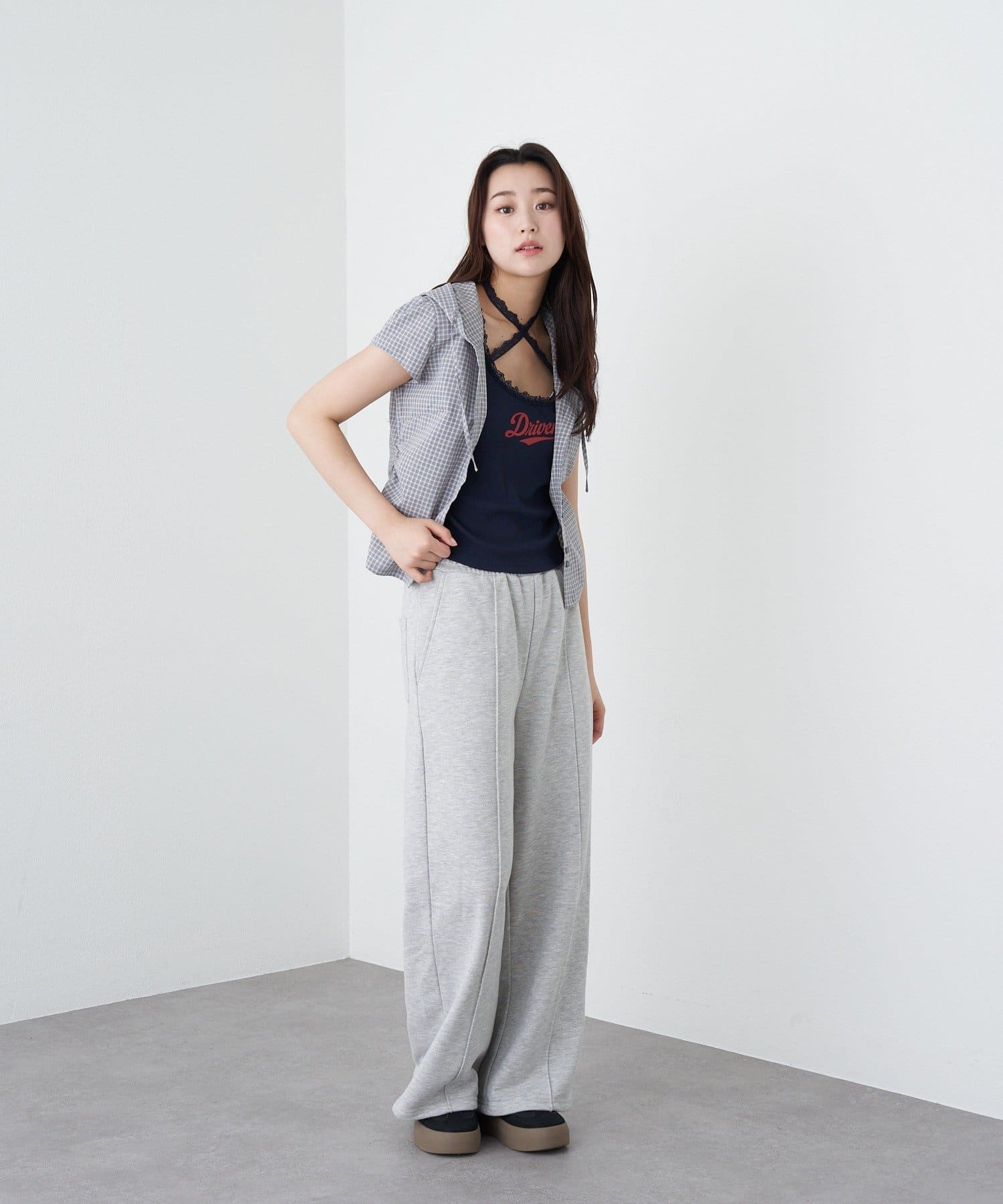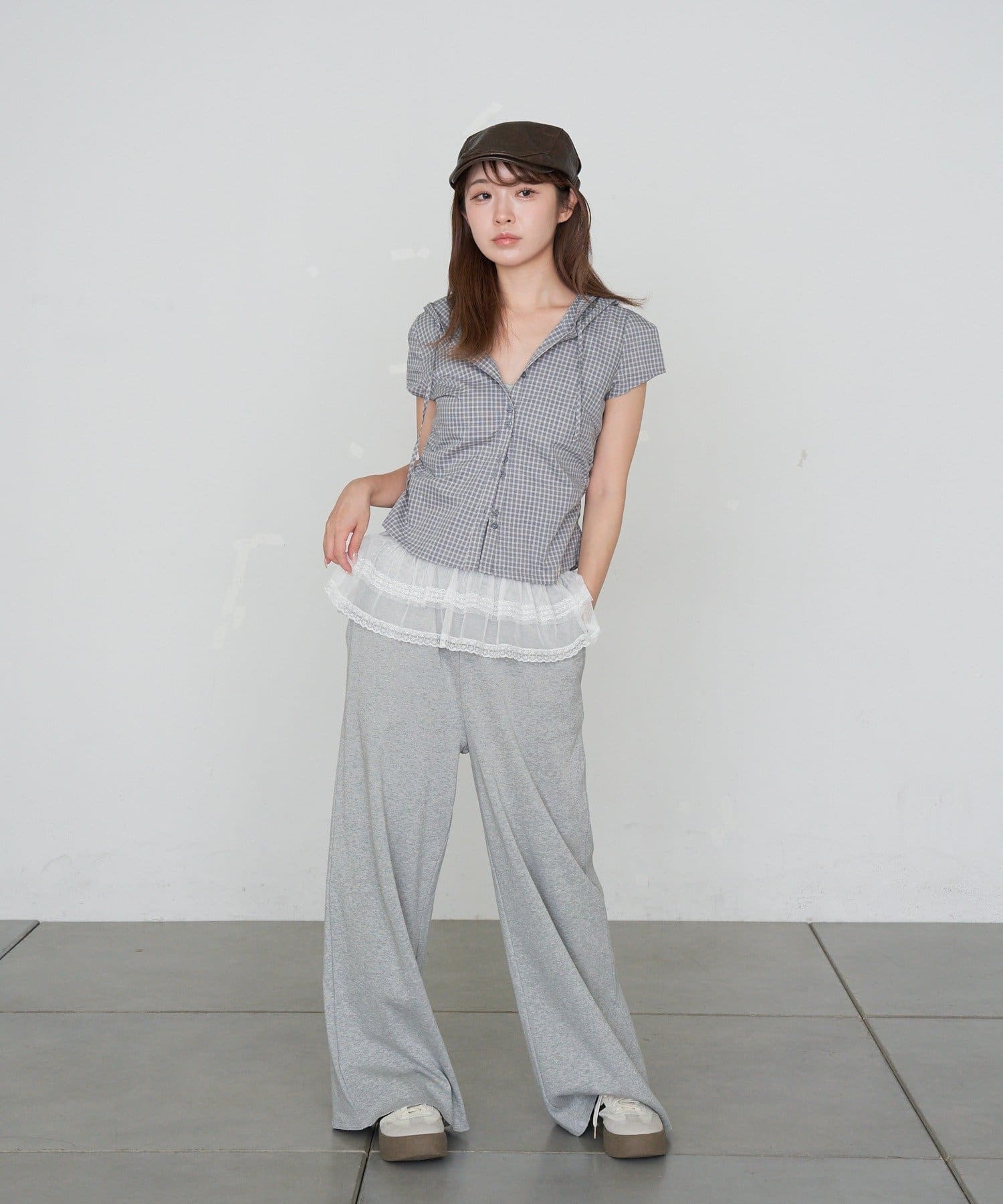 【セットアップ対応/ウエスト総ゴム】/レースウエストレイヤードスウェットパンツ