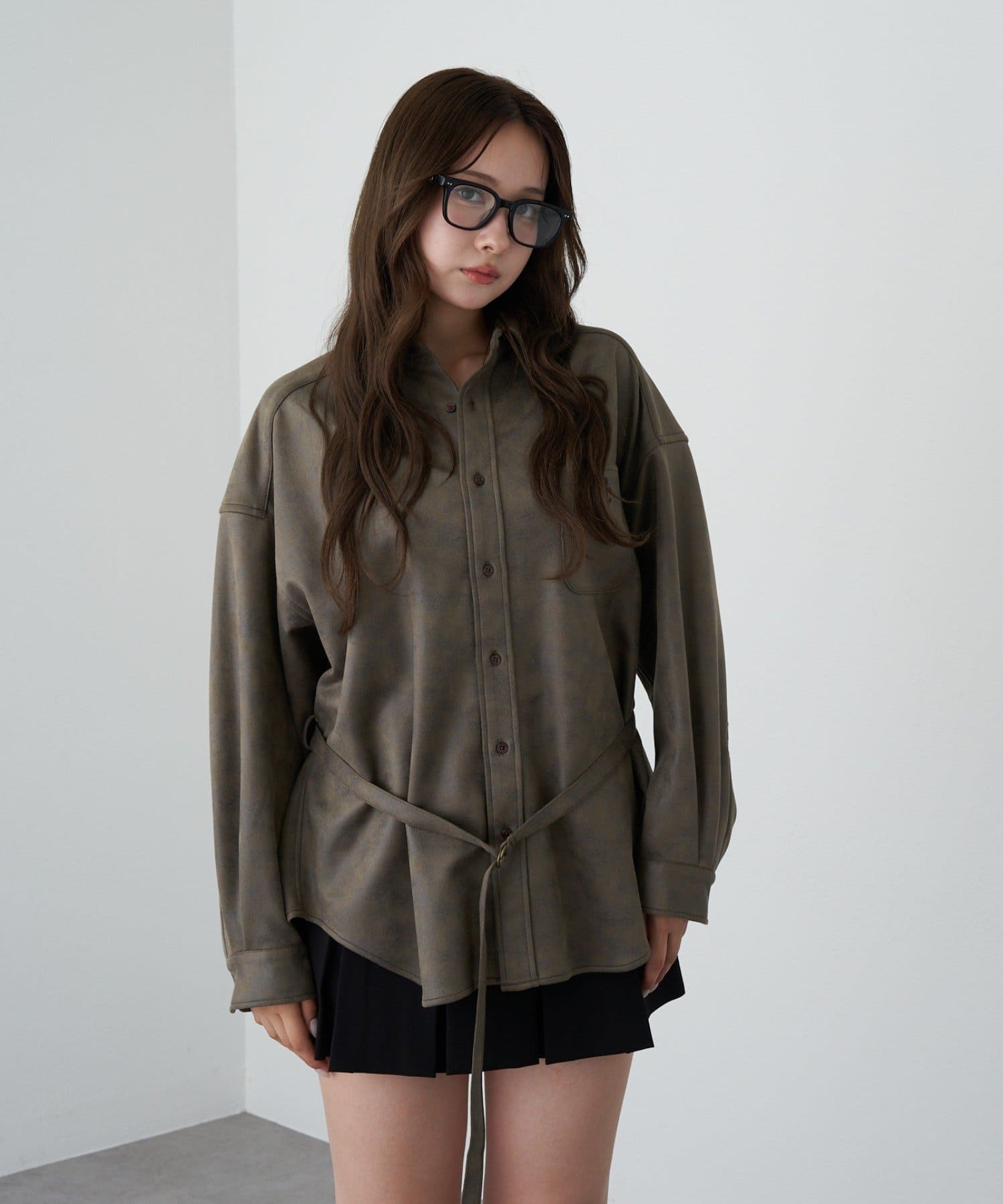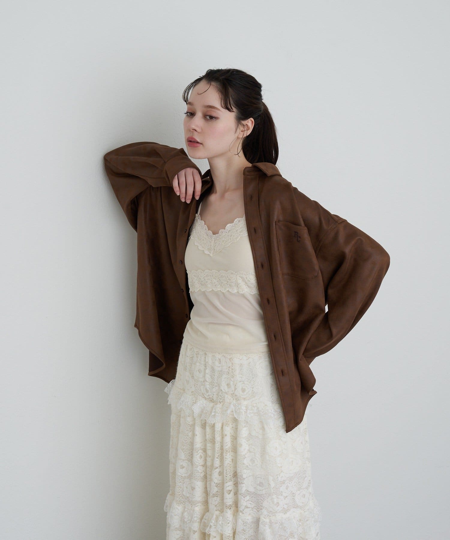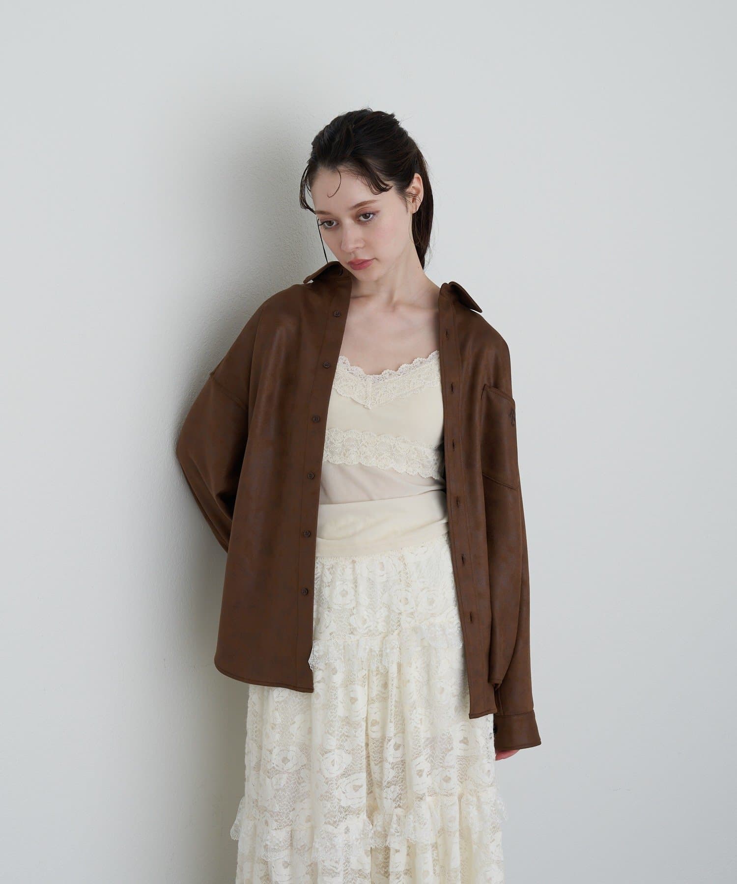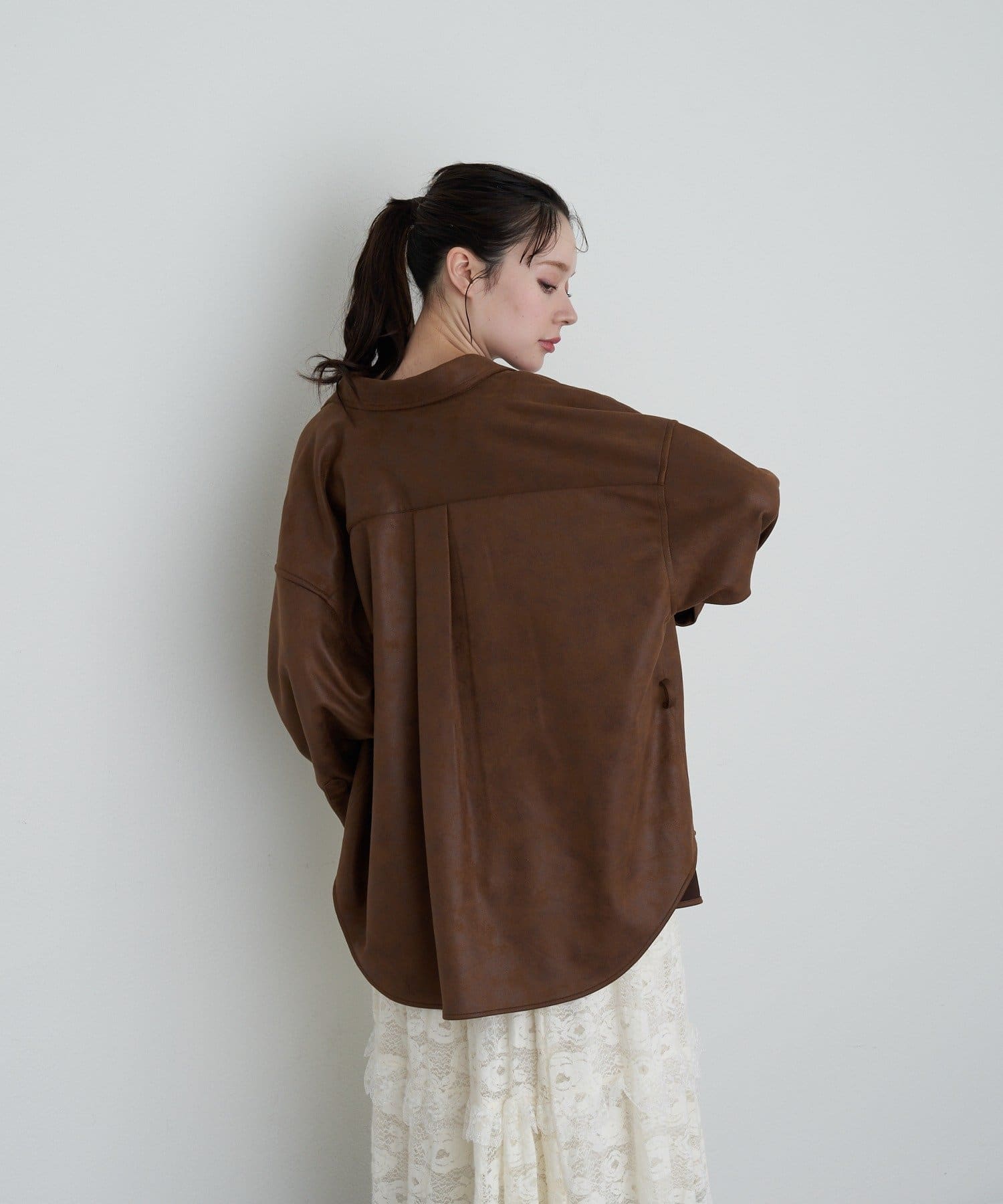軽くて滑らかな肌触りが特徴のスウェード調デザインシャツ。