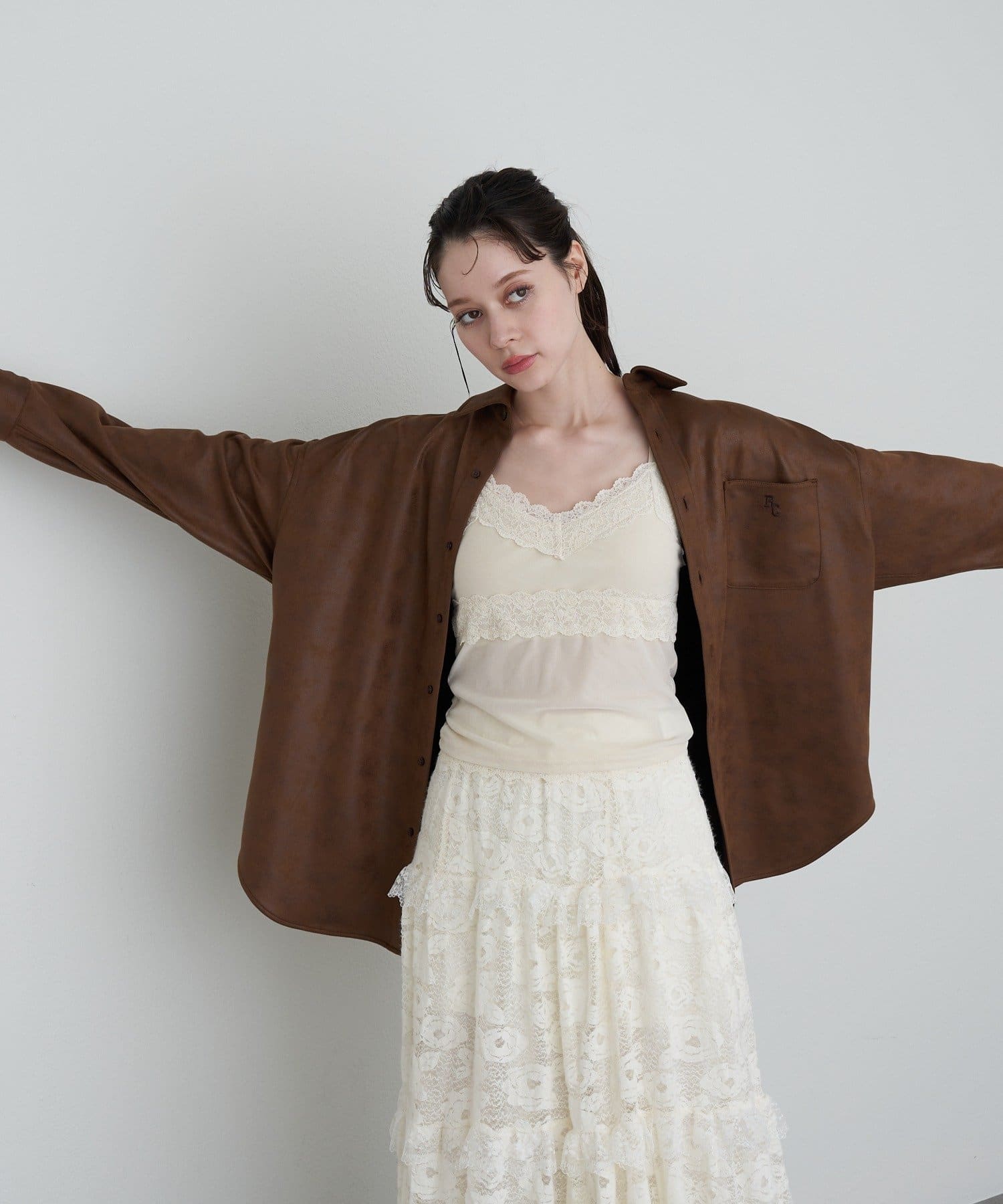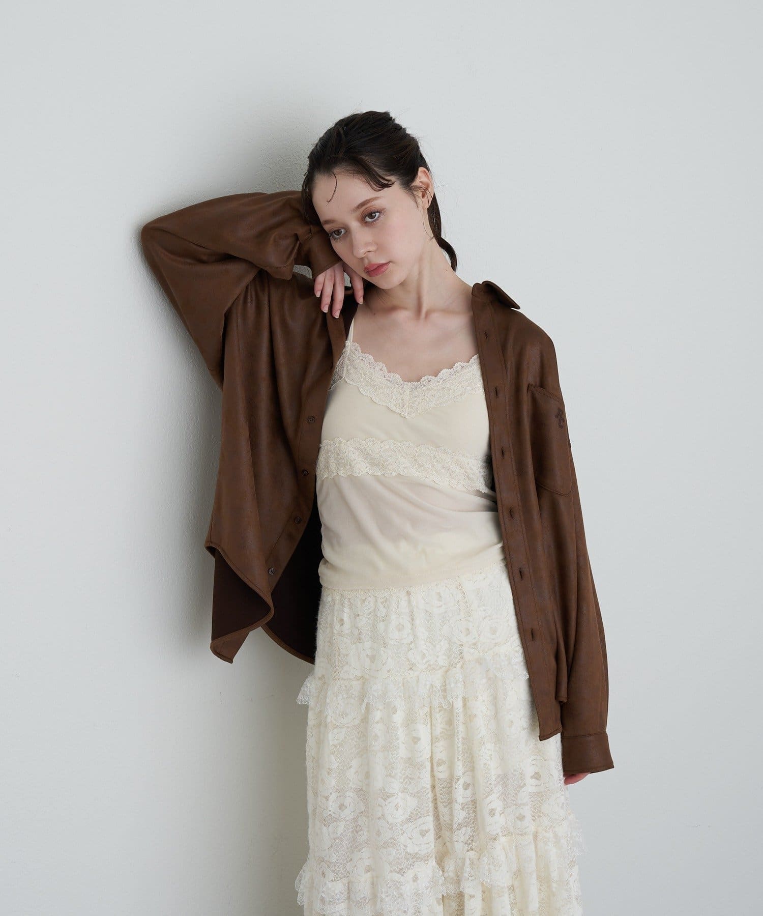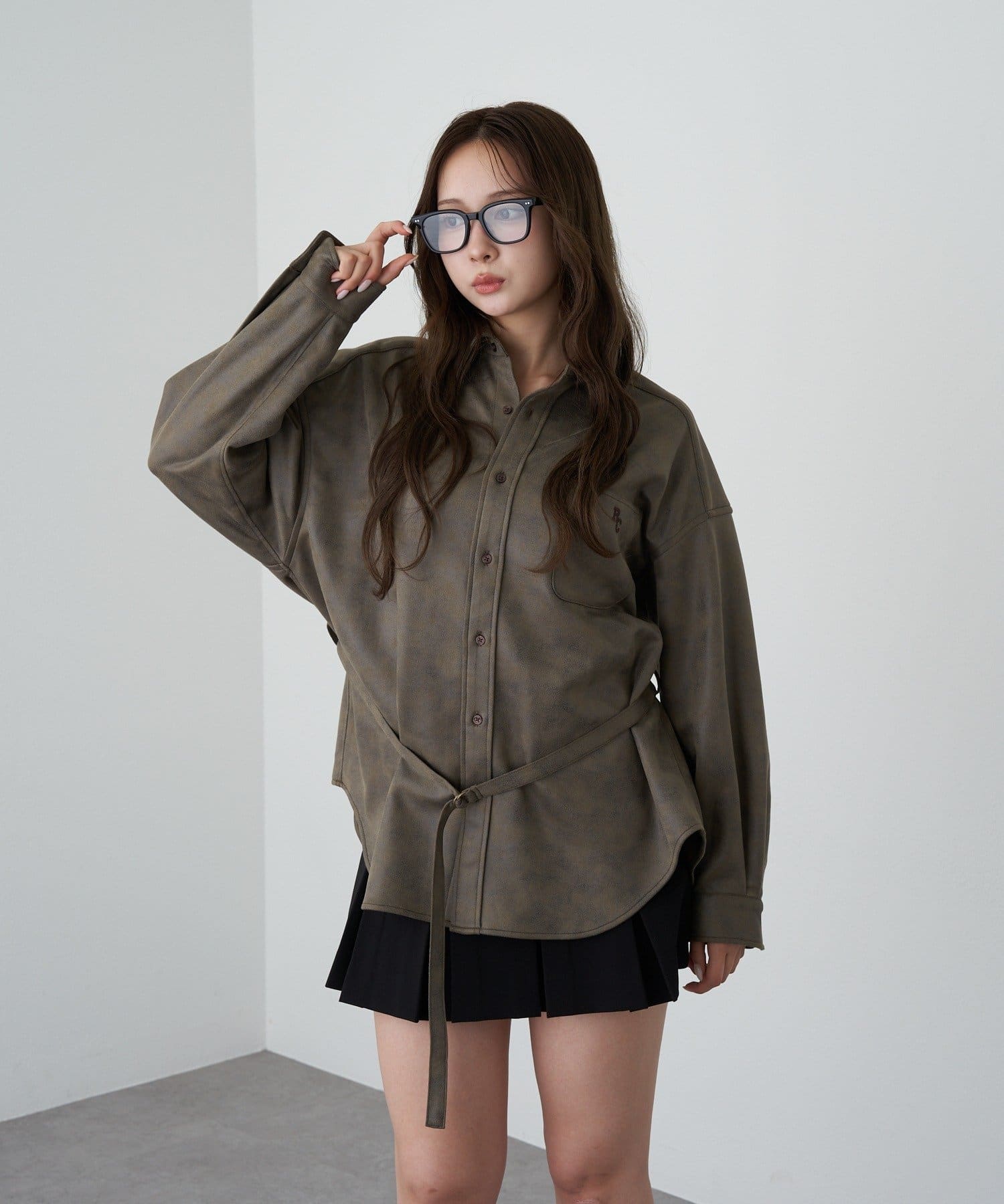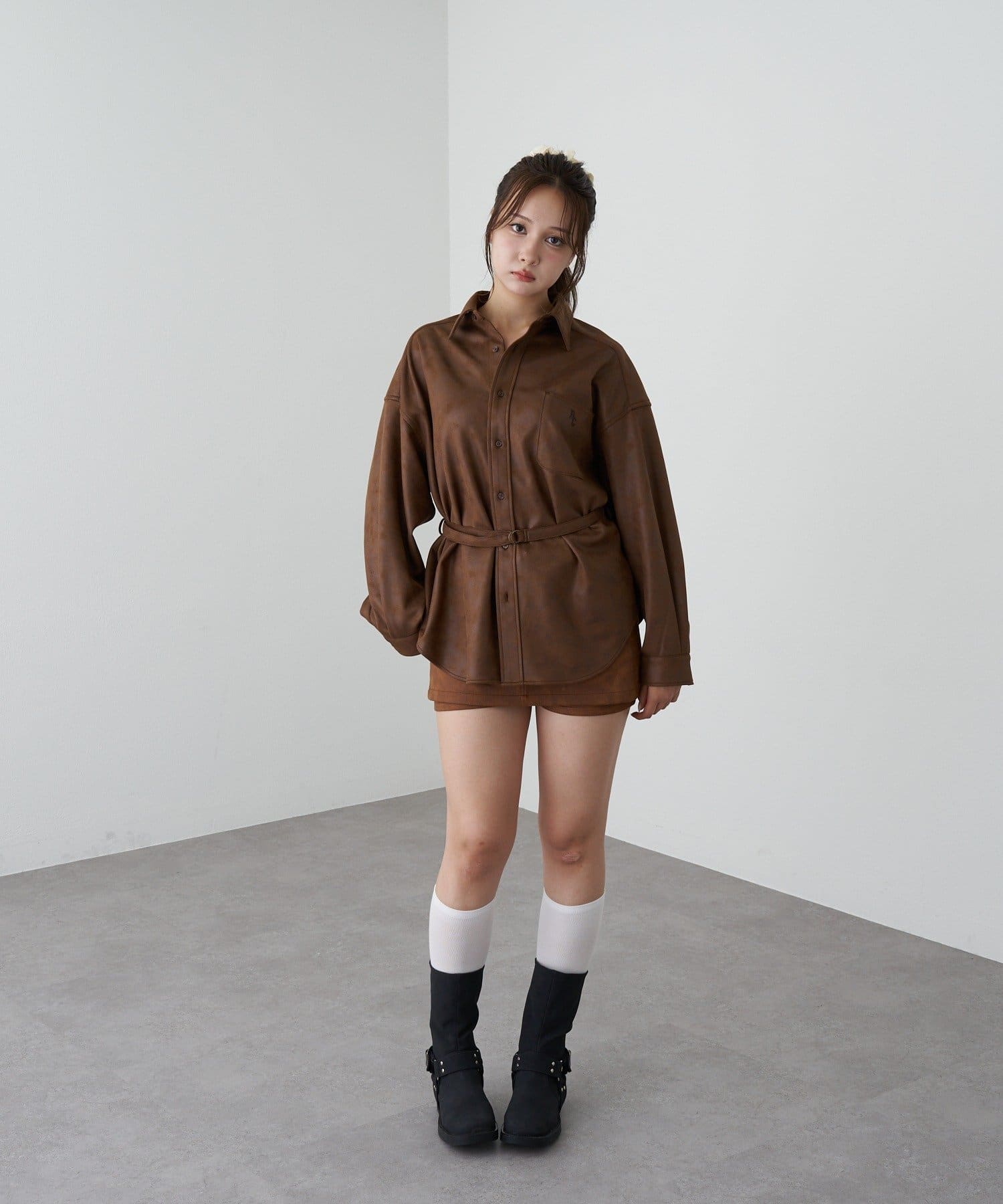 軽くて滑らかな肌触りが特徴のスウェード調デザインシャツ。