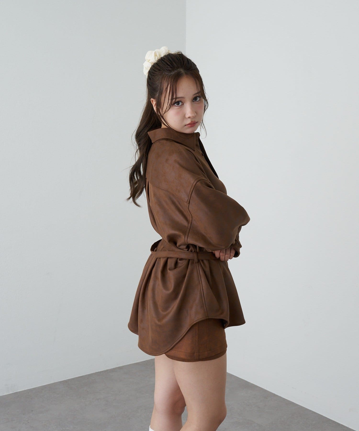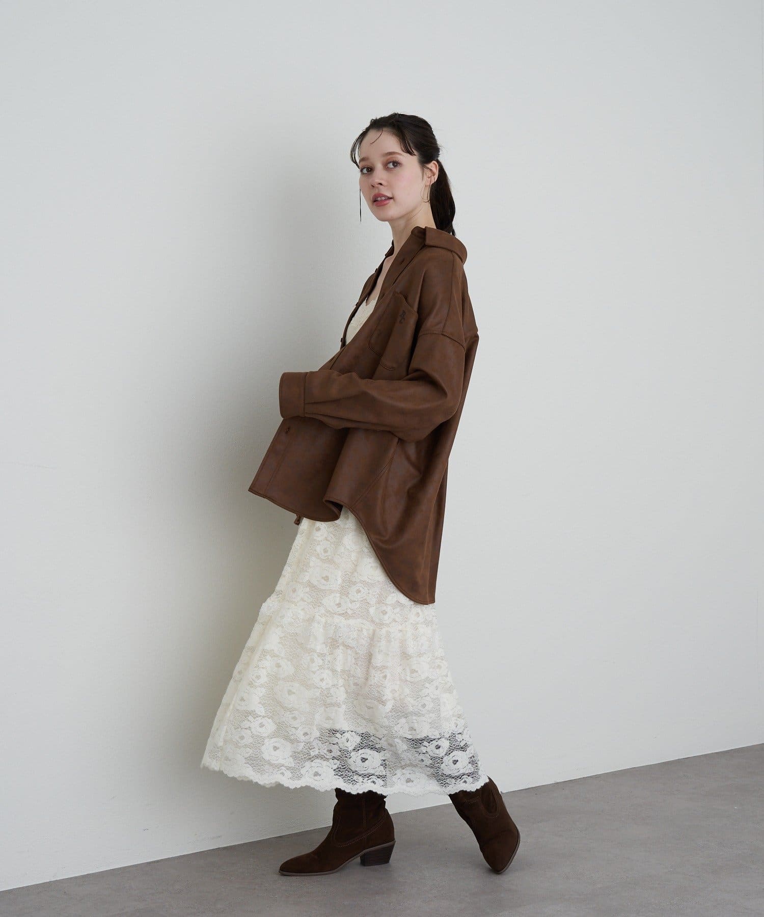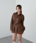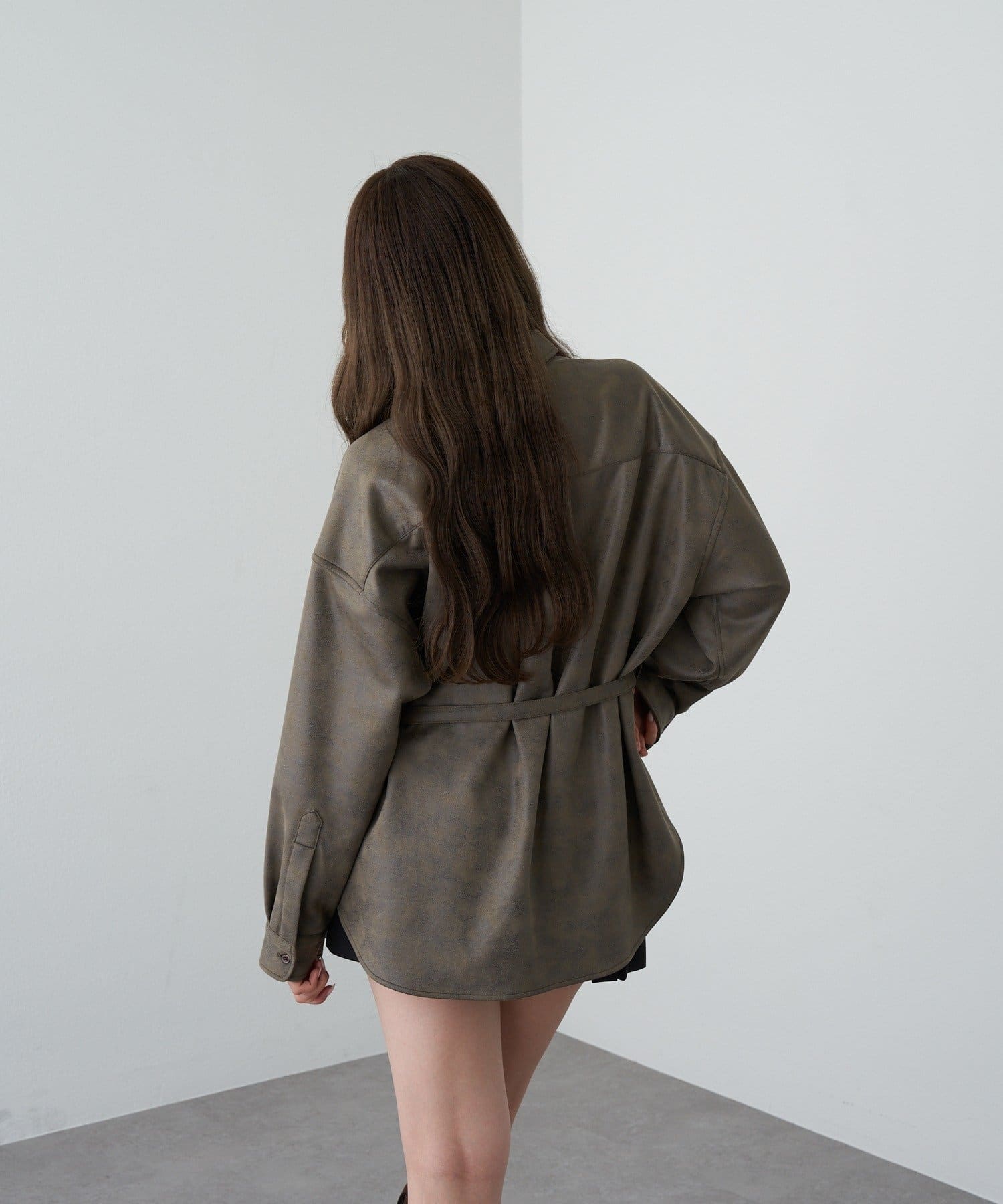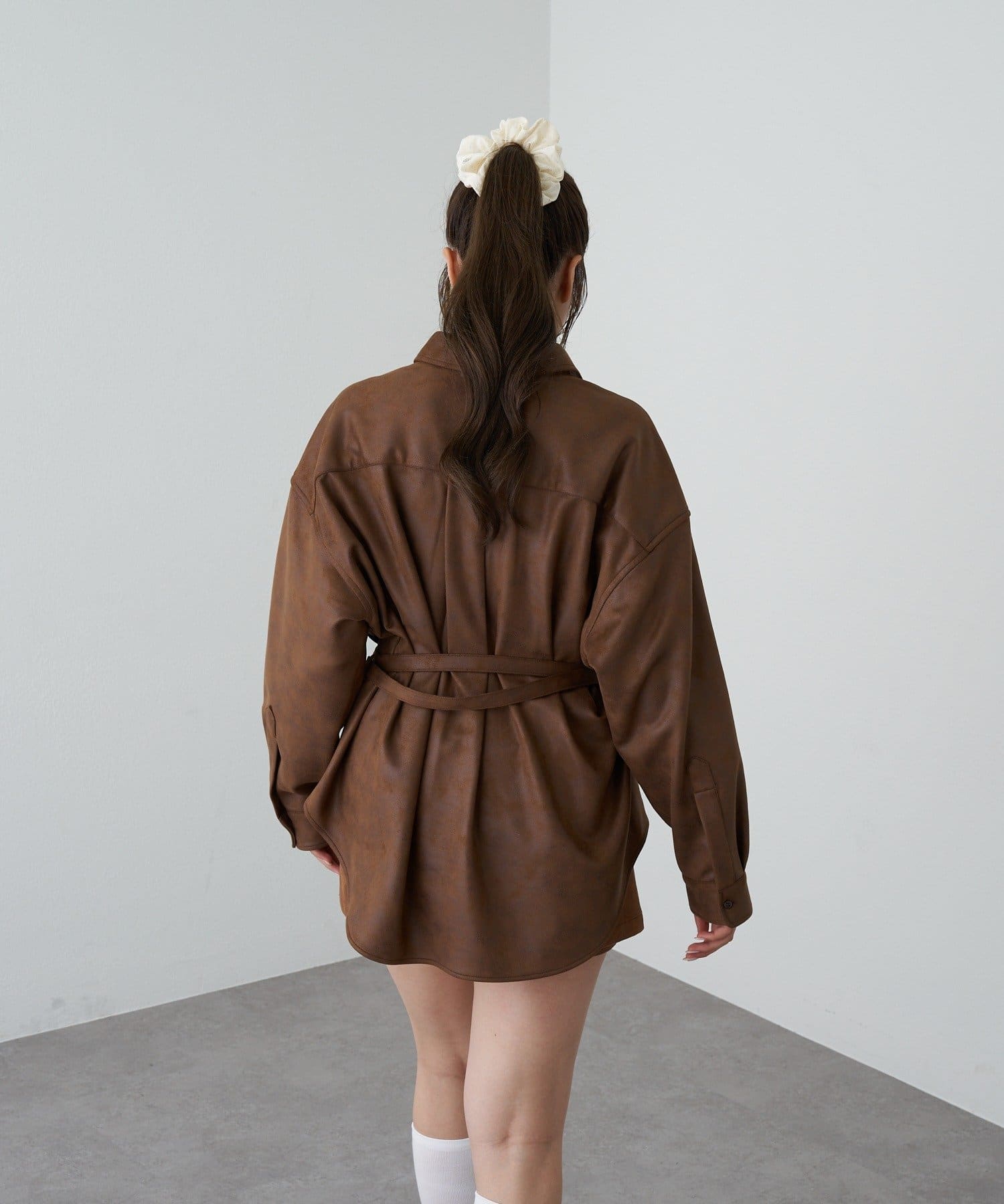軽くて滑らかな肌触りが特徴のスウェード調デザインシャツ。