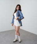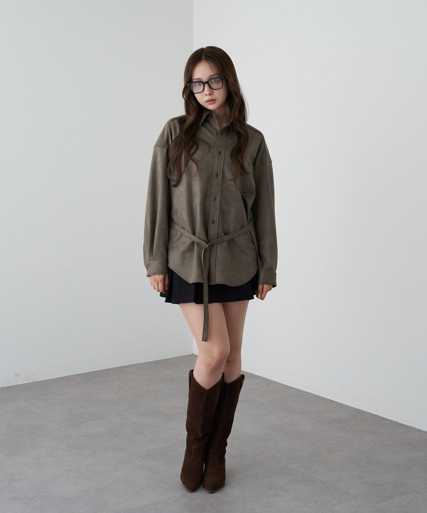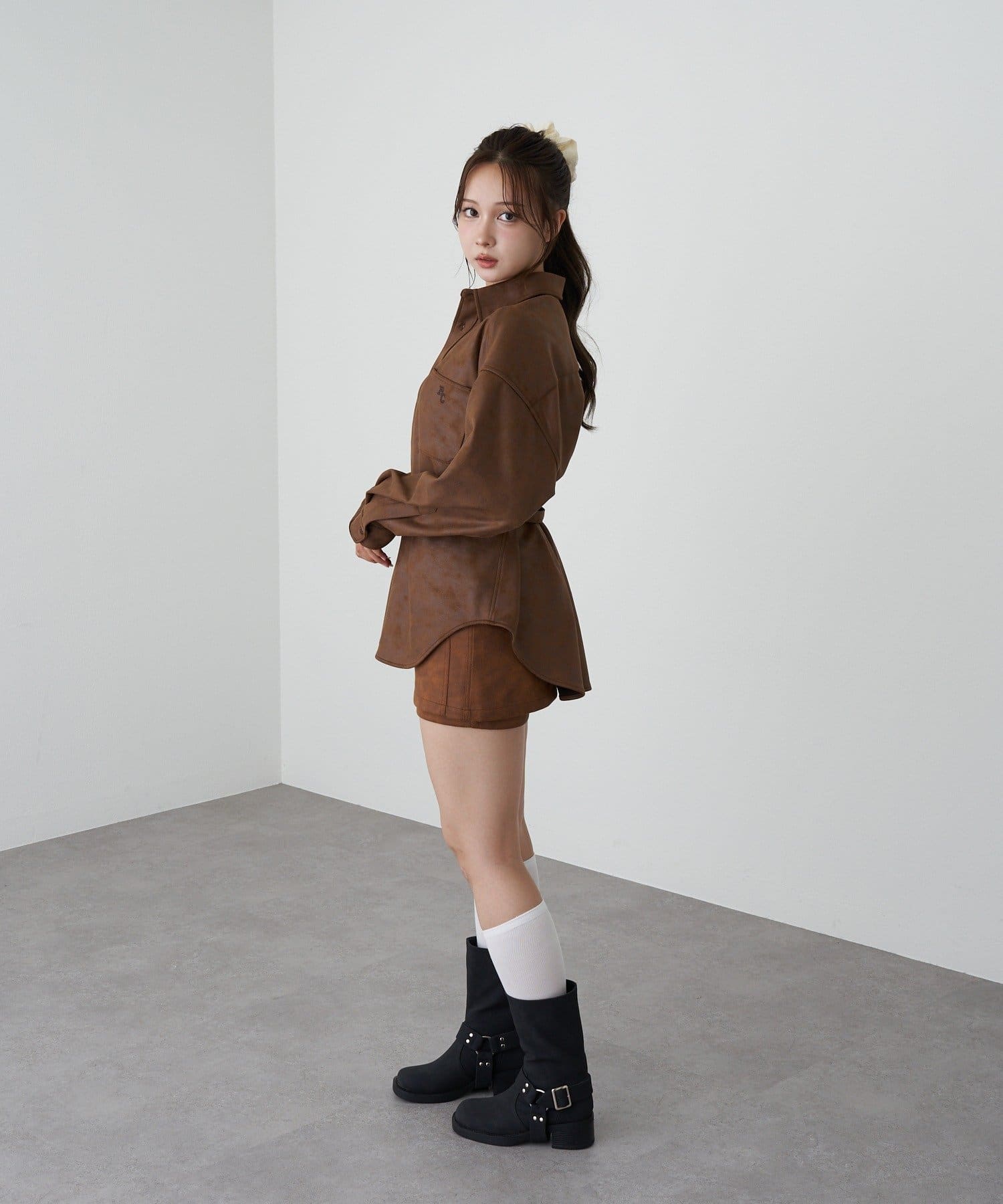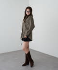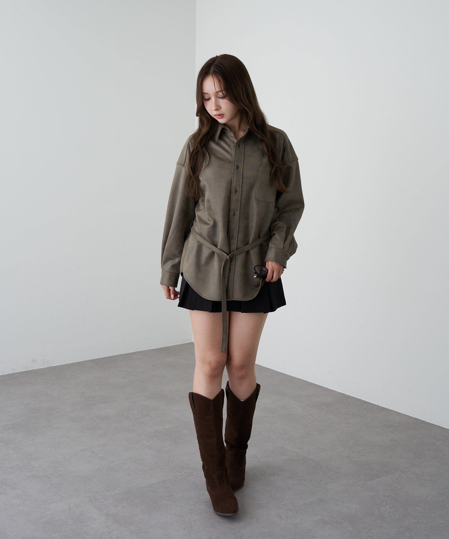 ・ミニボトムと合わせてワンピ風に、ウエスタンブーツ合わせで秋らしいスタイルがおすすめ。