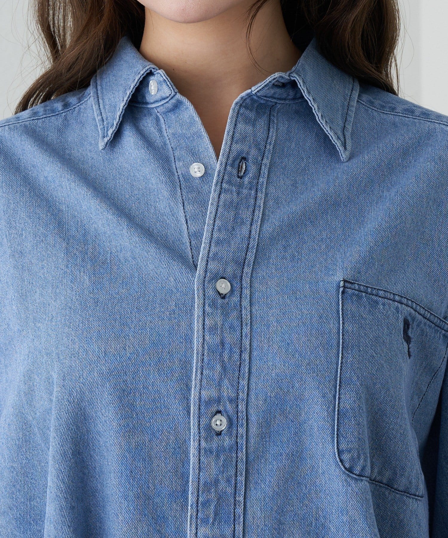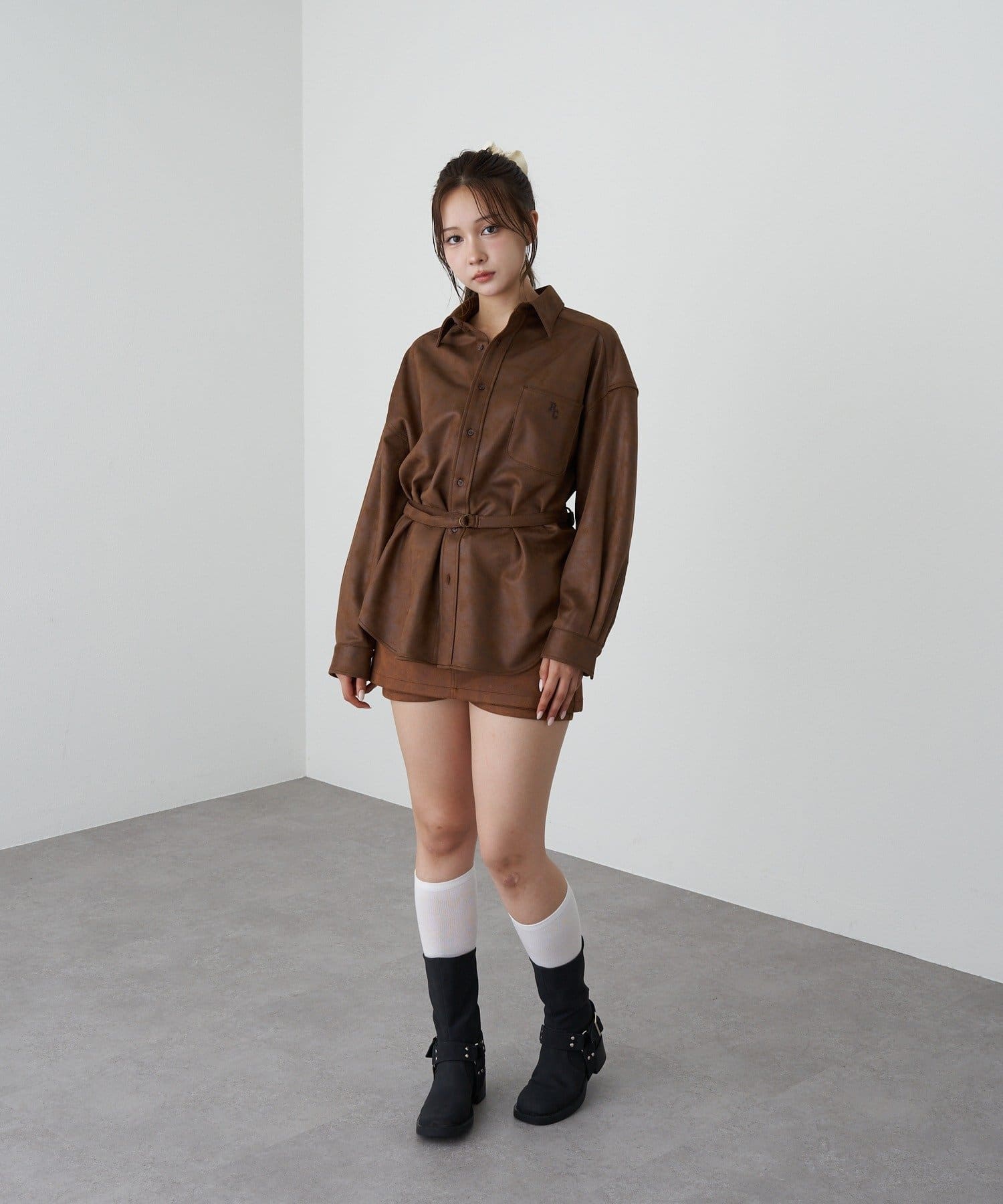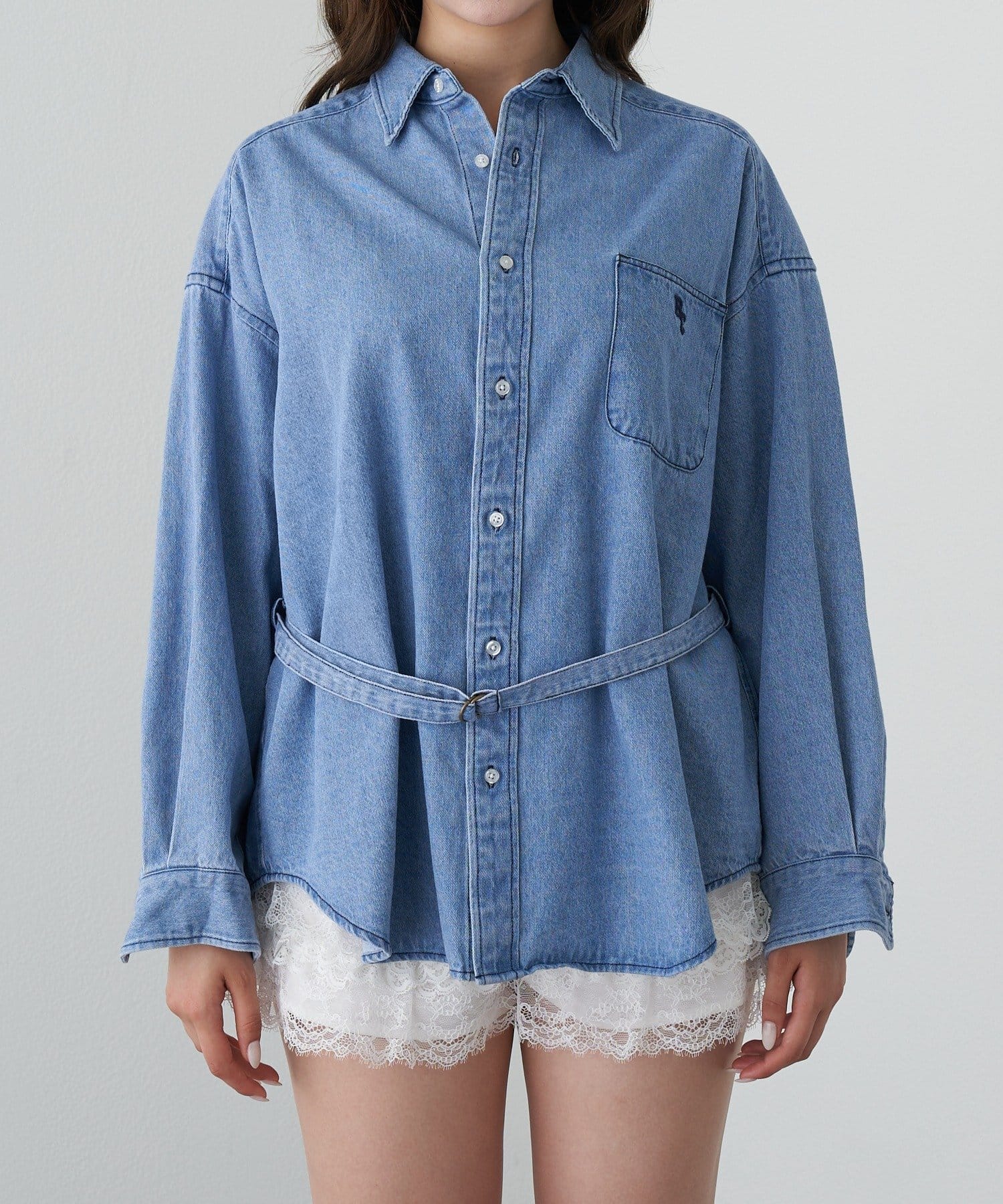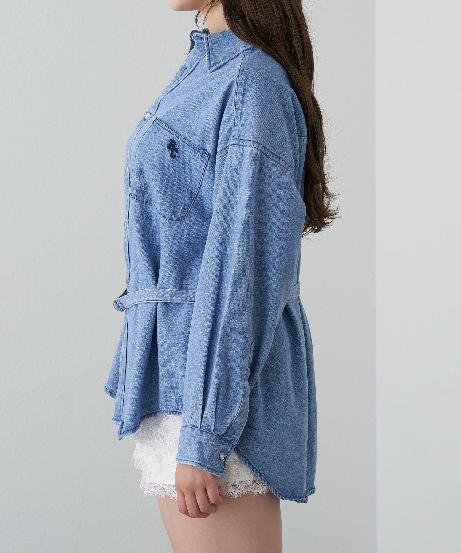 【RAY CASSIN】ベルト付ポケット刺繍ビッグシャツ