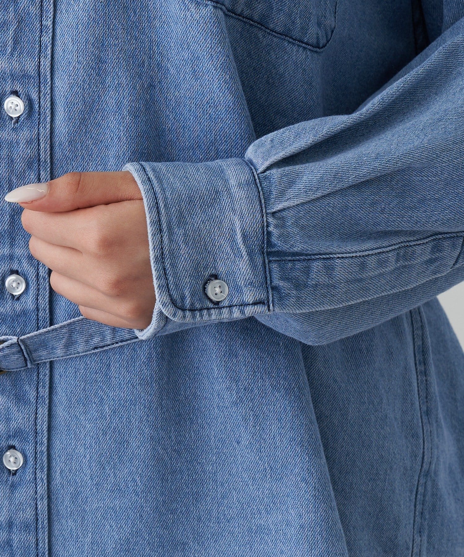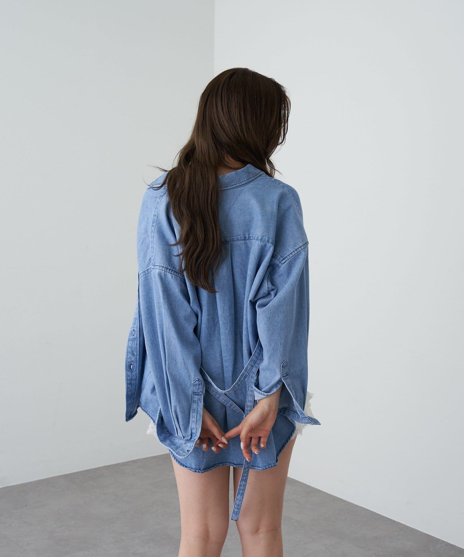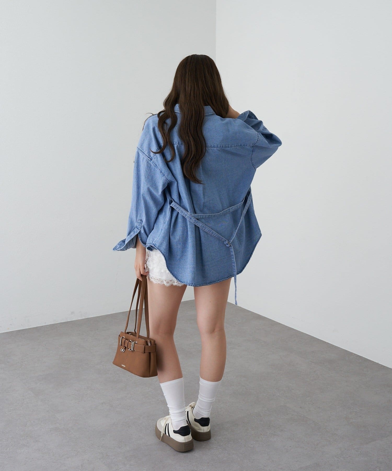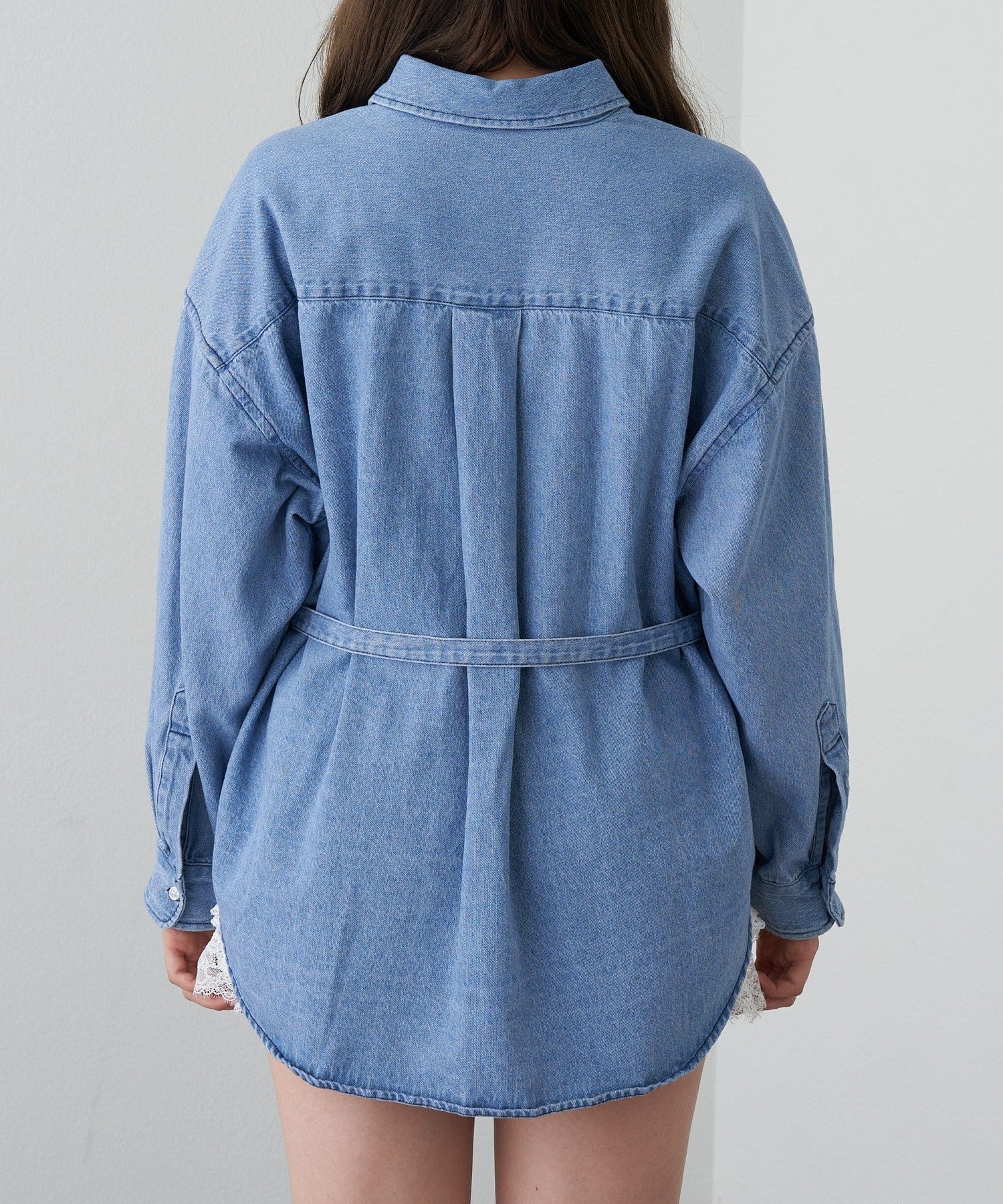 【RAY CASSIN】ベルト付ポケット刺繍ビッグシャツ
