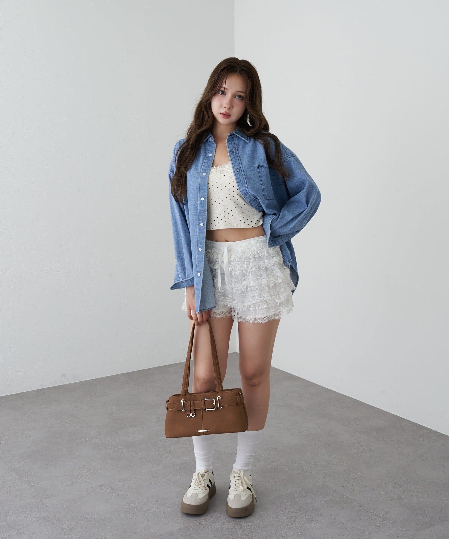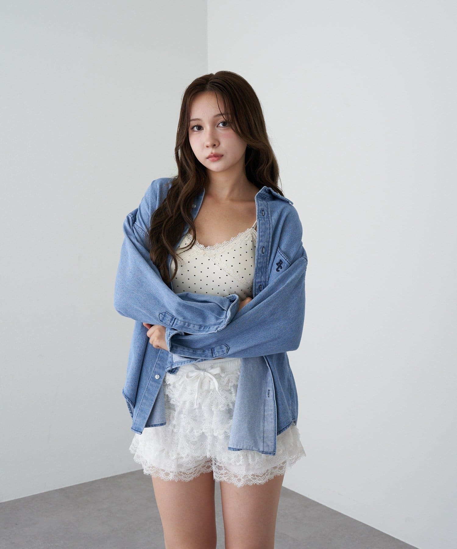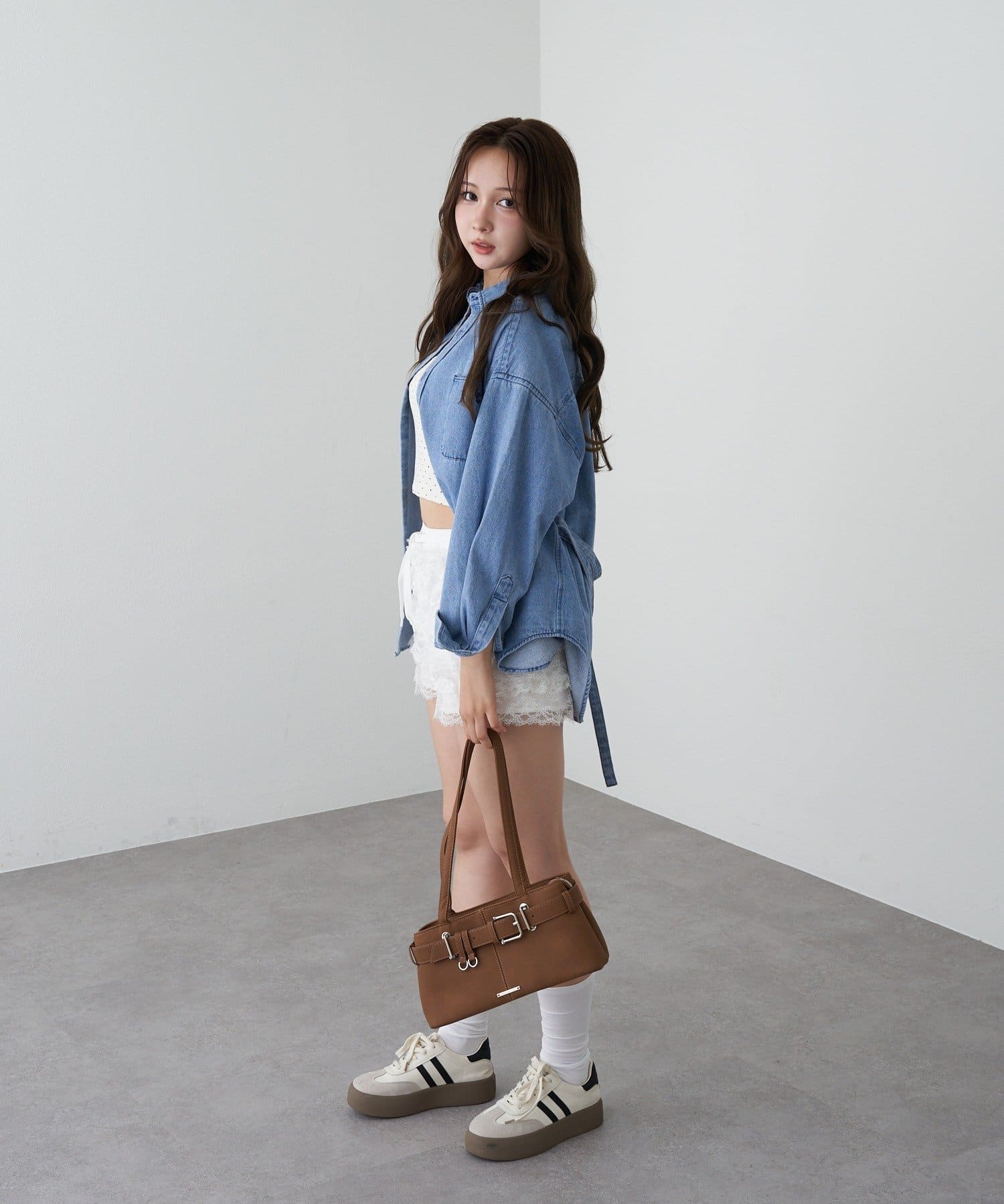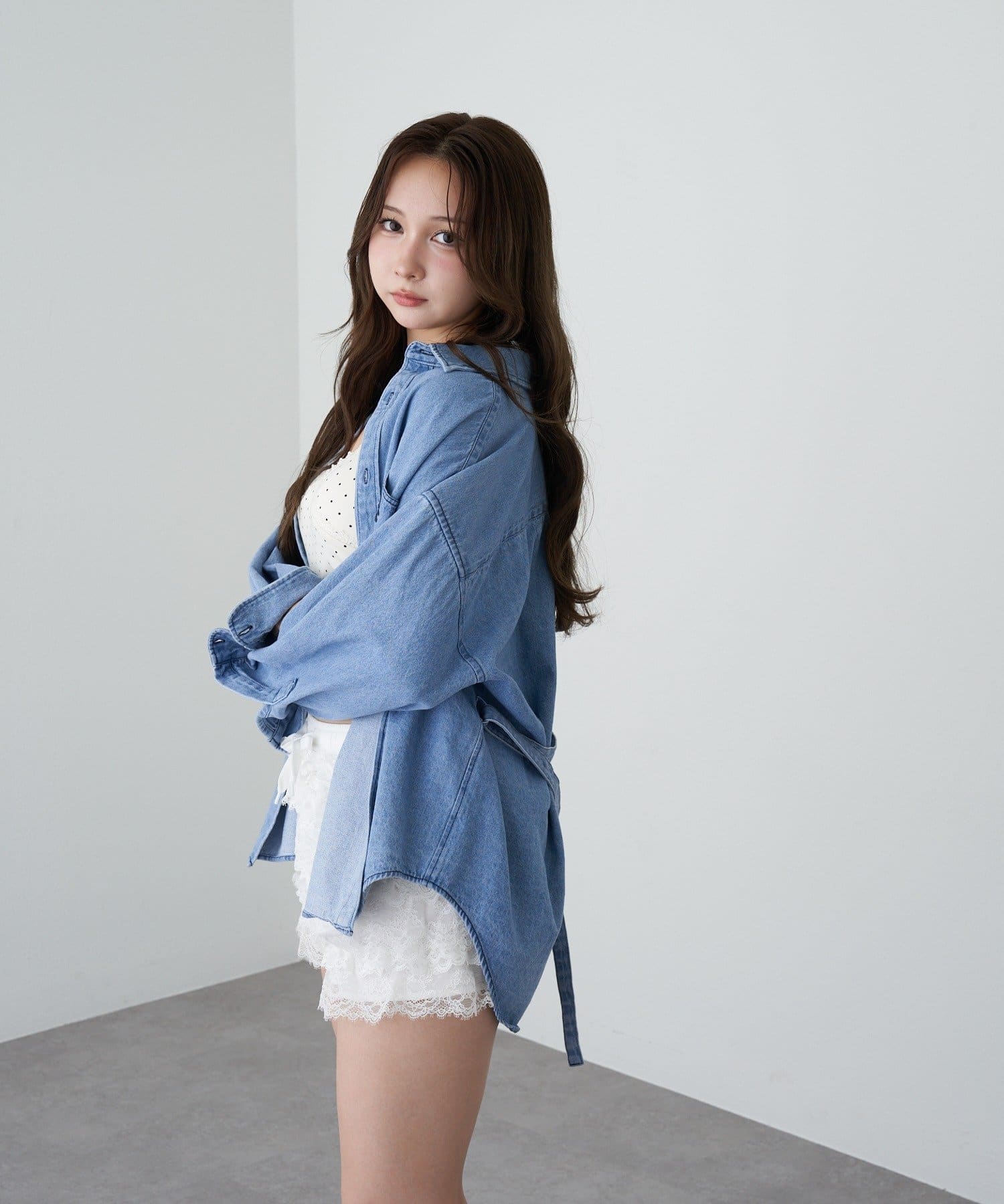 【RAY CASSIN】ベルト付ポケット刺繍ビッグシャツ