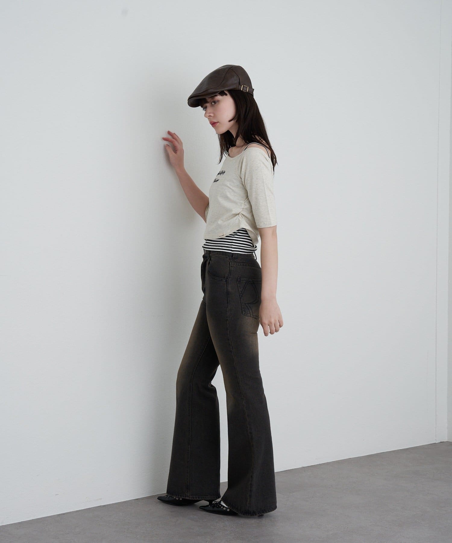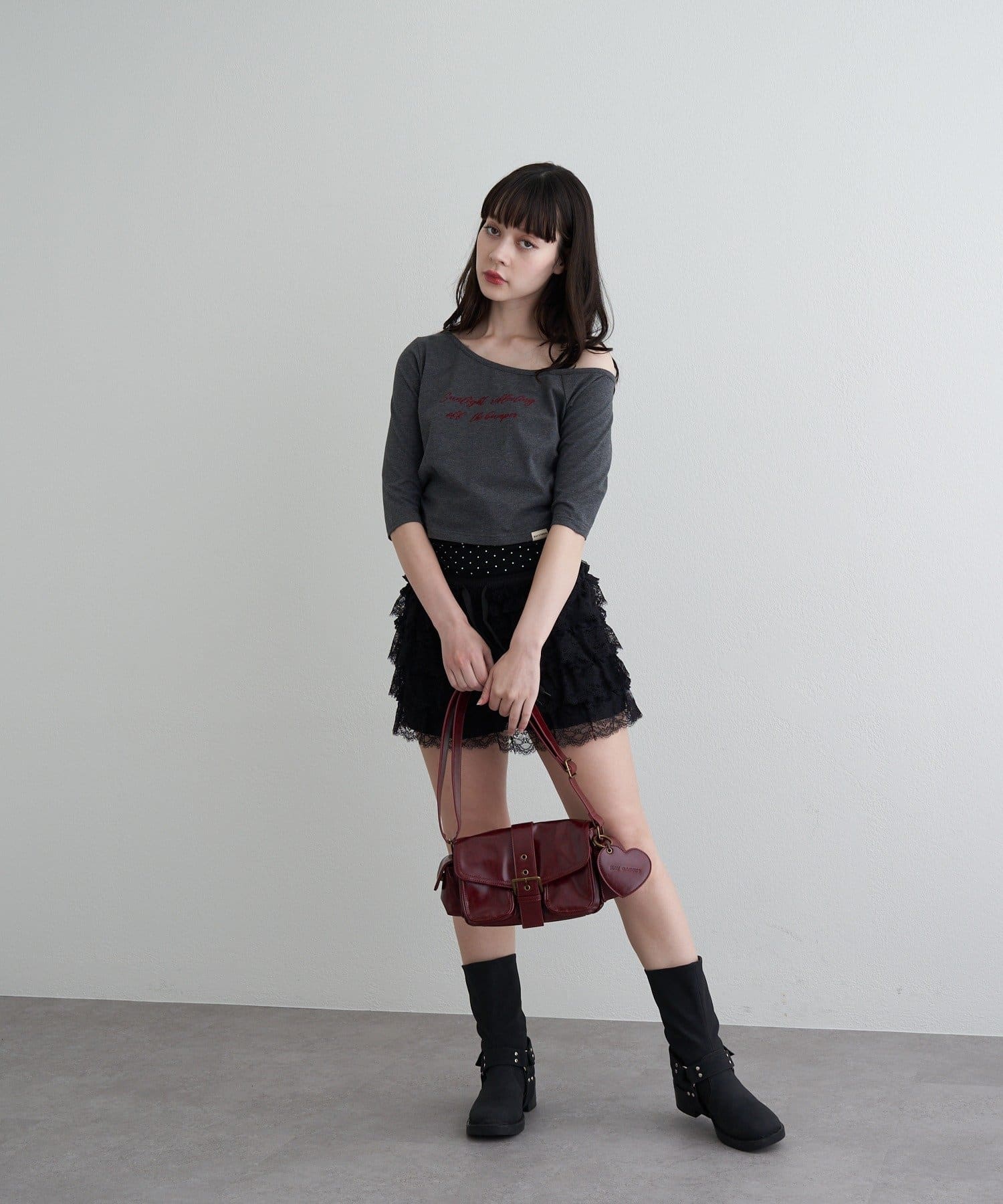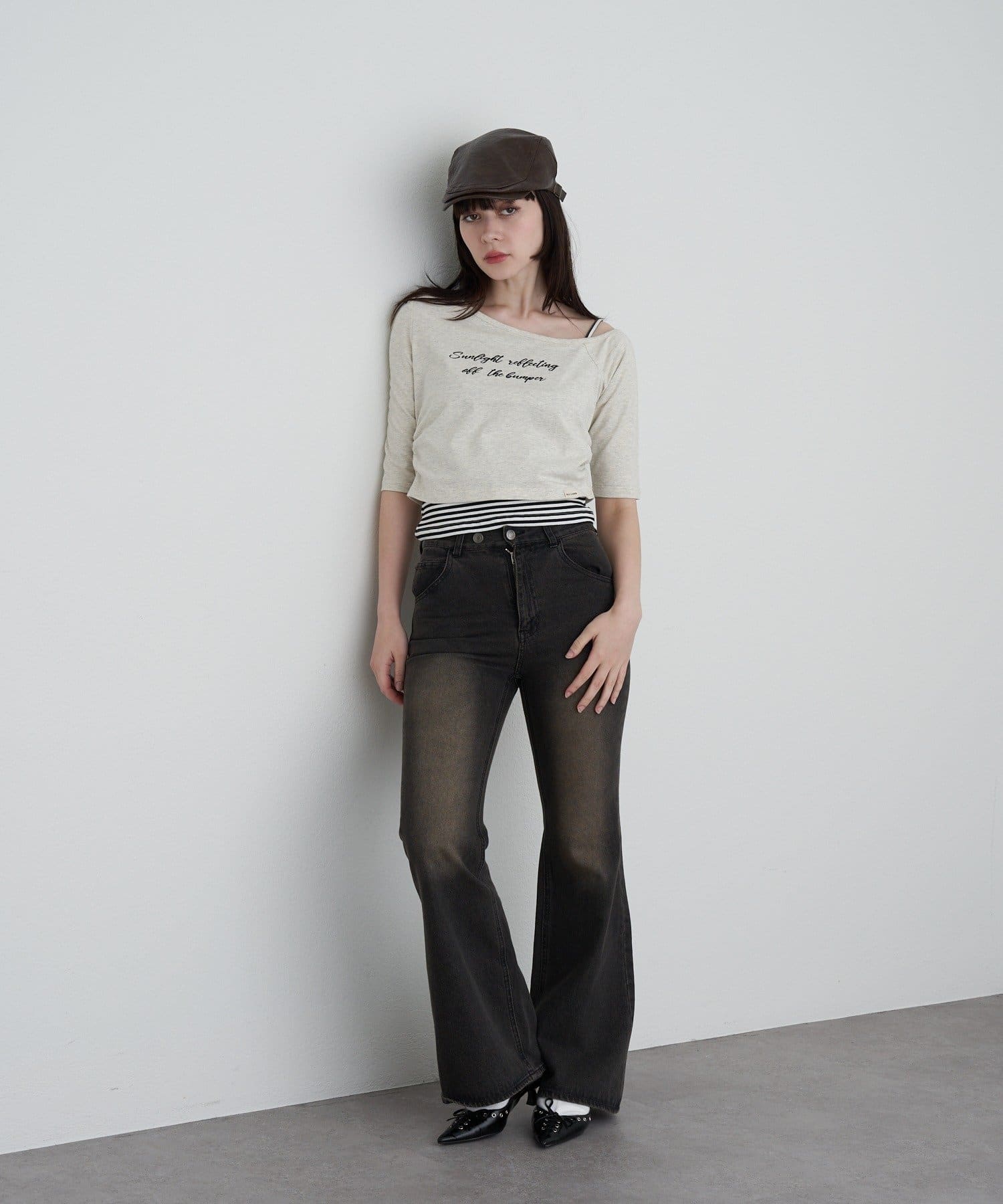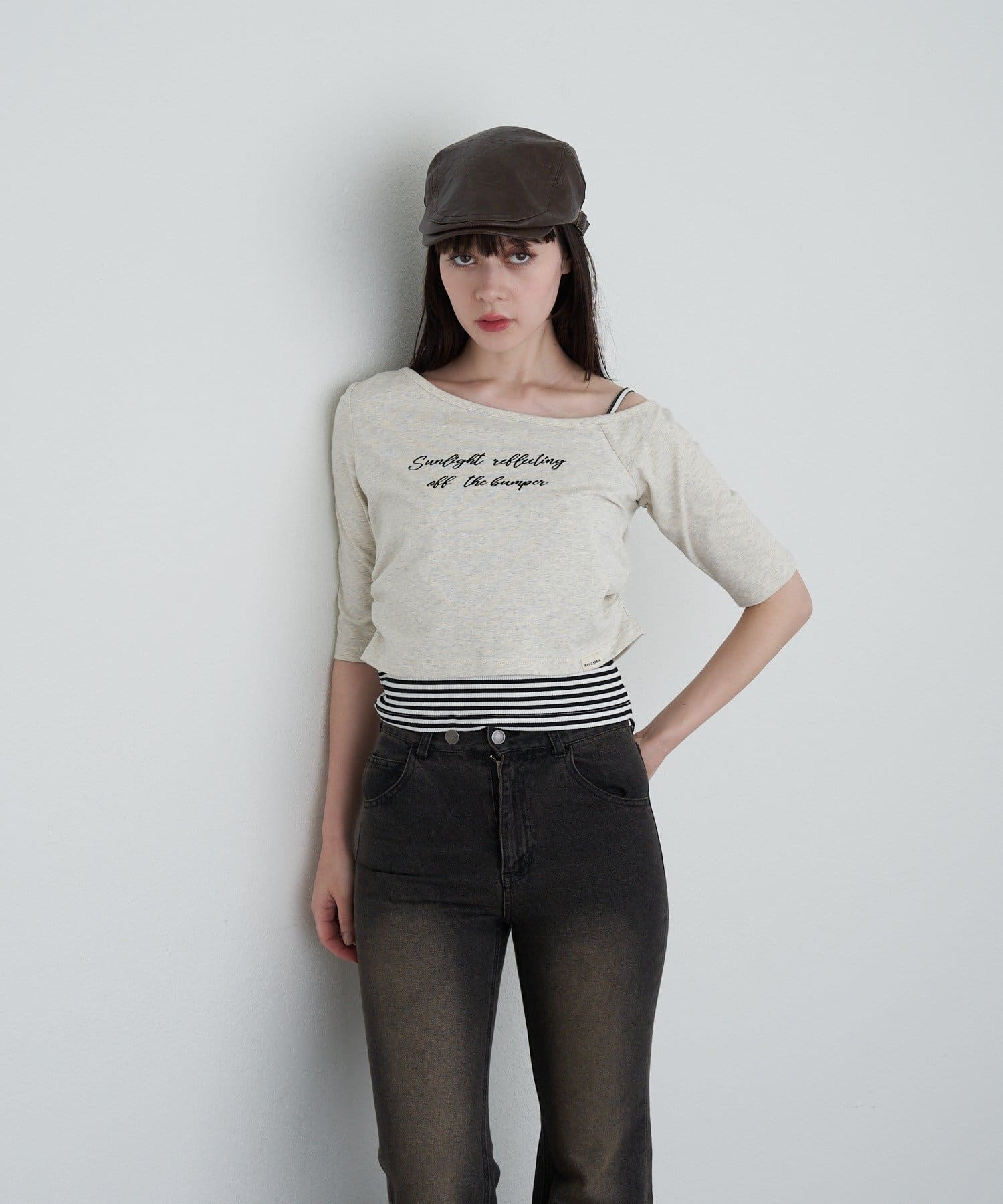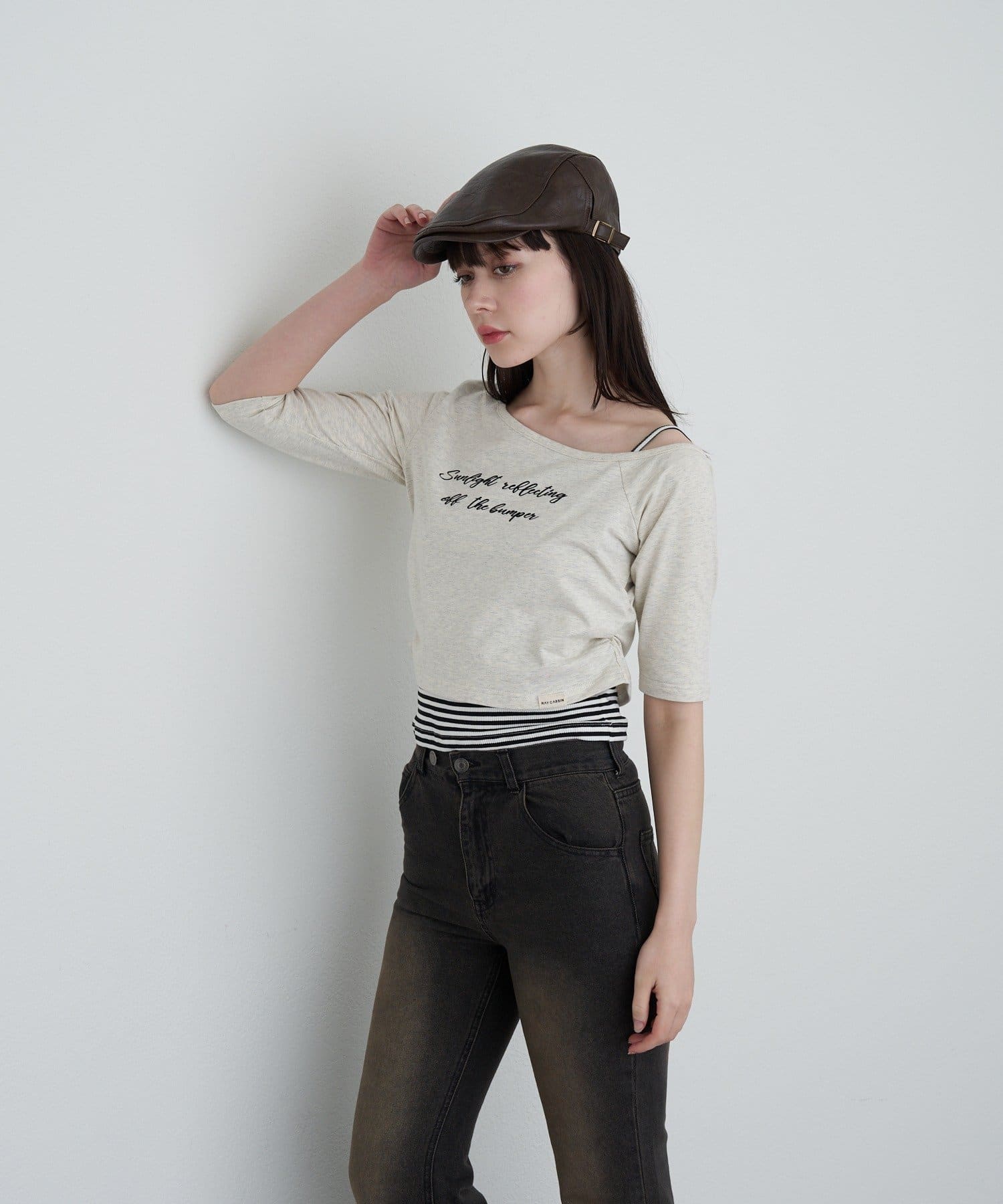 【RAY CASSIN】フロッキーロゴワンショルレイヤードTシャツ