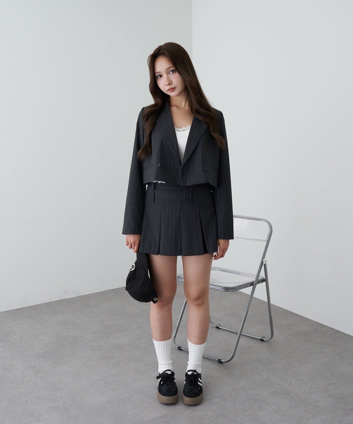 アウター / 襟付き / レイヤード / ストライプ / ミニ丈