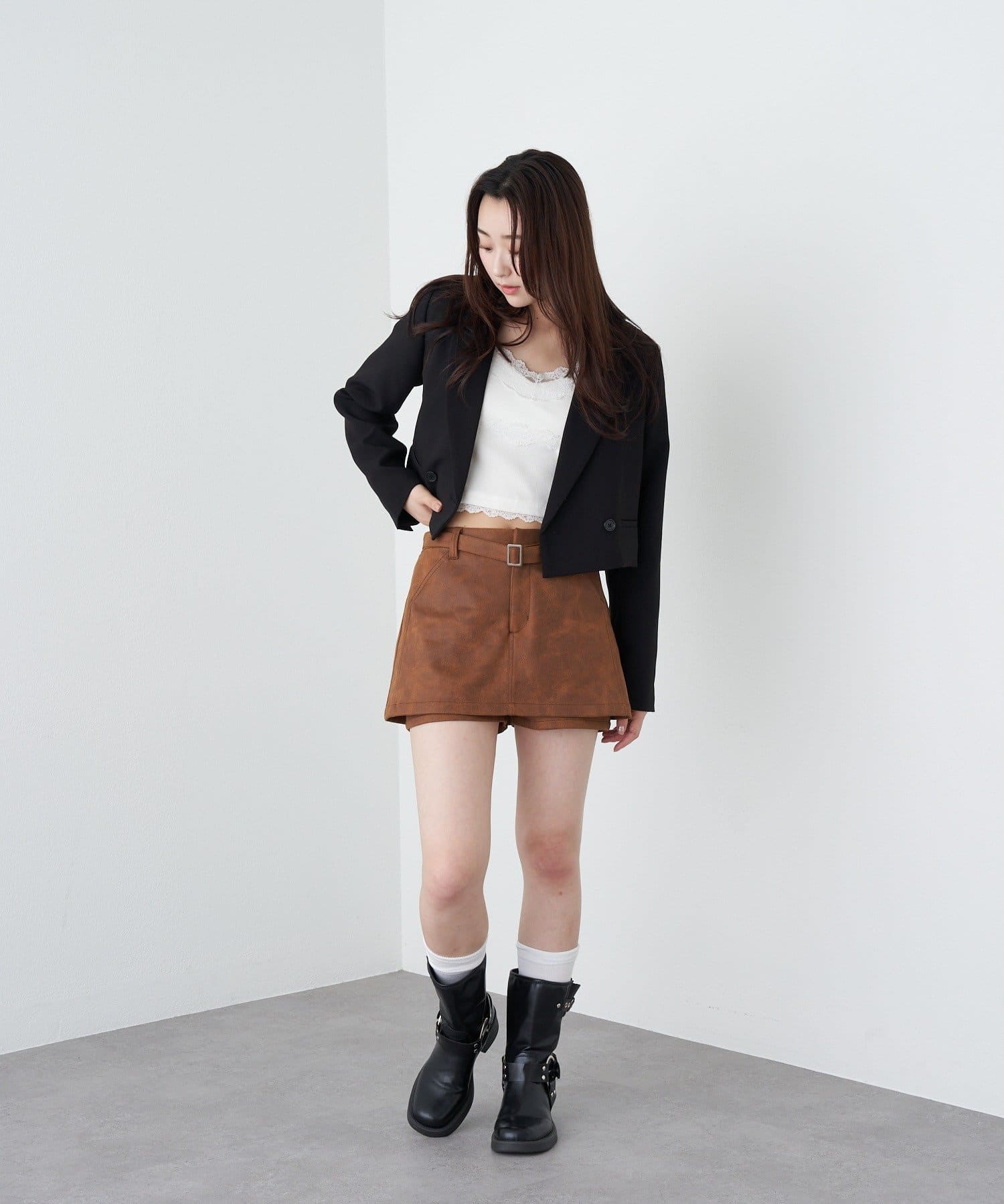 ・ミニボトムとブーツ合わせがトレンド。