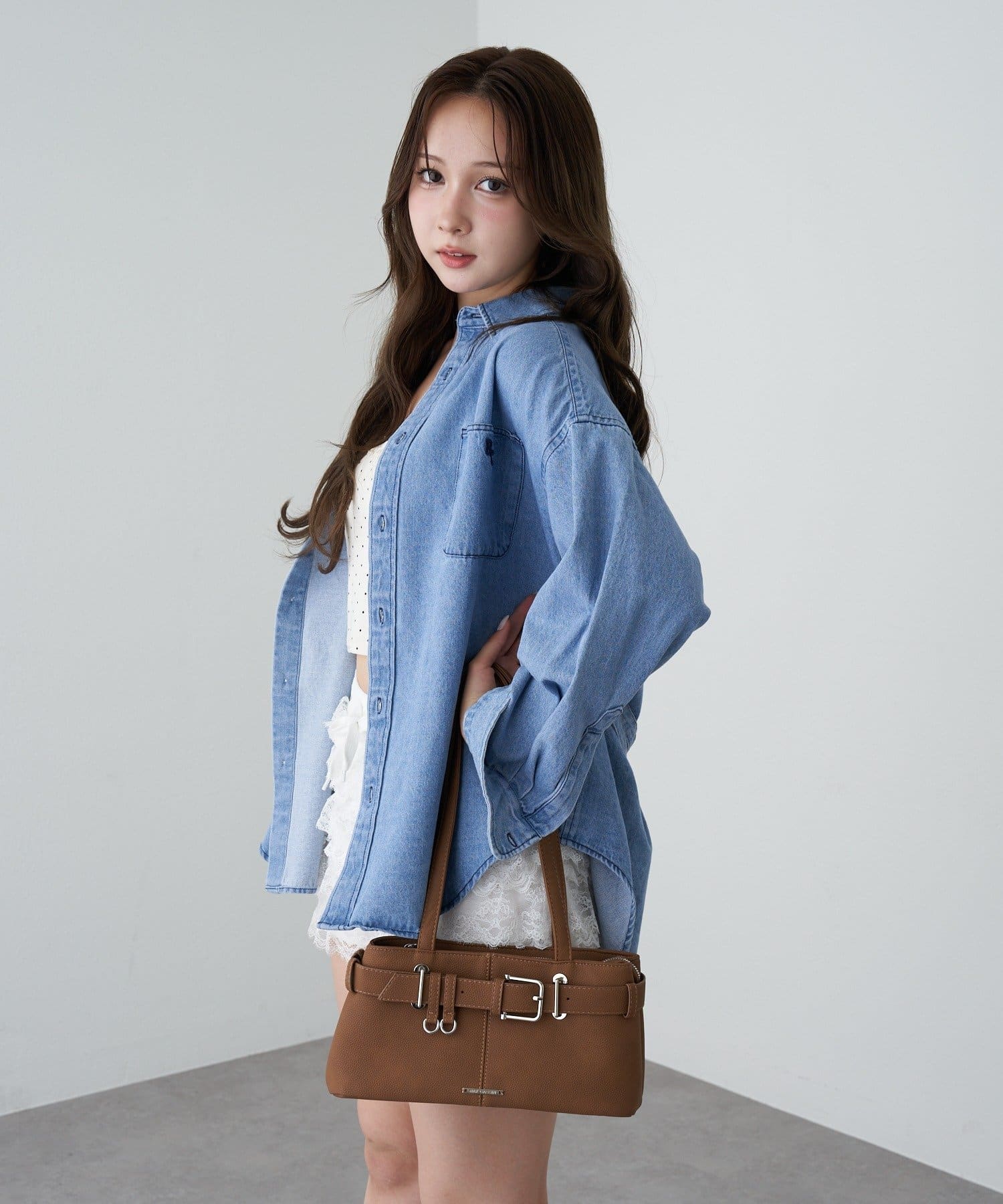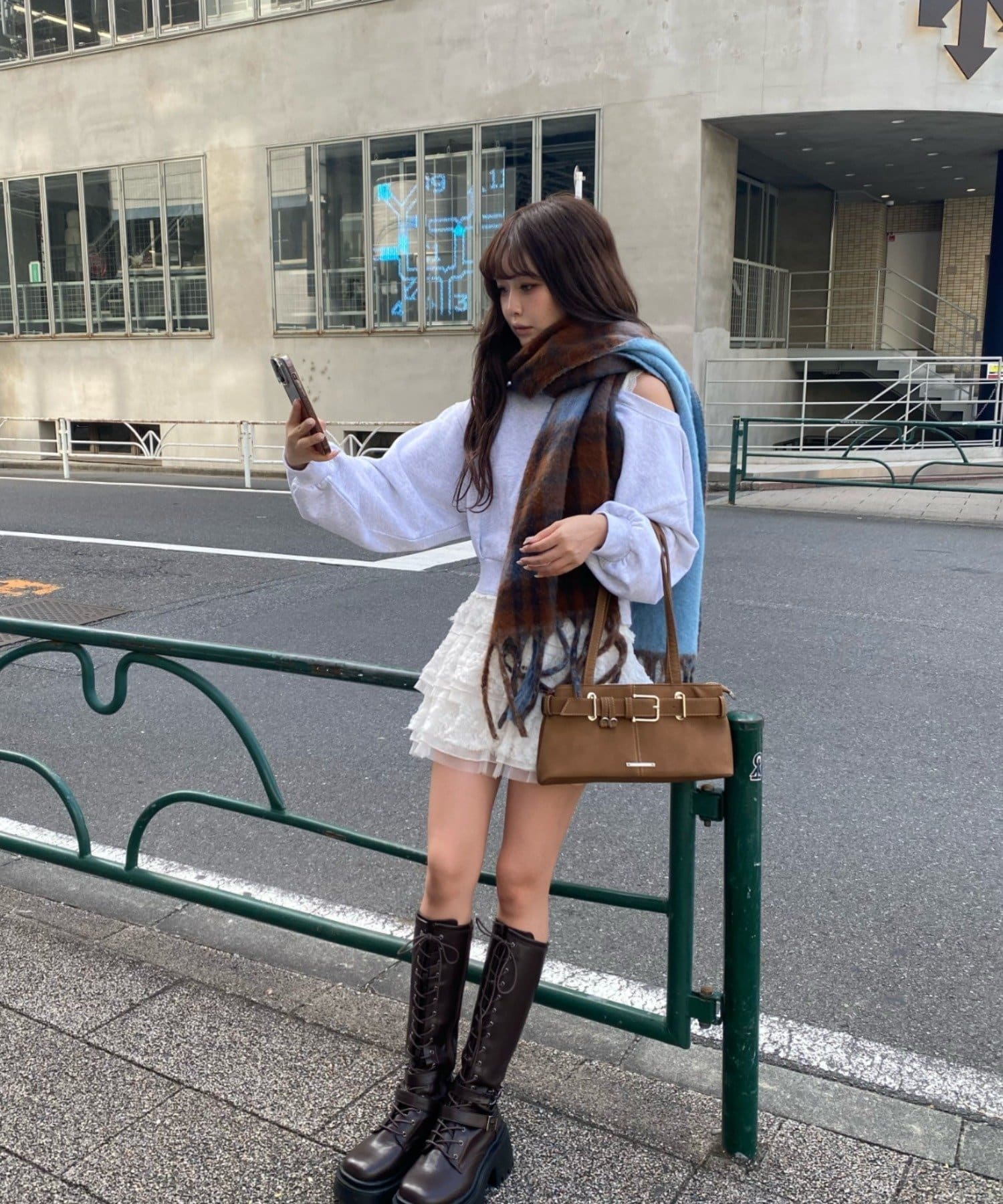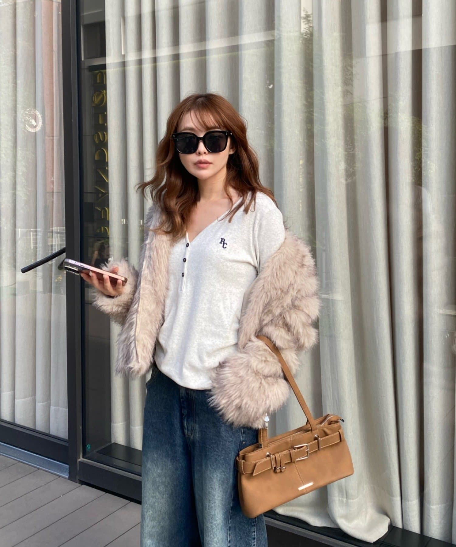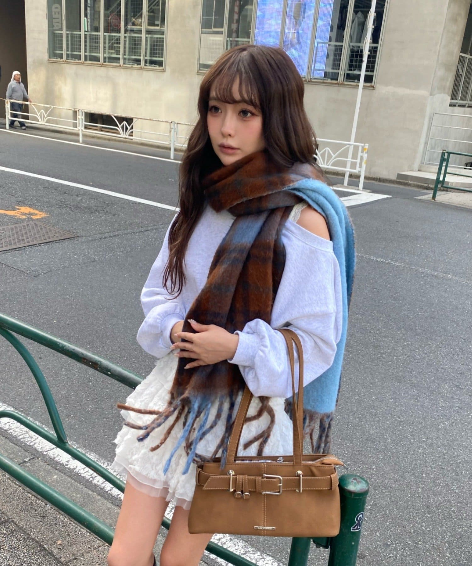 ・持ち手が長いので、アウターやニットを着用してもかさばらずに肩から掛けられる長さです。