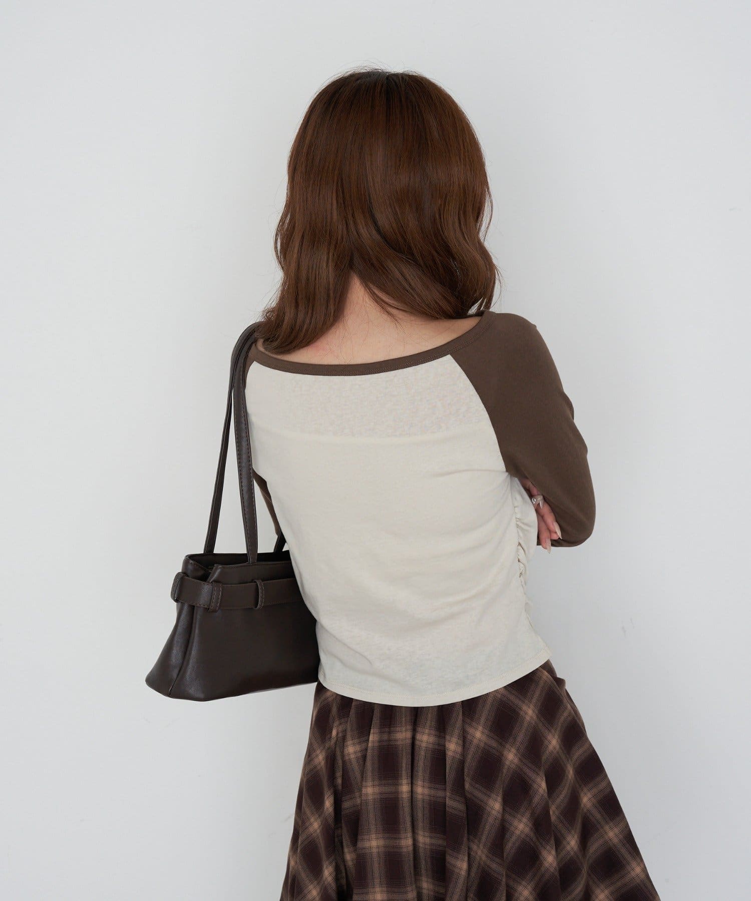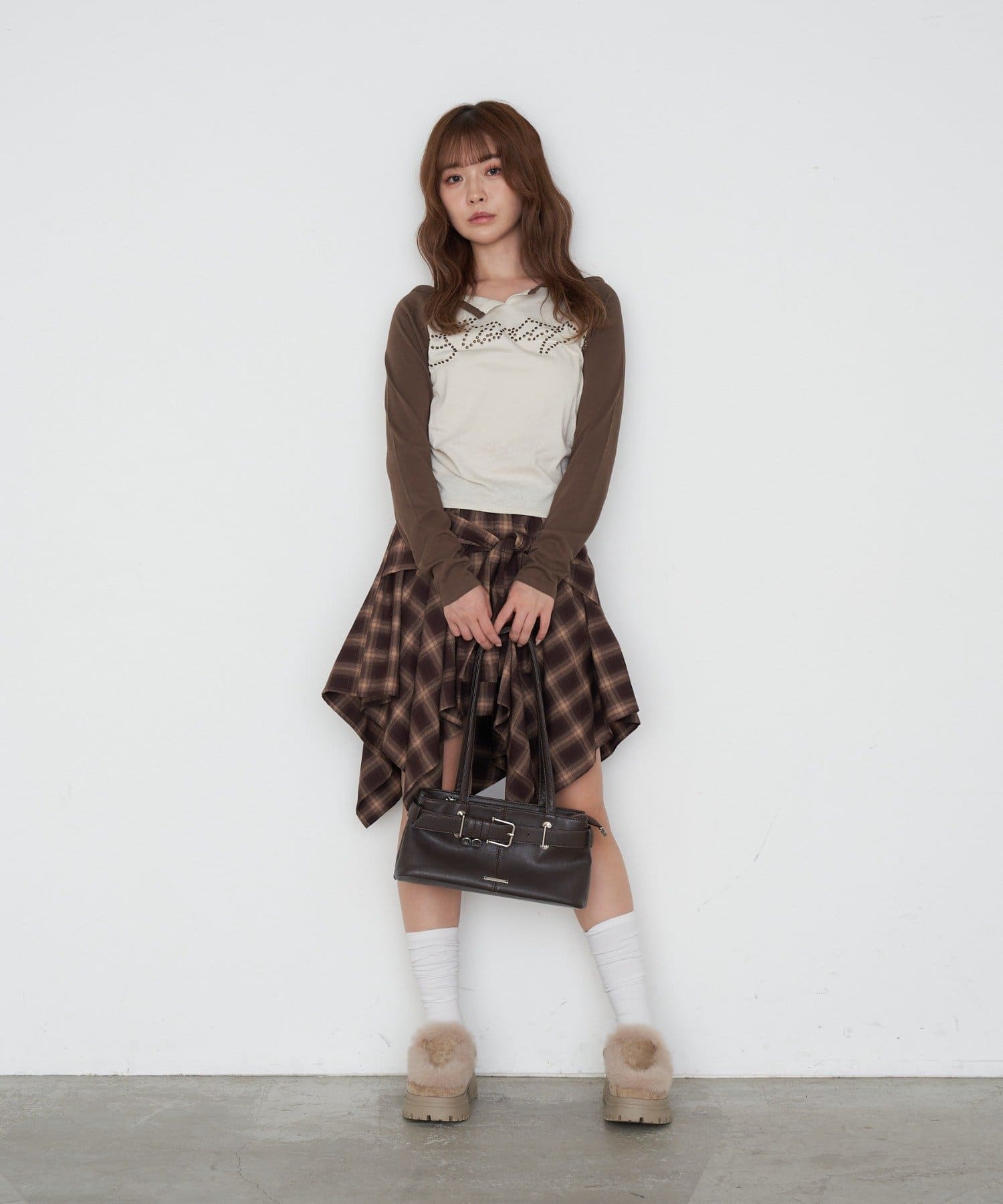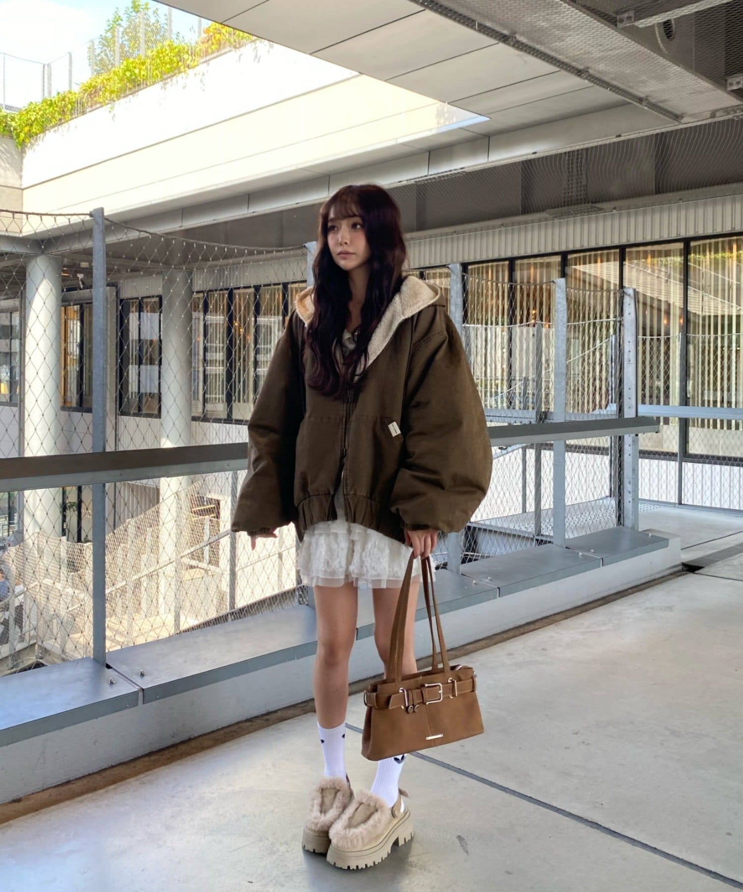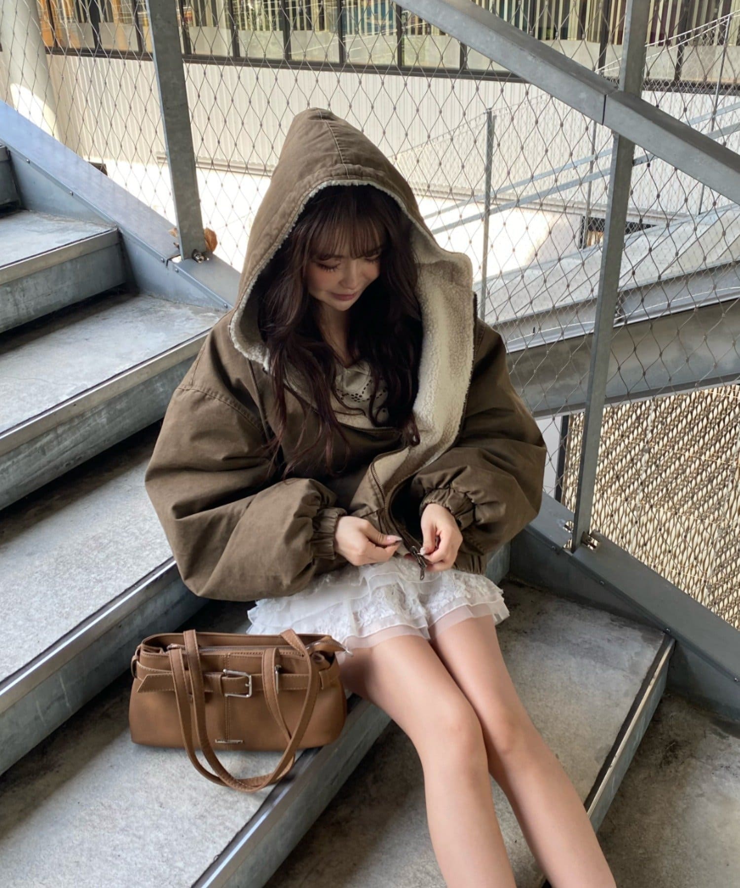 ・持ち手が長いので、アウターやニットを着用してもかさばらずに肩から掛けられる長さです。