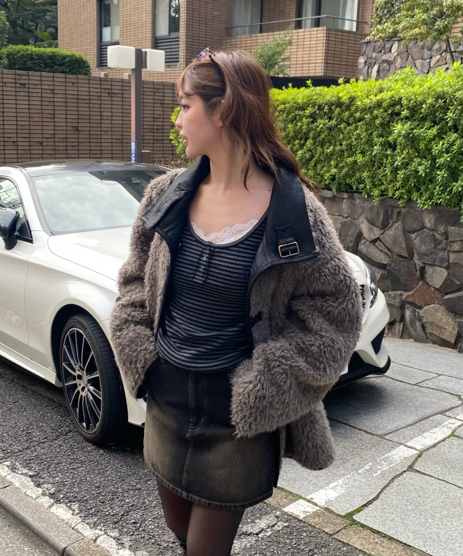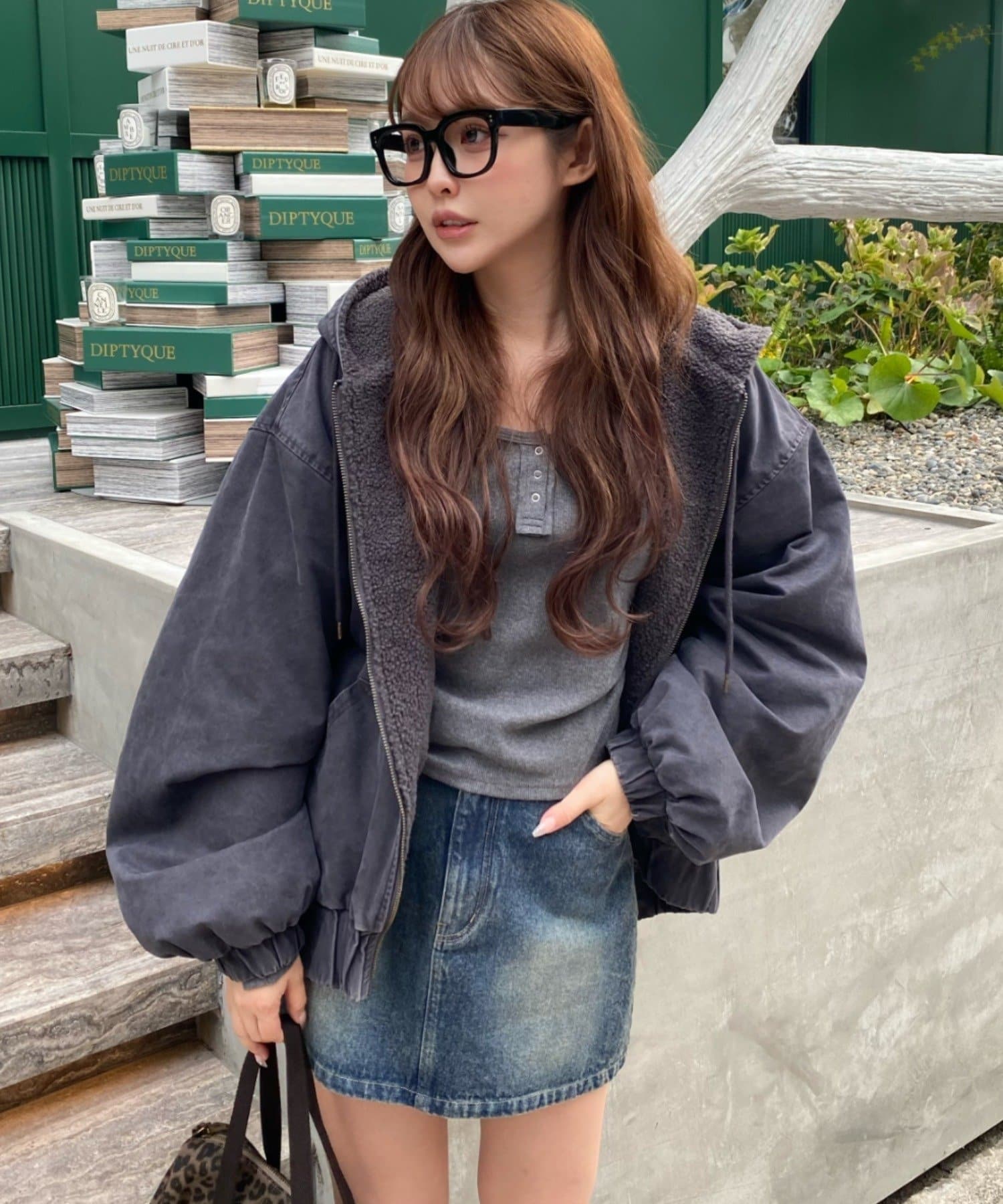 ・オーバーサイズのスウェットと合わせたカジュアルスタイル