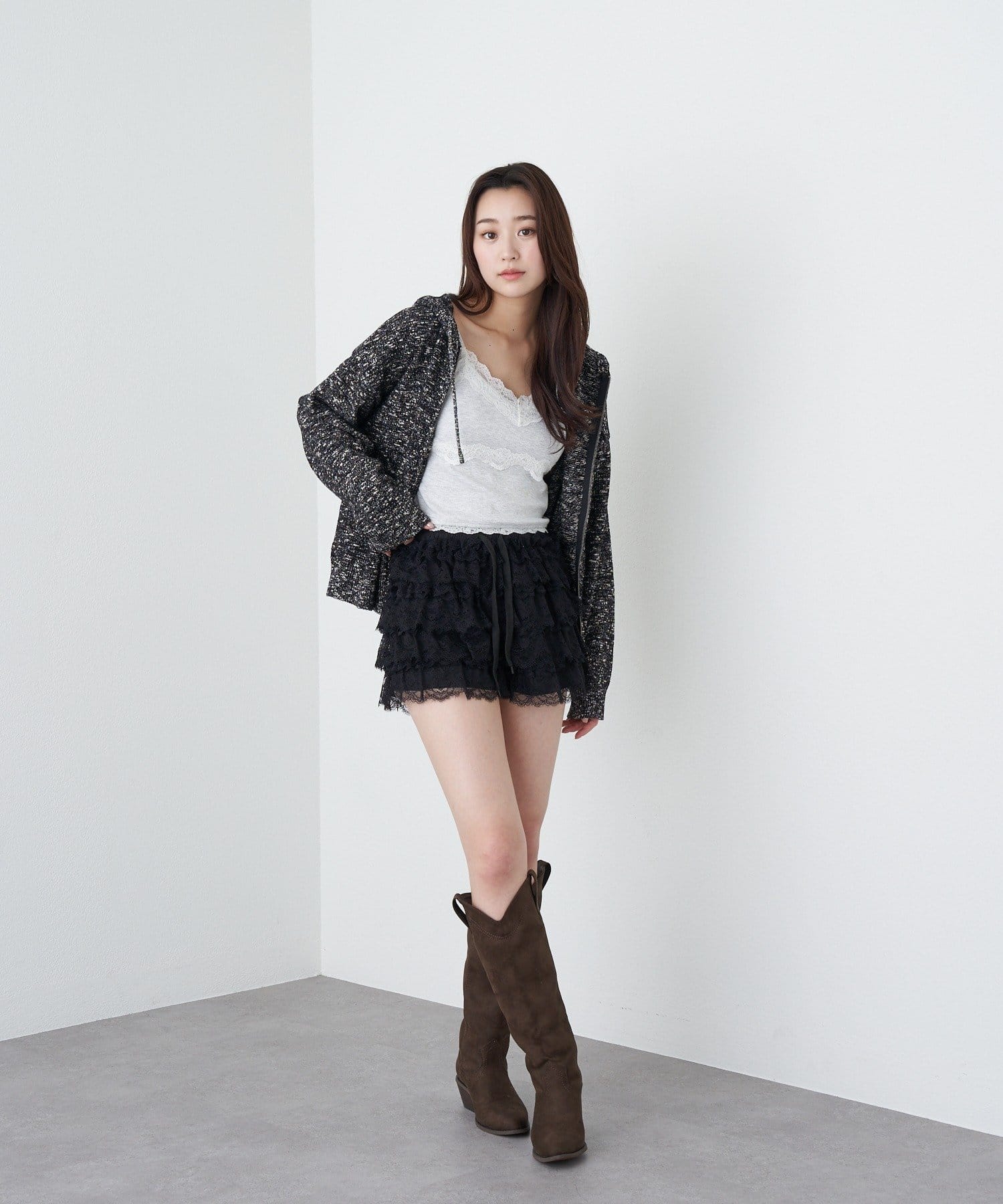 ・同素材のニットショートパンツとセットアップで着用いただけます。