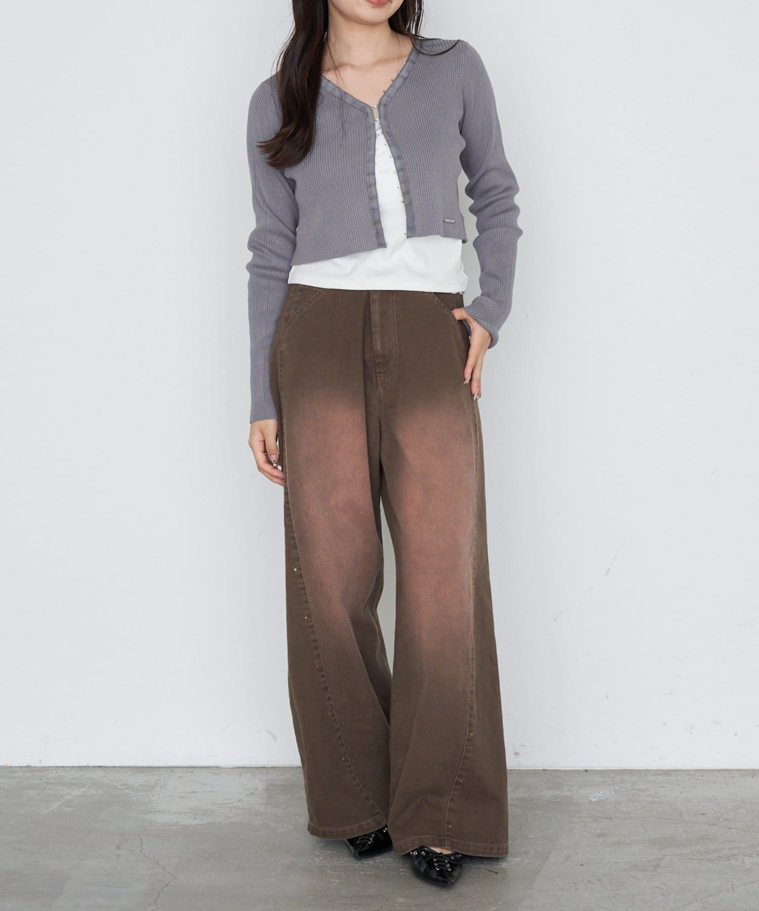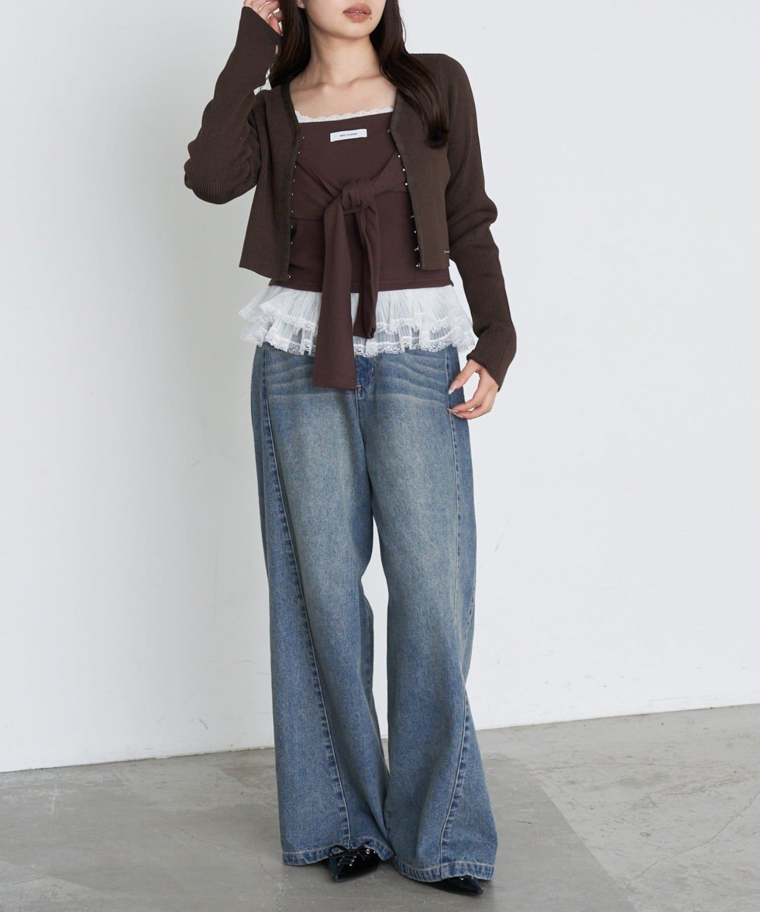 ・ワイドデニムやスウェットなどのルーズなアイテムと合わせてメリハリのあるスタイリングがオススメ。