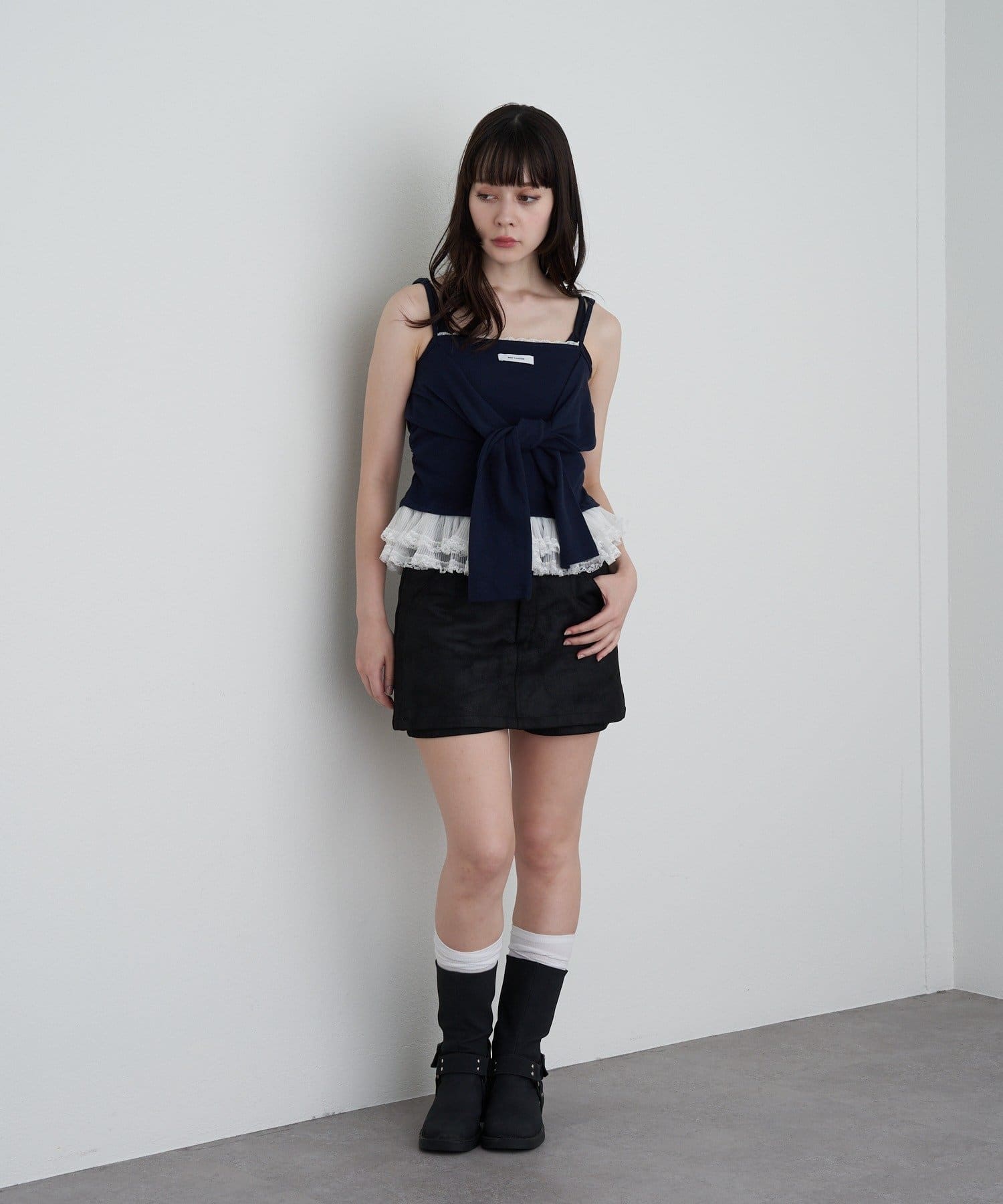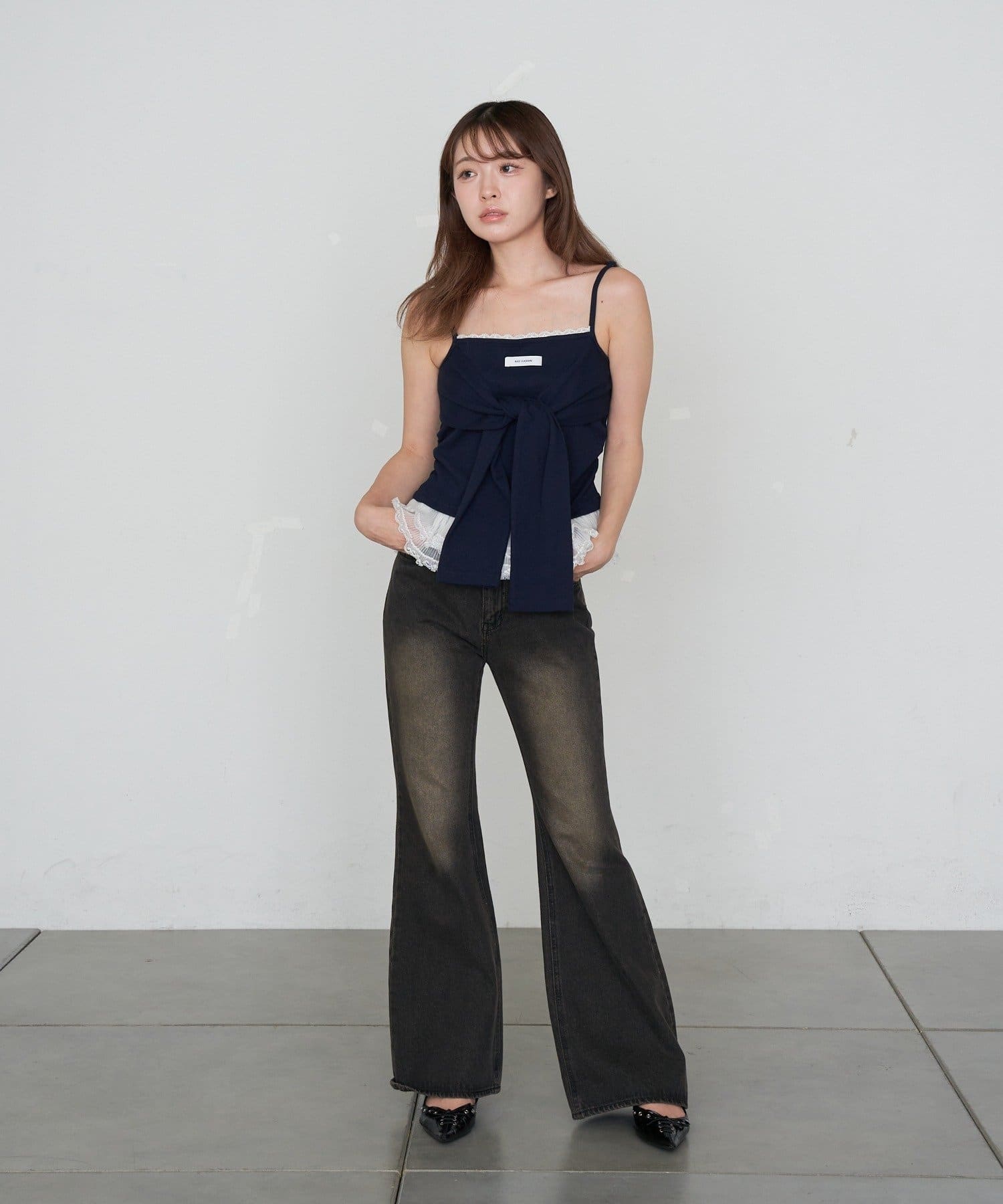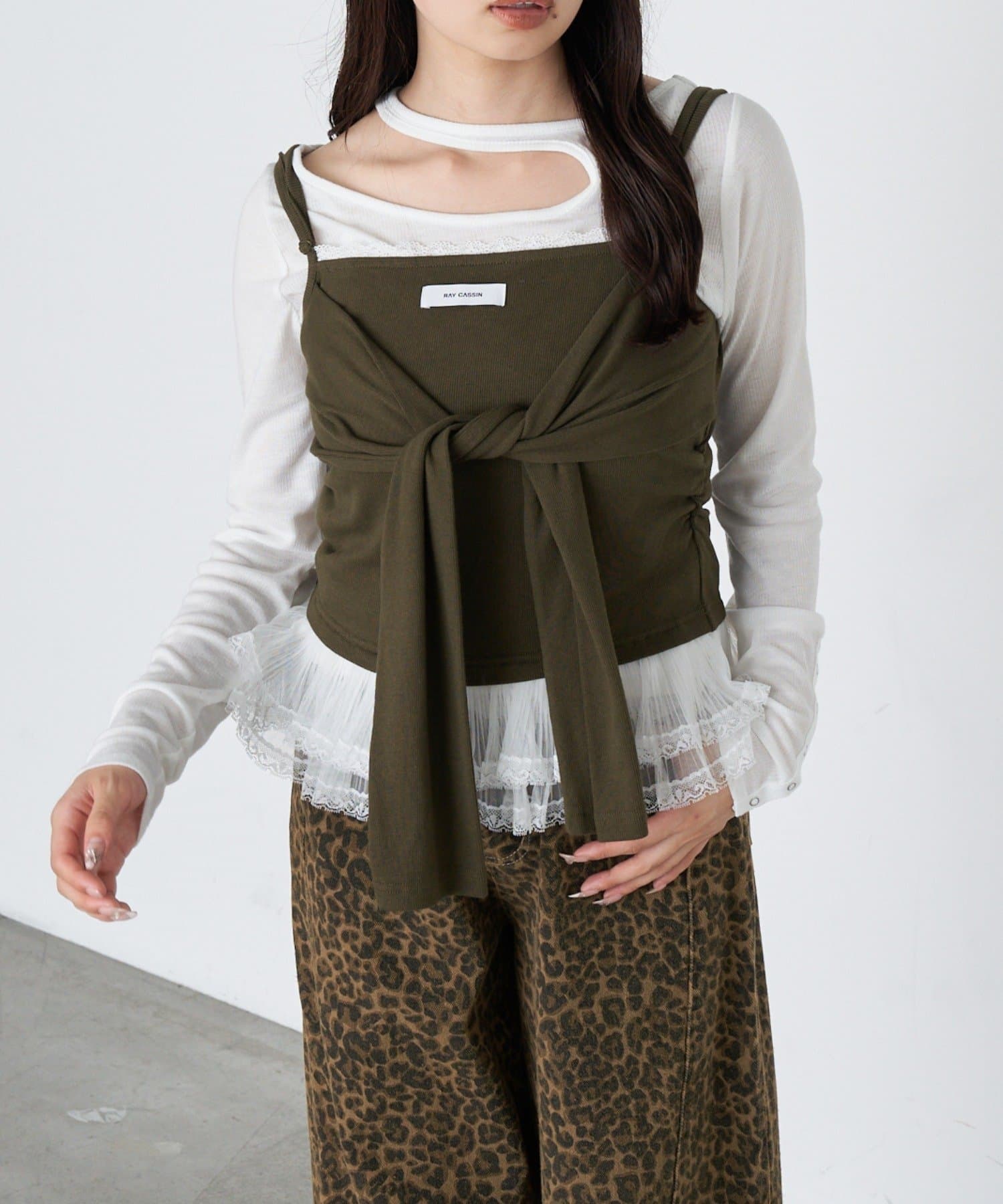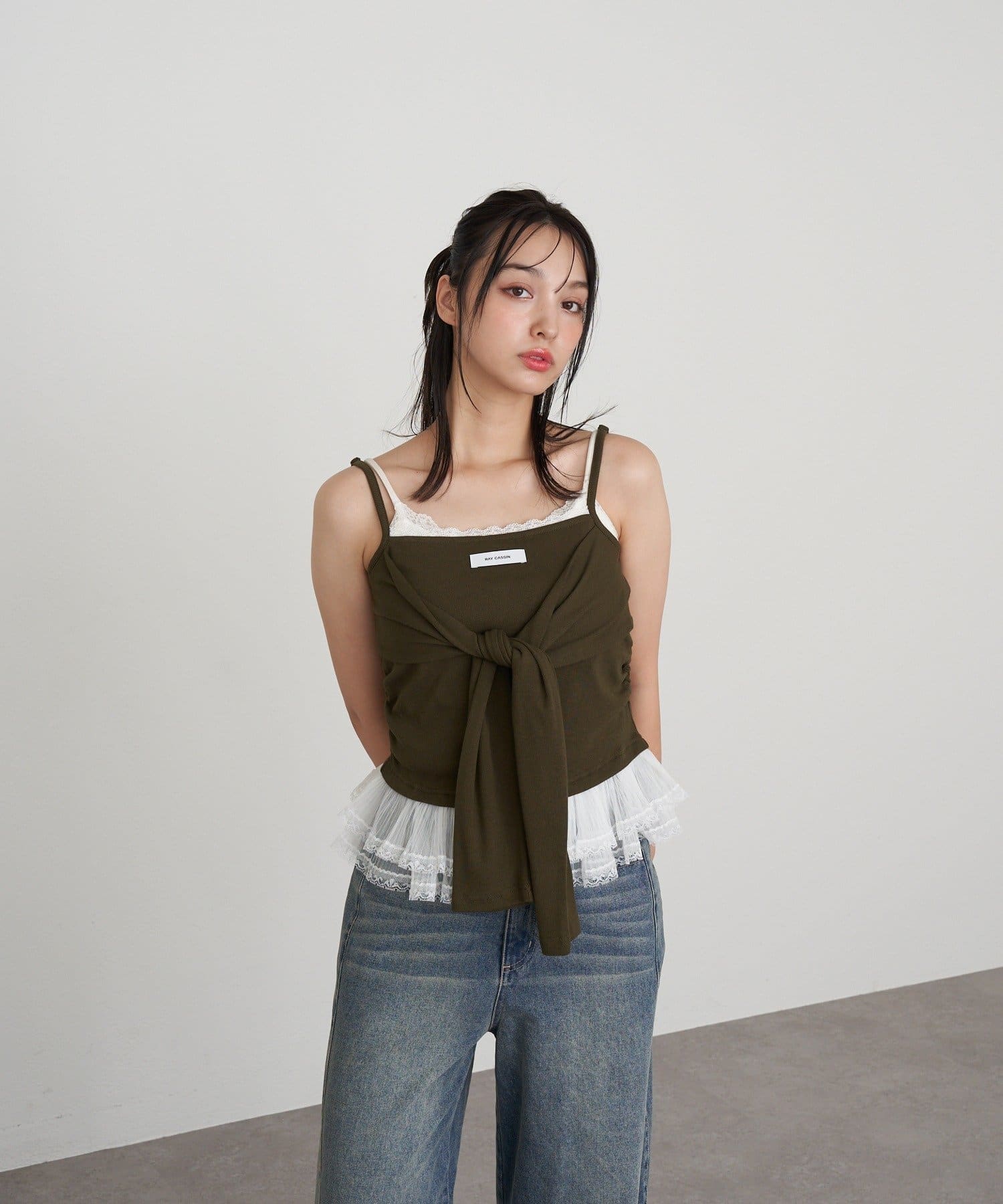 レースキャミと重ねて胸元からもレースが見えるように着るのがかわいいです🤍