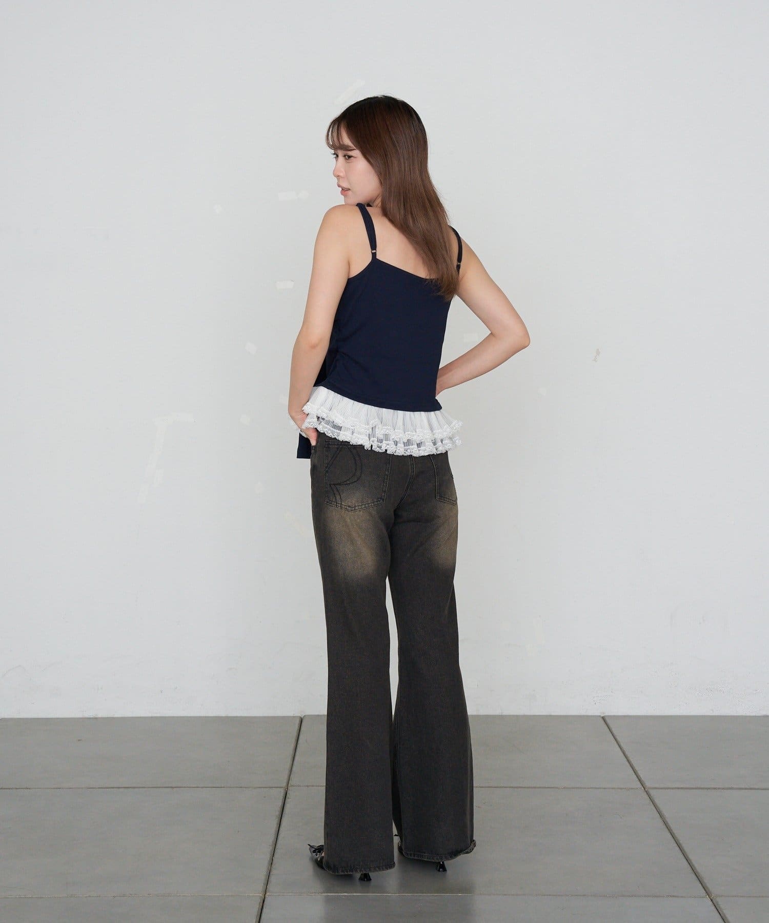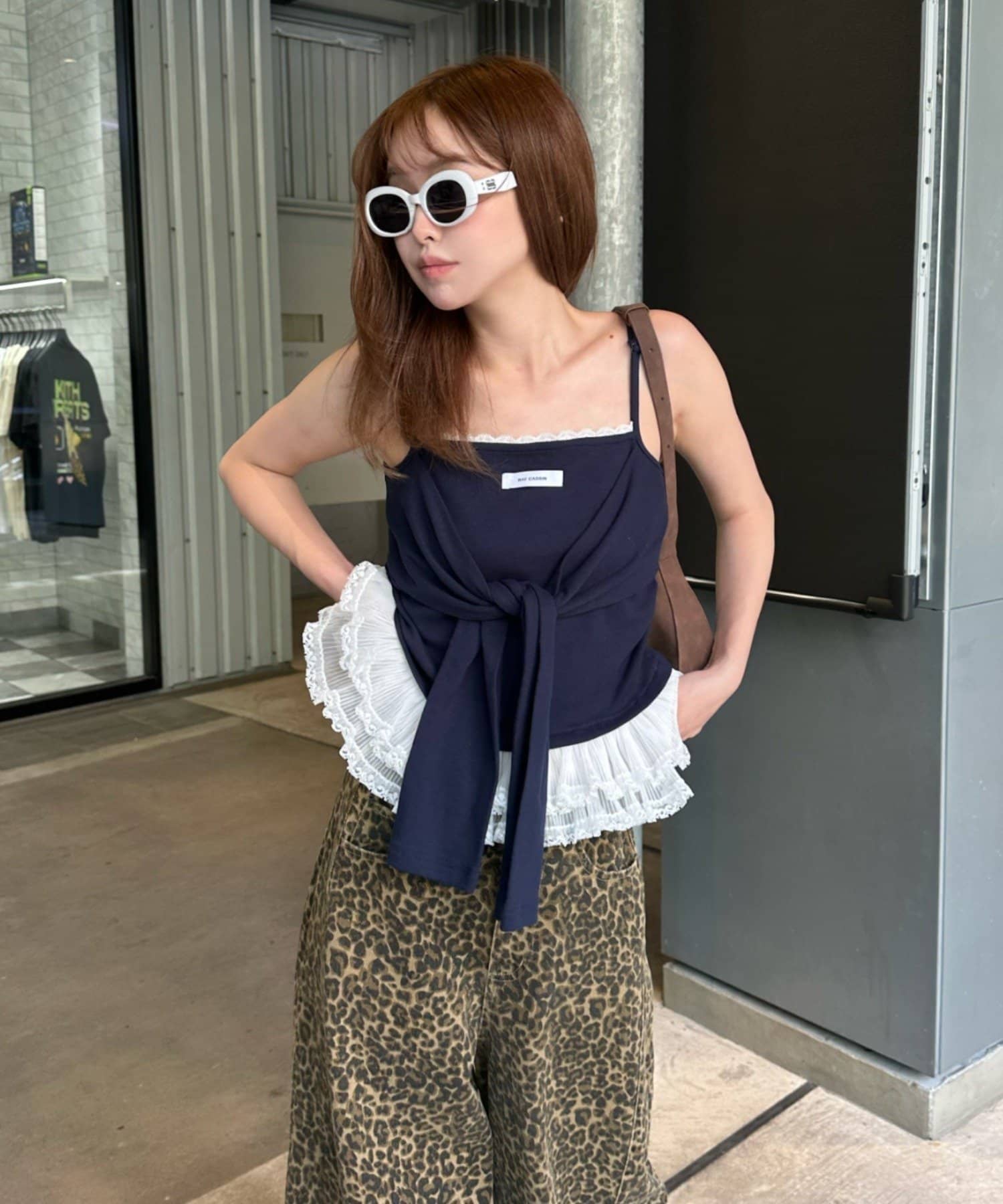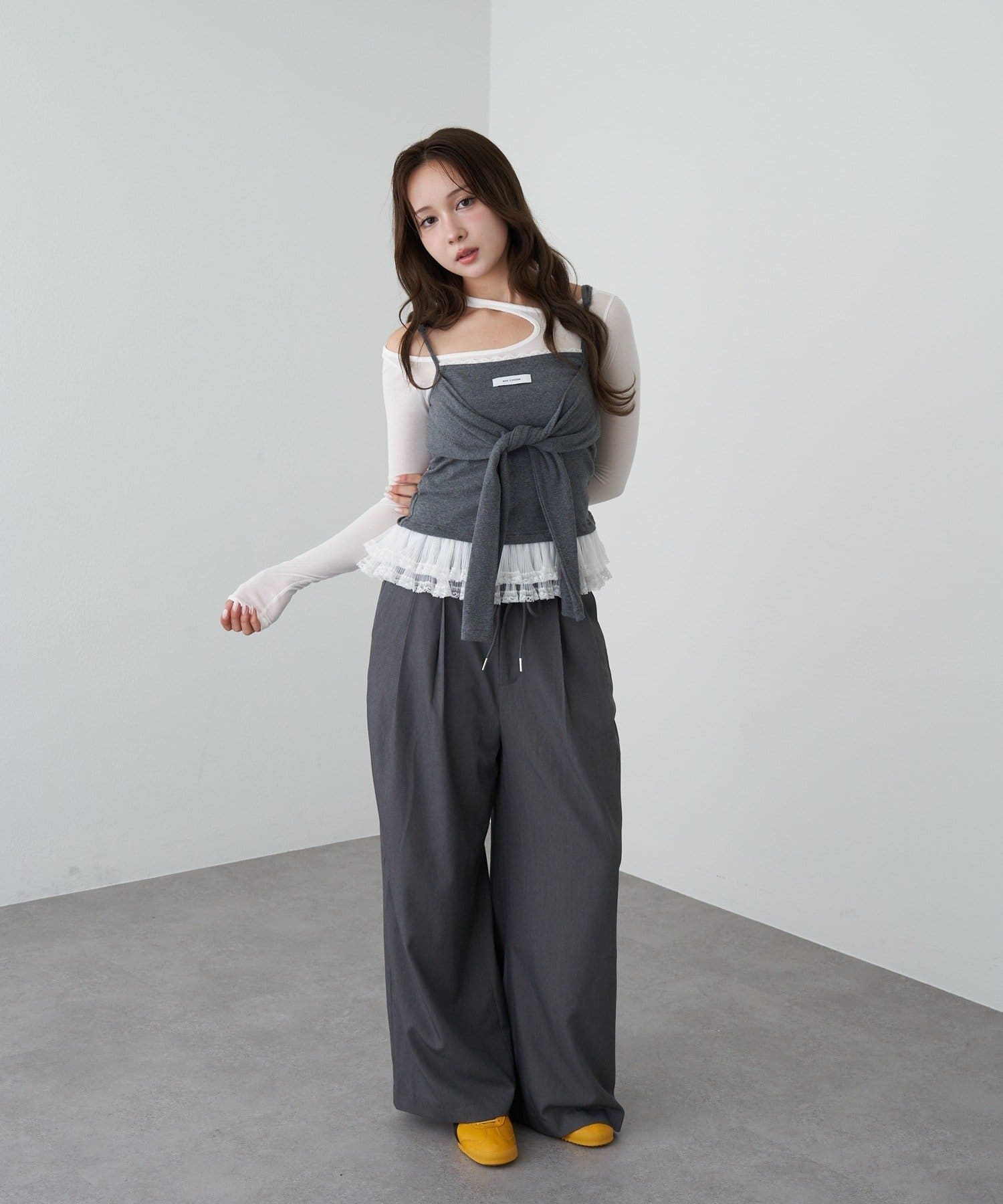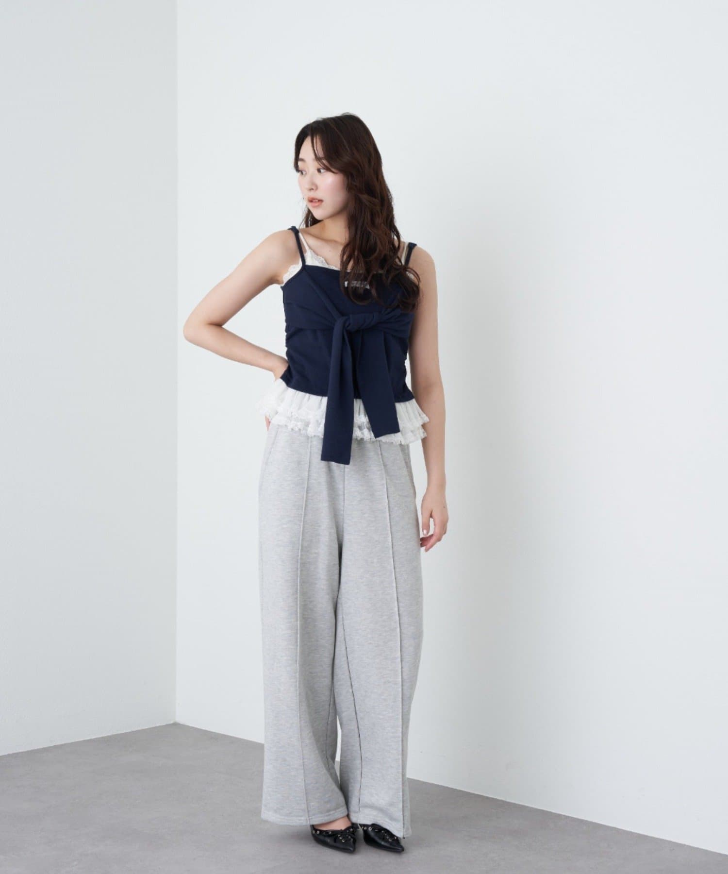 レースキャミと重ねて胸元からもレースが見えるように着るのがかわいいです🤍