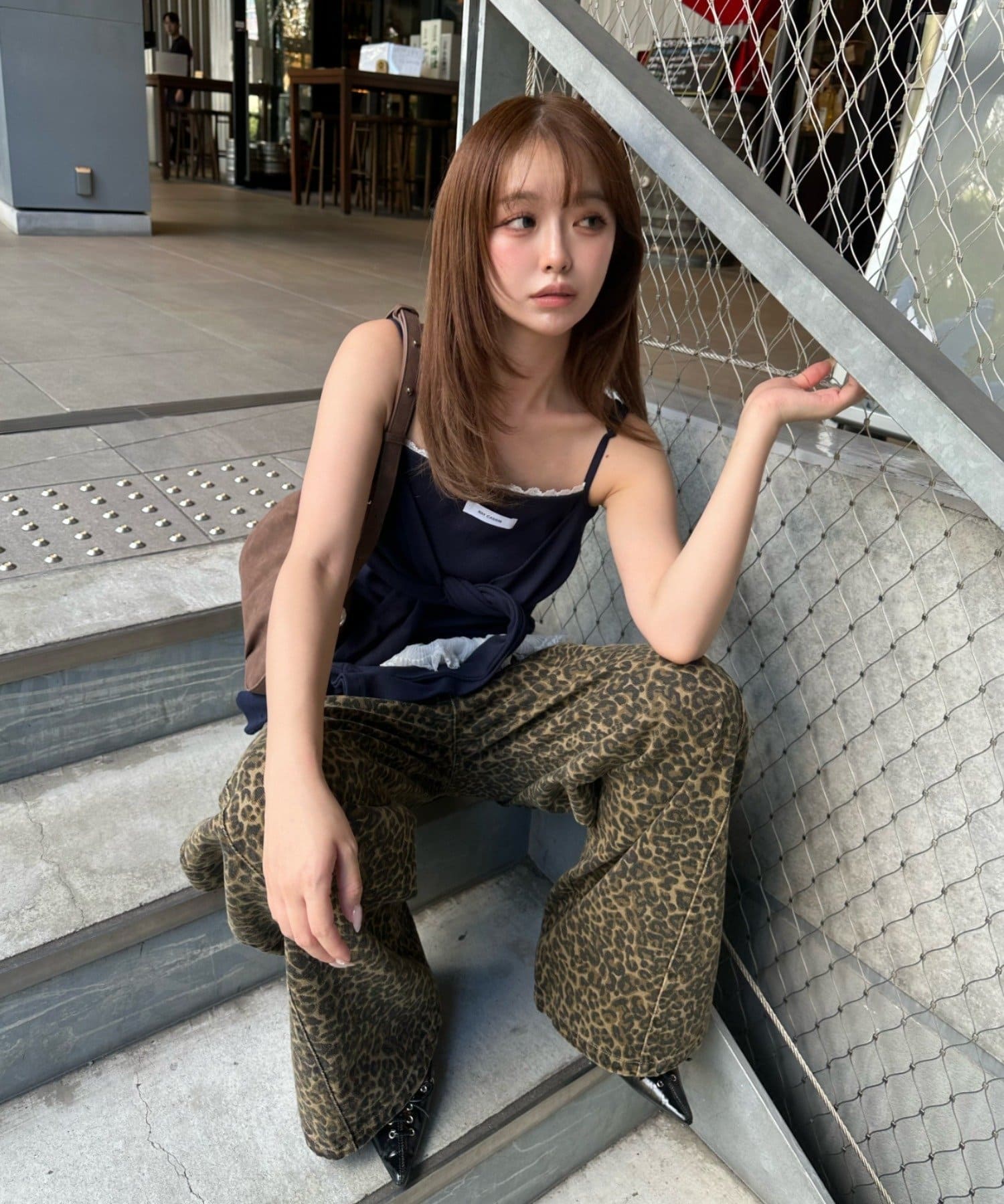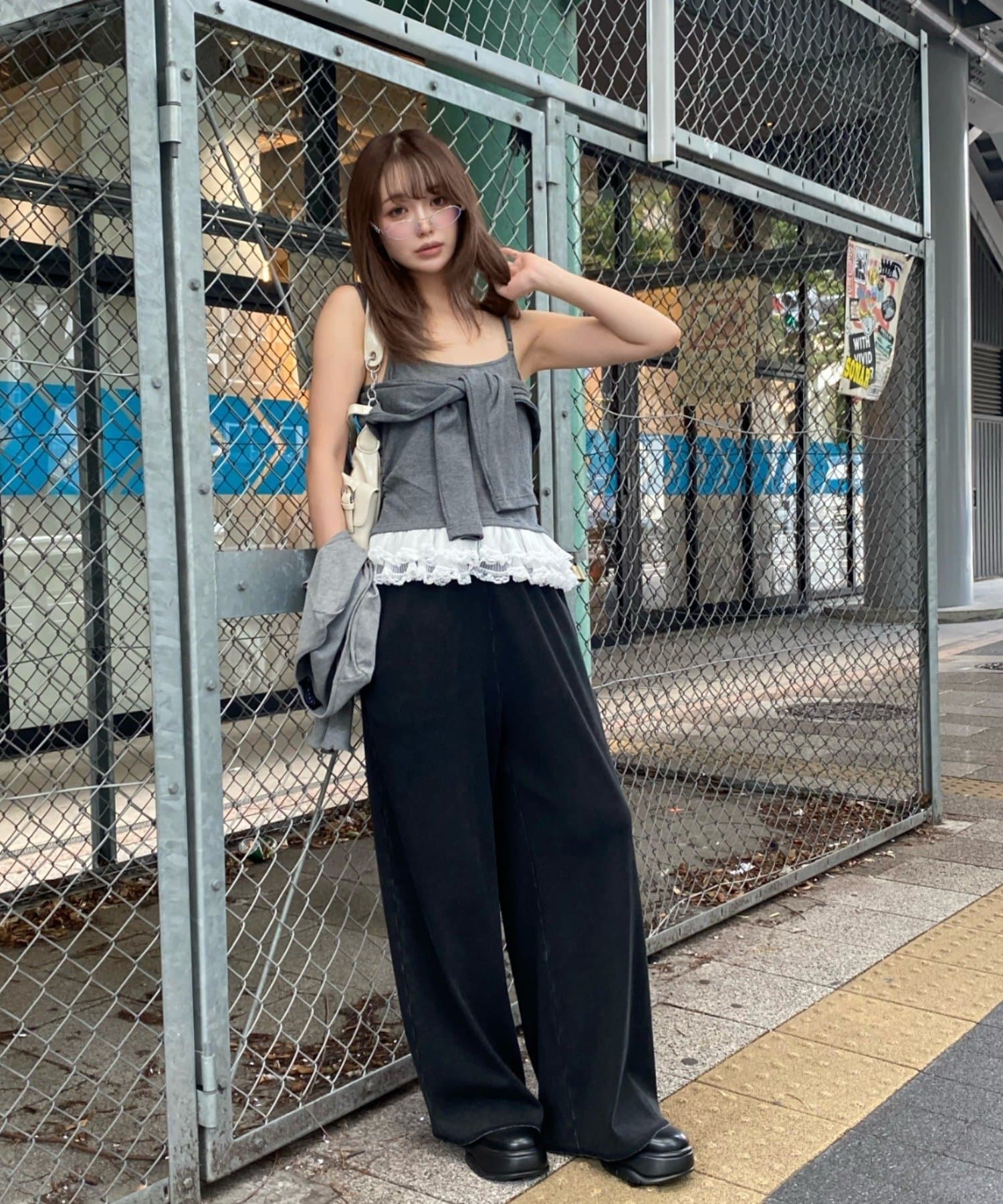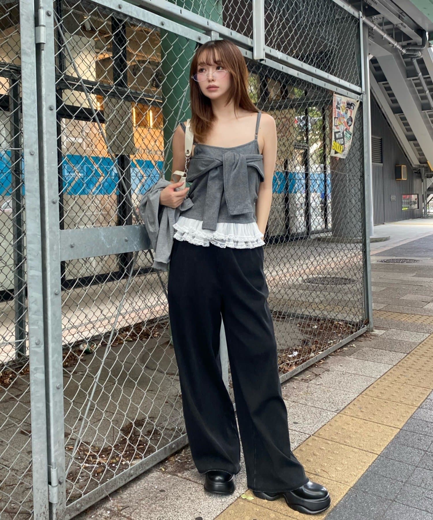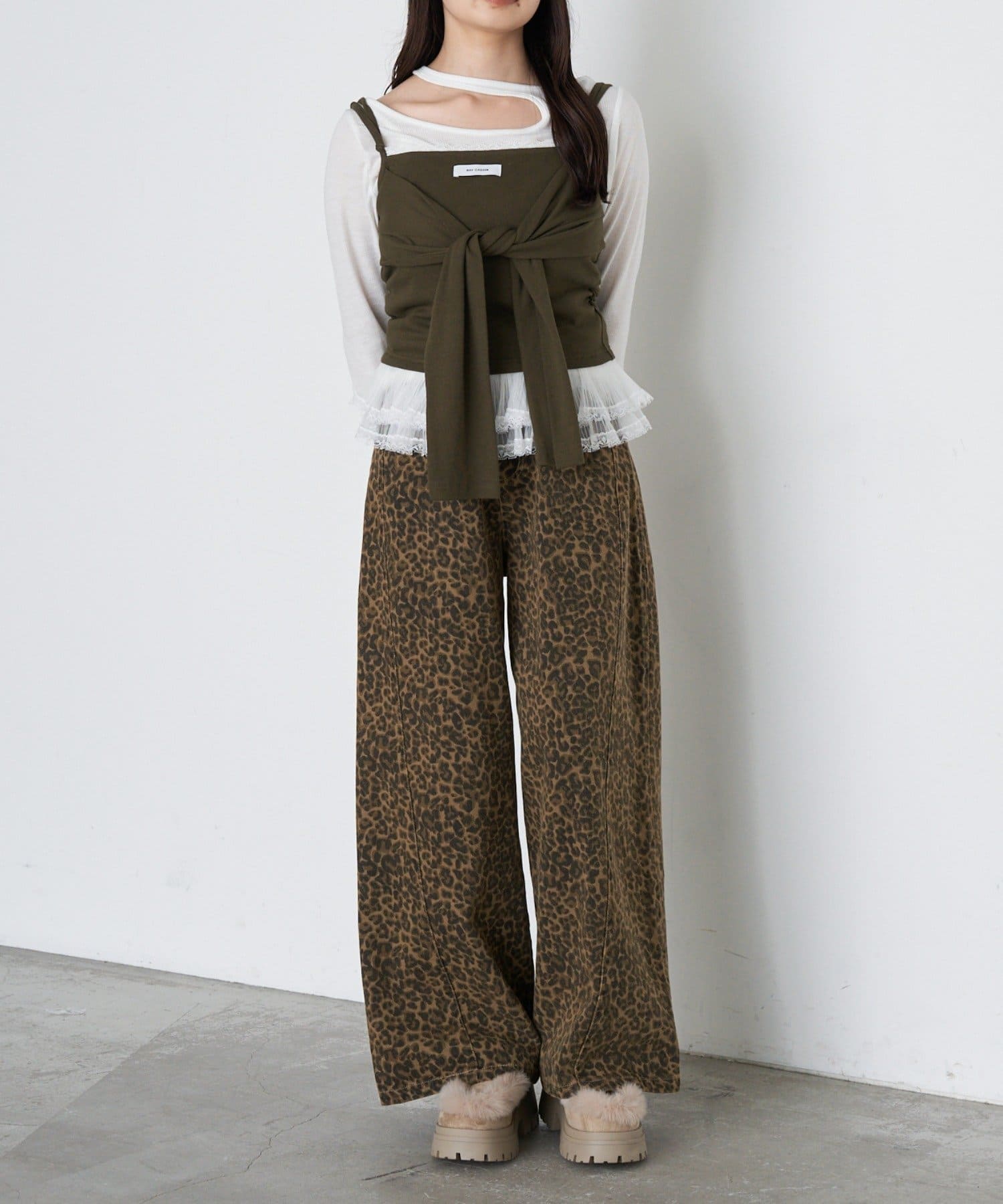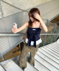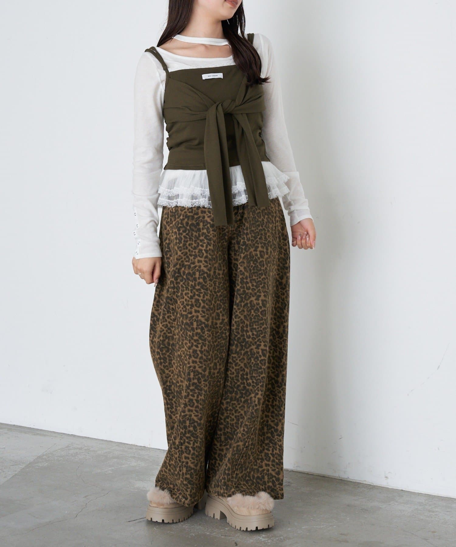 レースキャミと重ねて胸元からもレースが見えるように着るのがかわいいです🤍
