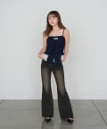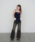 【ウエスト調整可】フレアデニムパンツ