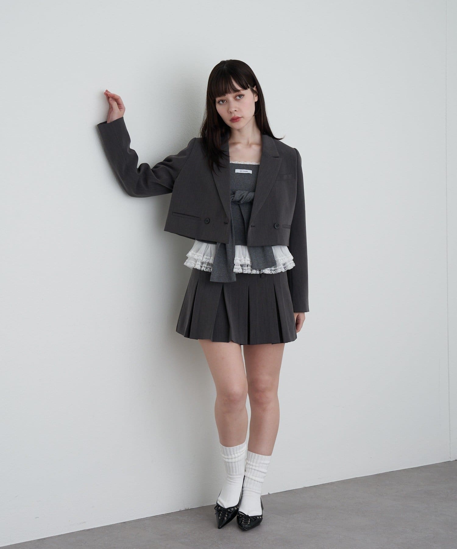 ・甘めが好きな方は、ミニ丈を合わせたスタイリングも