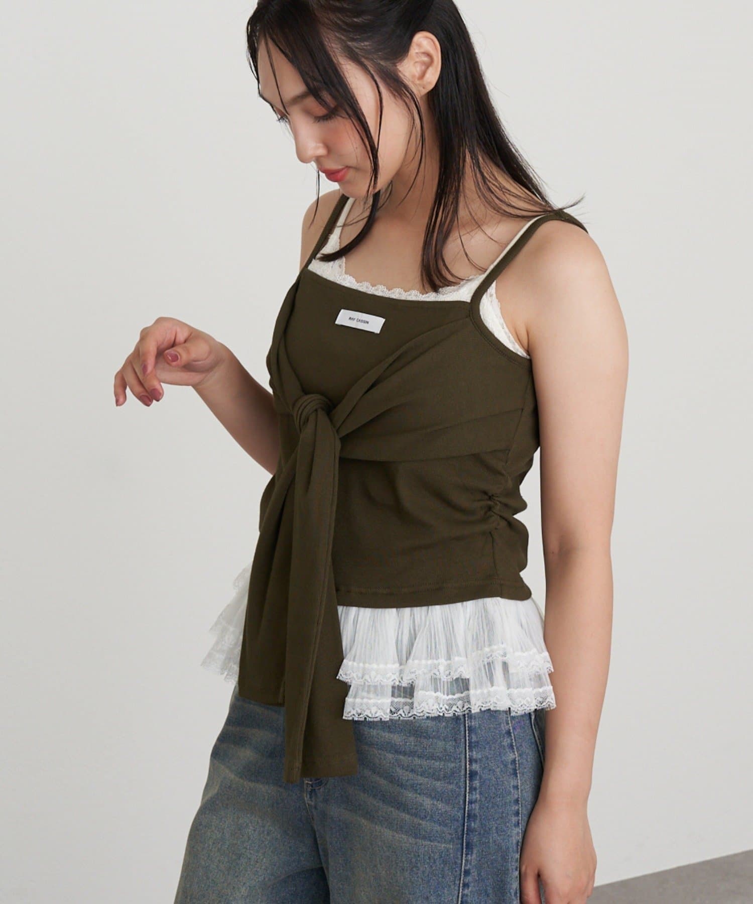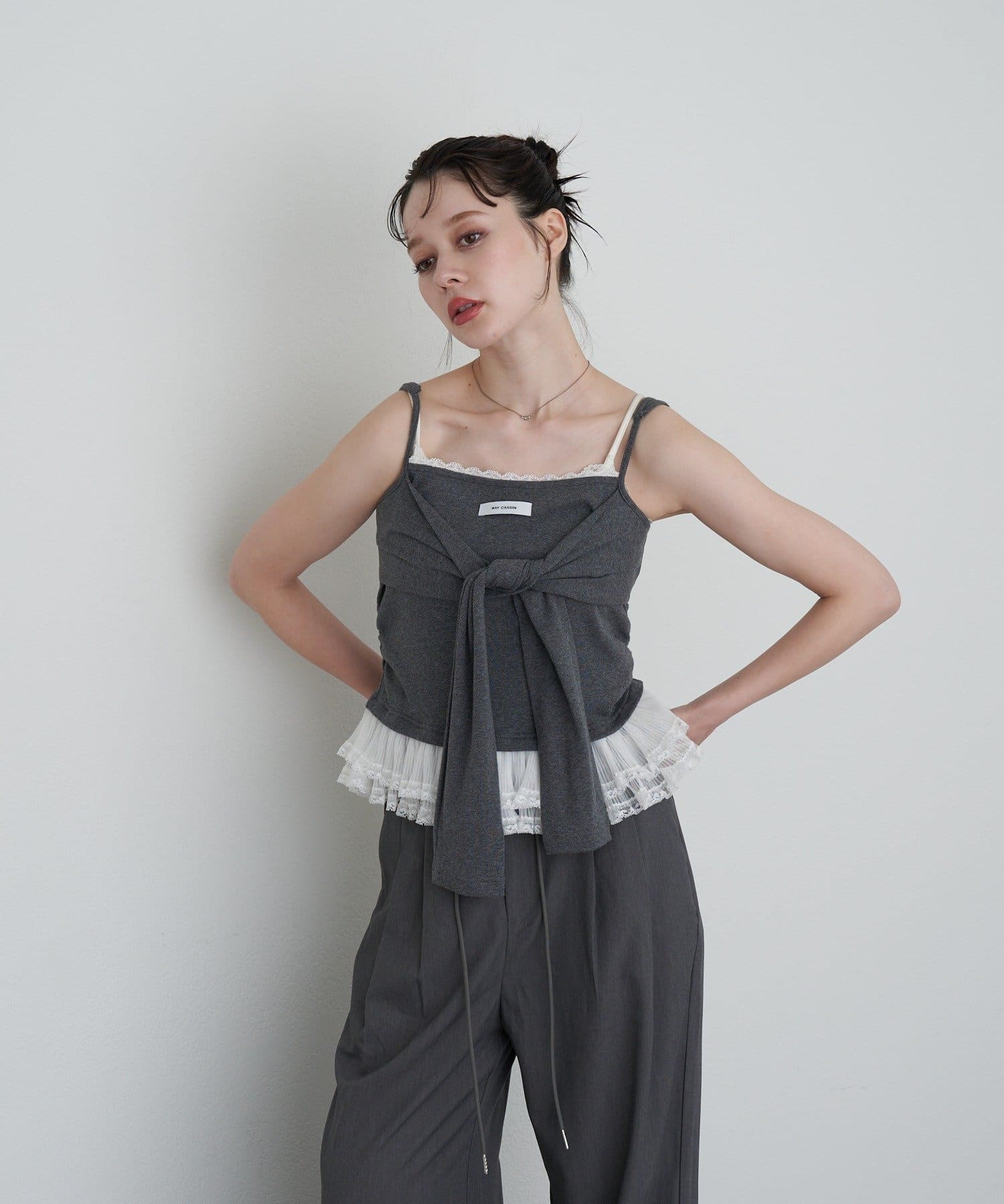レイヤード / リボン / レース / フリル / キャミソール / ノースリーブ