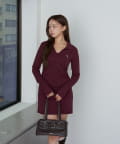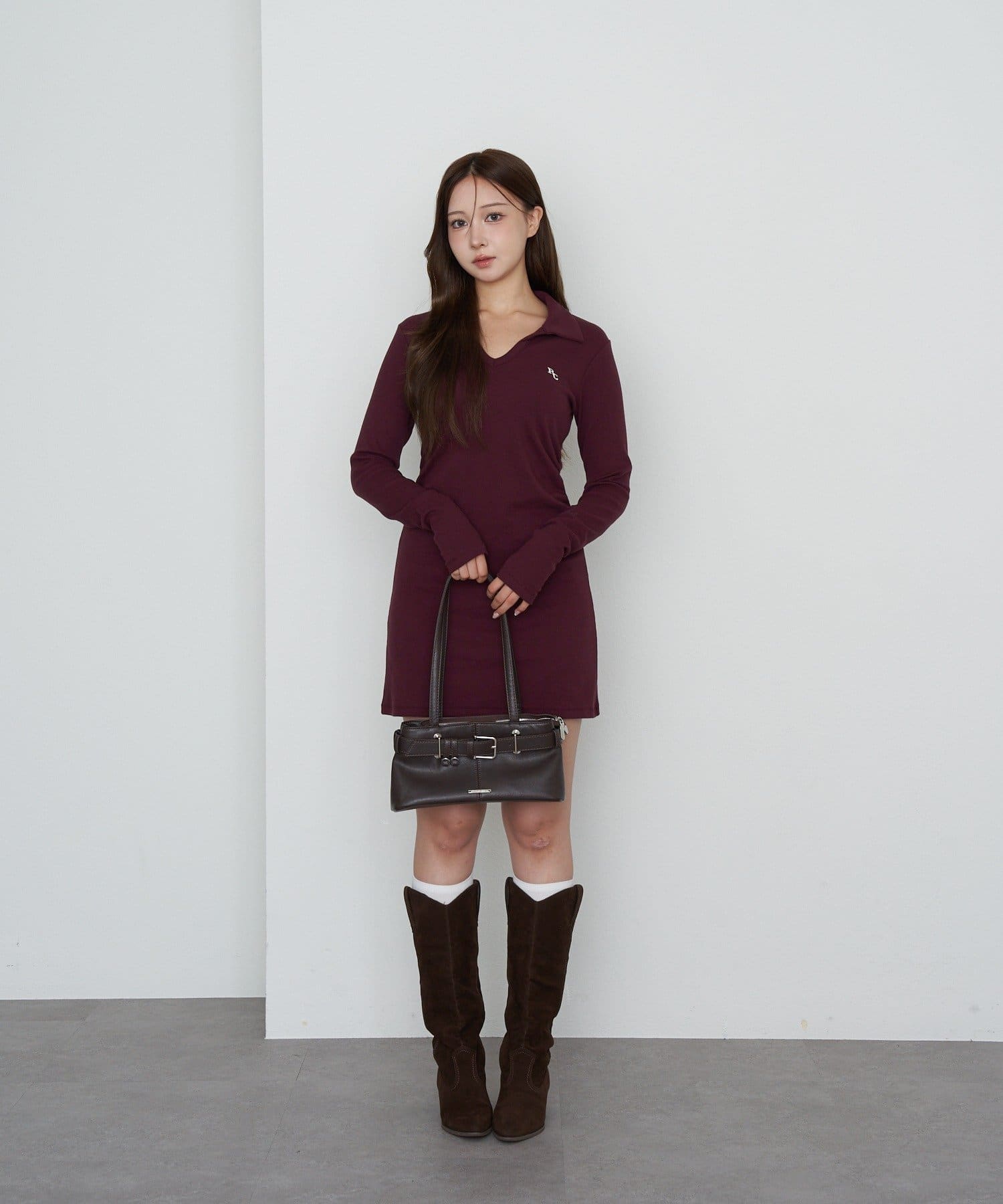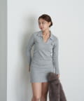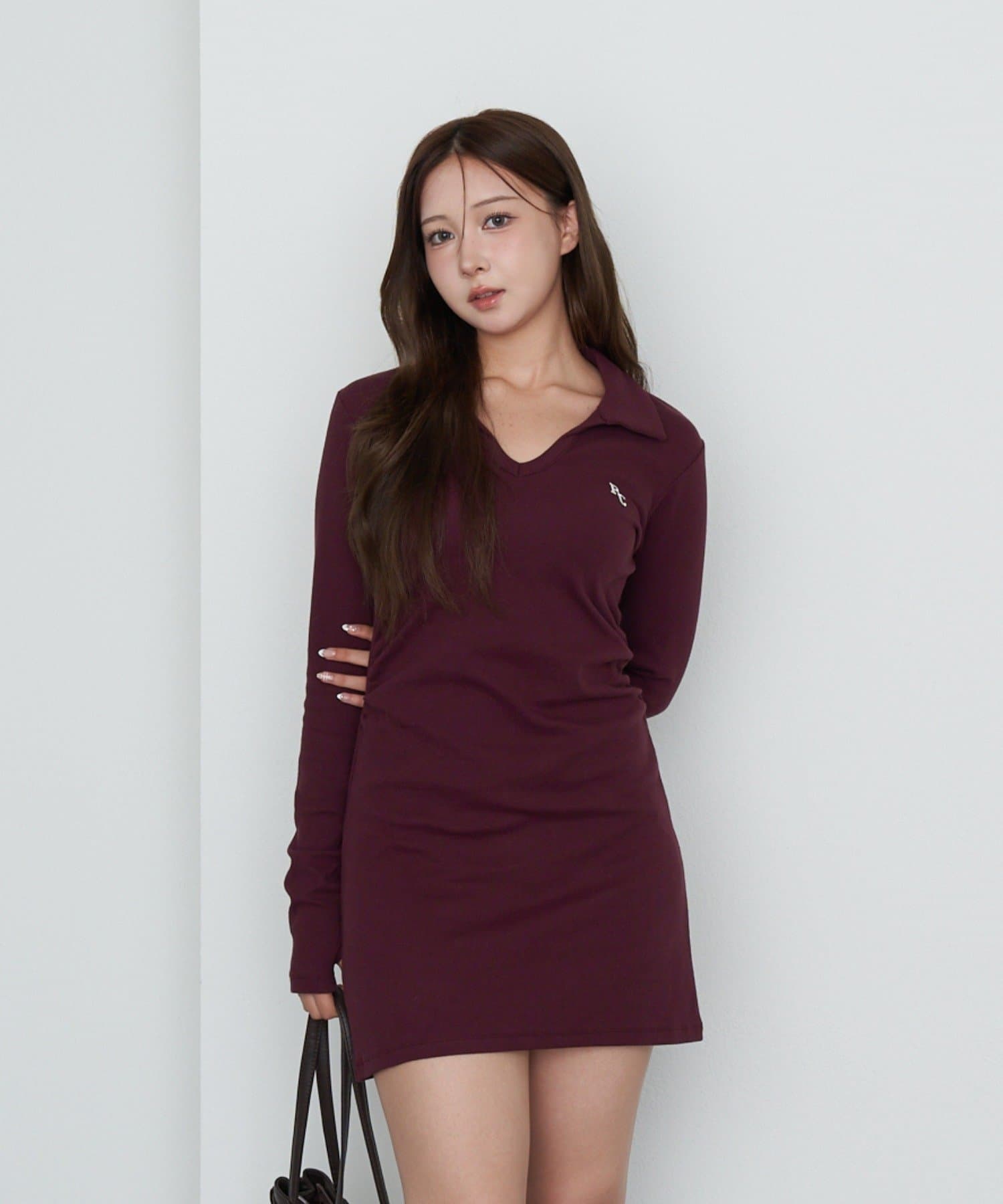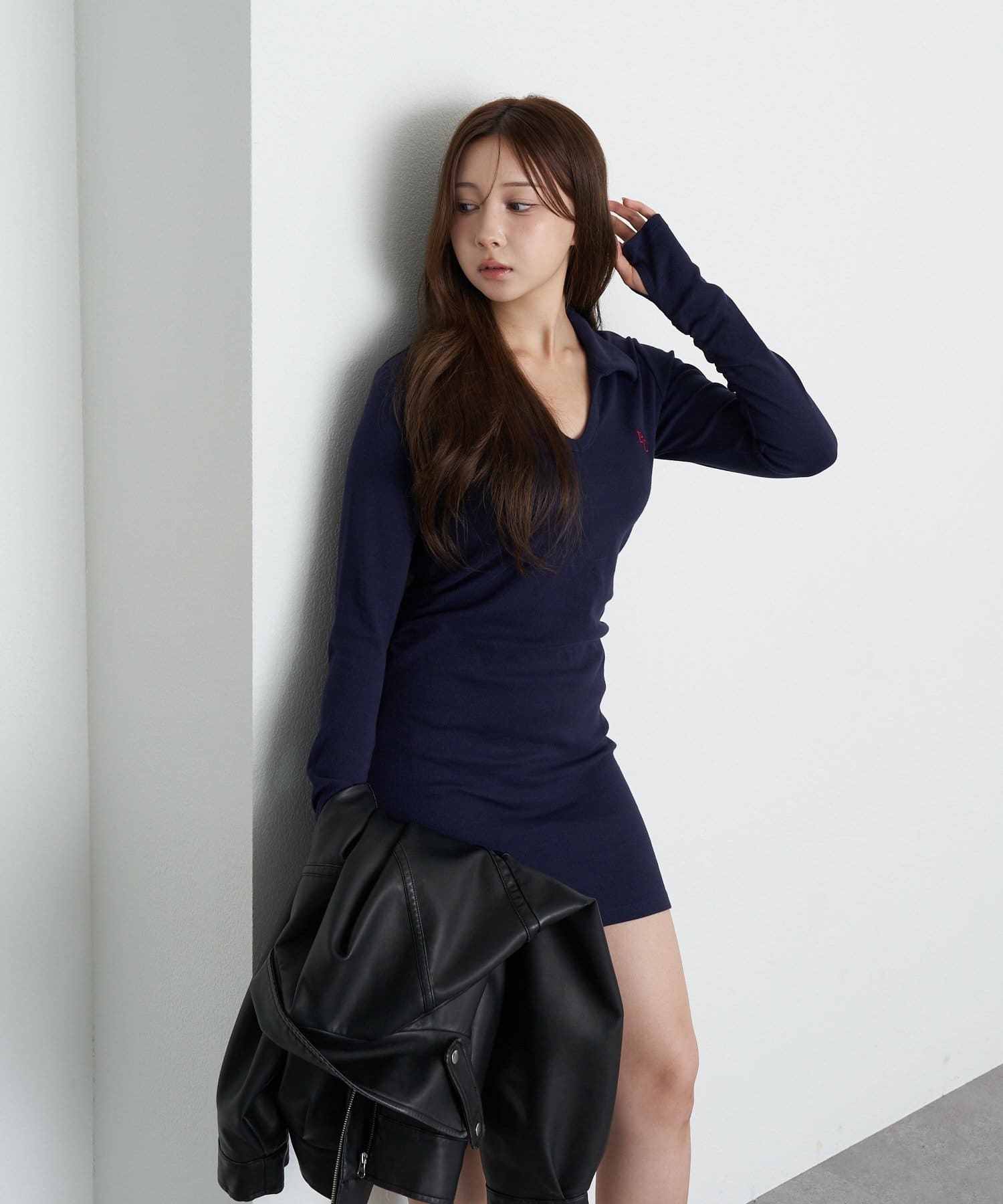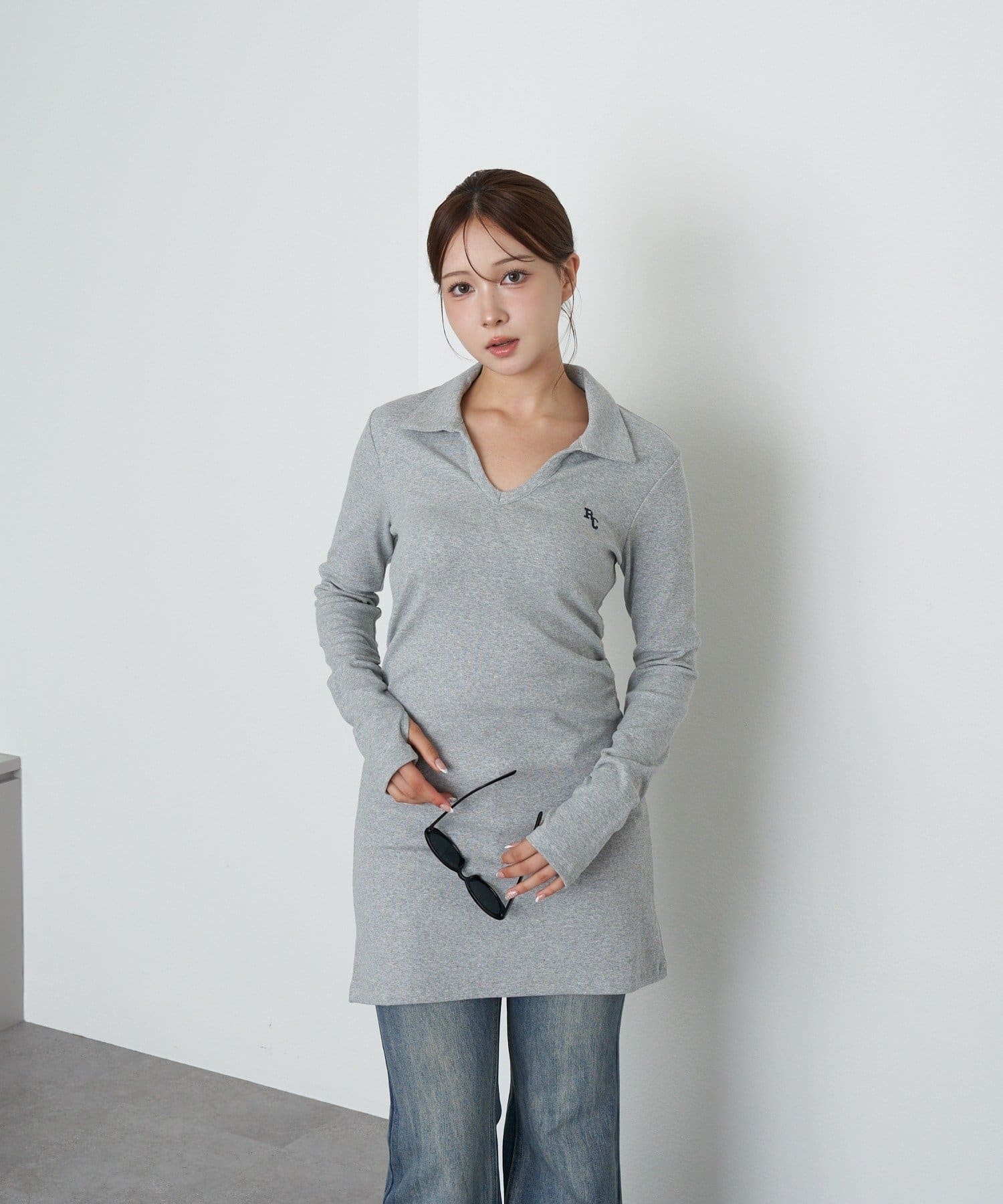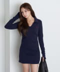 【RAY CASSIN】長袖スキッパーポロ刺繍ミニワンピース