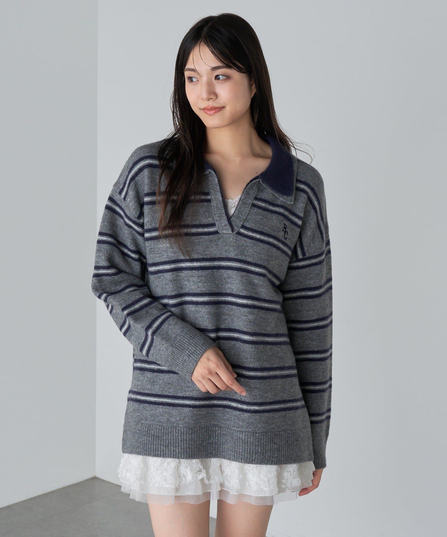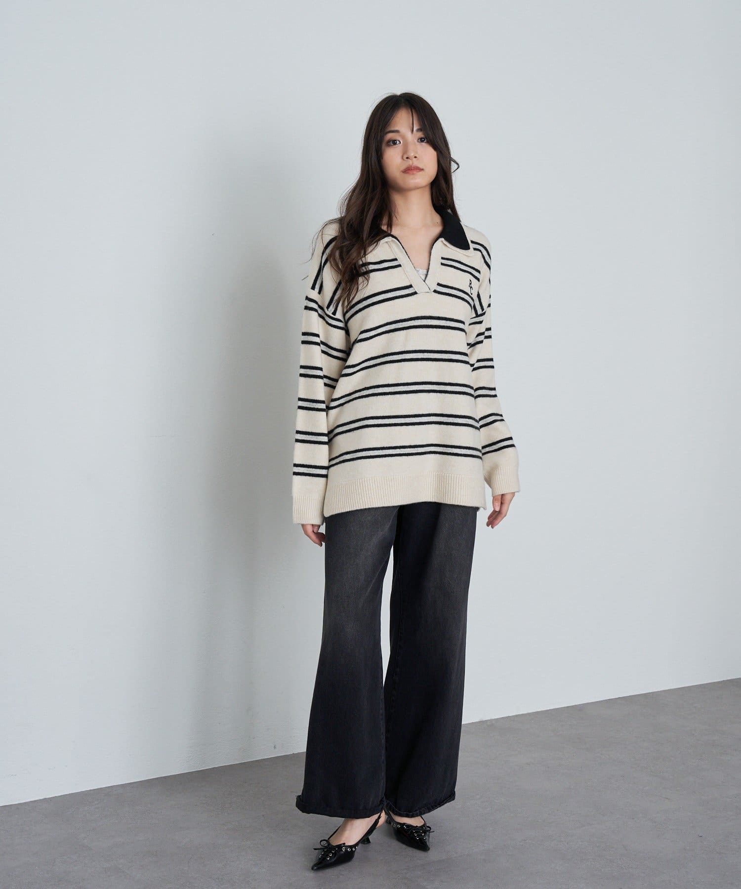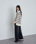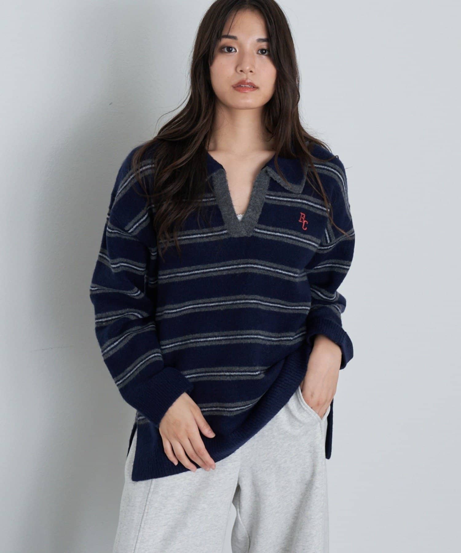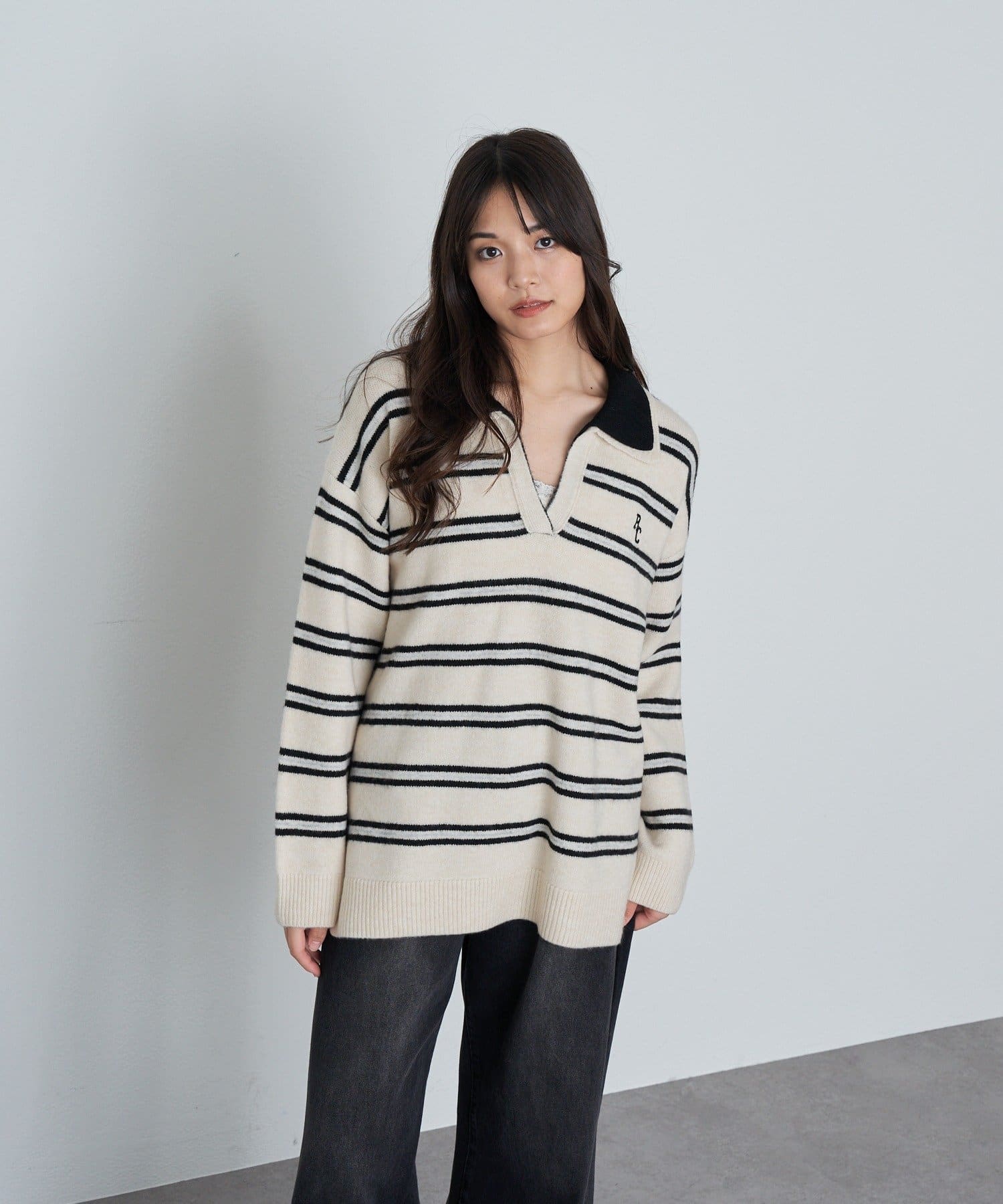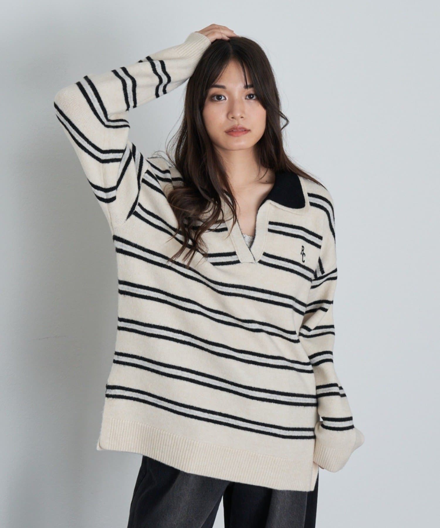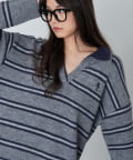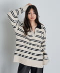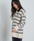 ボーダースキッパーポロ刺繍ニット