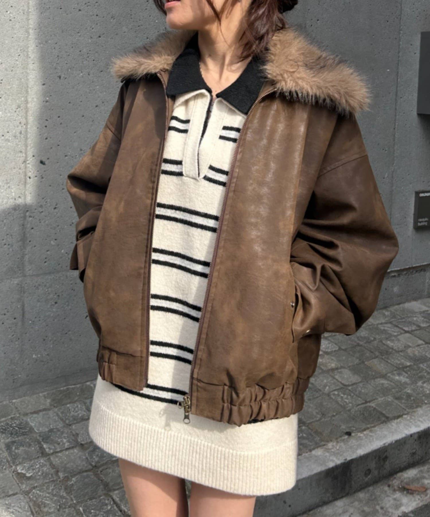 ・お尻が隠れる丈感ですが、サイドに深めのスリットが入るので着膨れしにくい◎