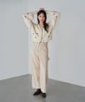 ・カジュアルなスタイリングがお好みの方には、ワイドデニムやスラックスなどゆったりとしたボトム合わせがオススメです。