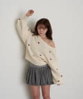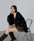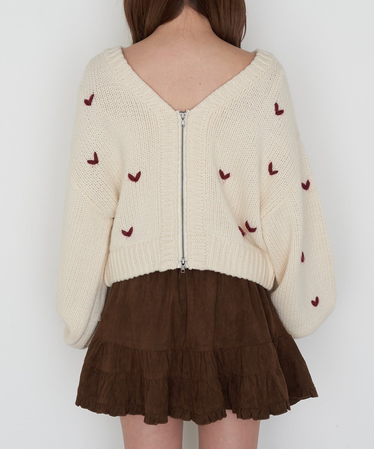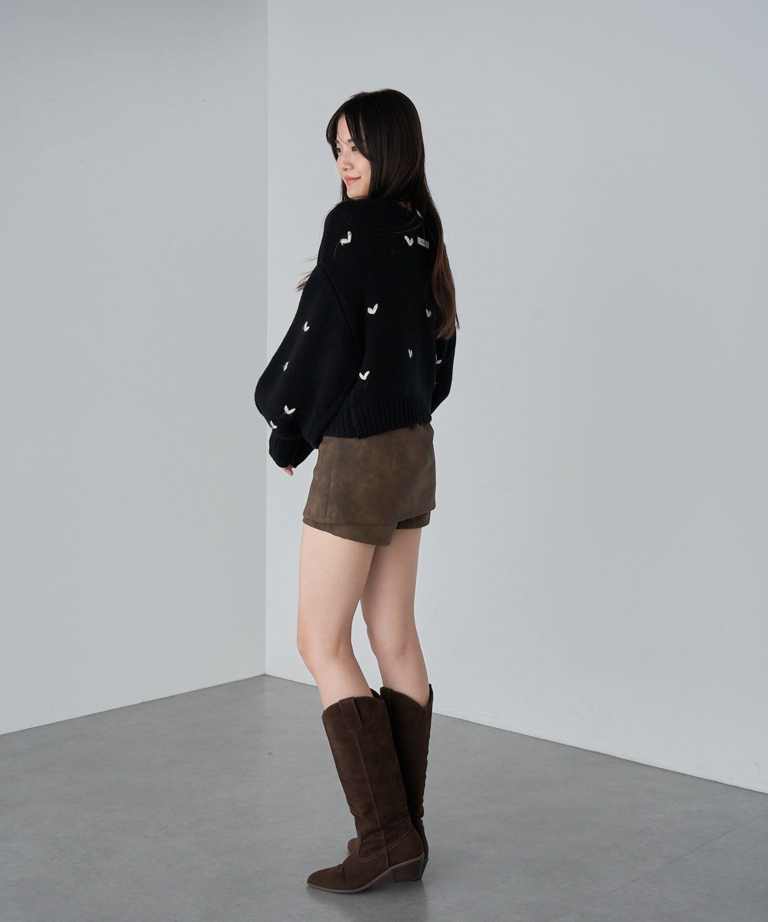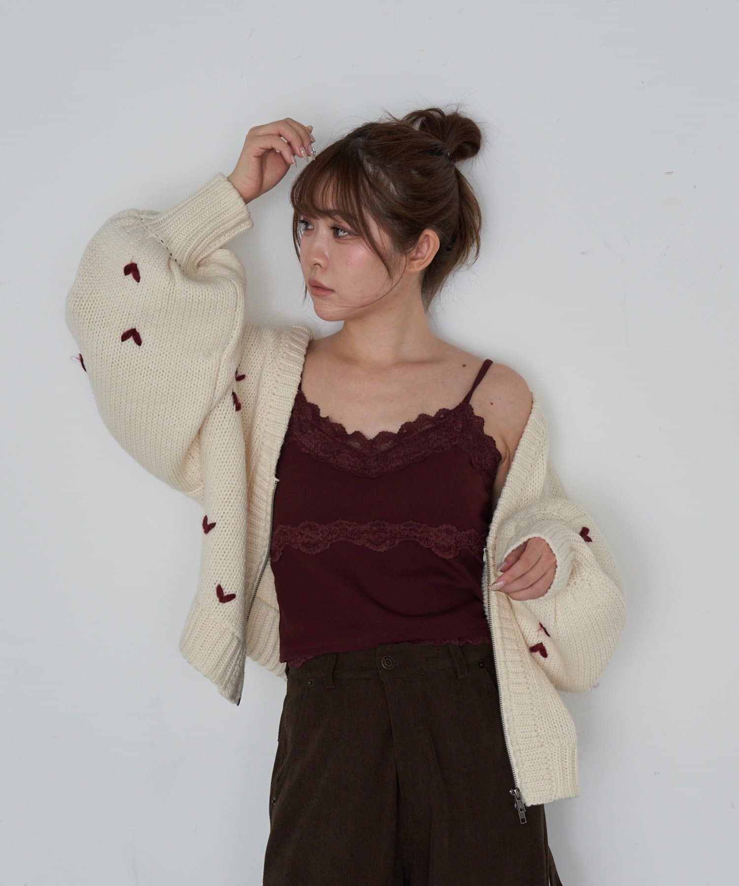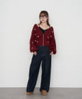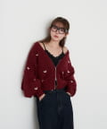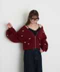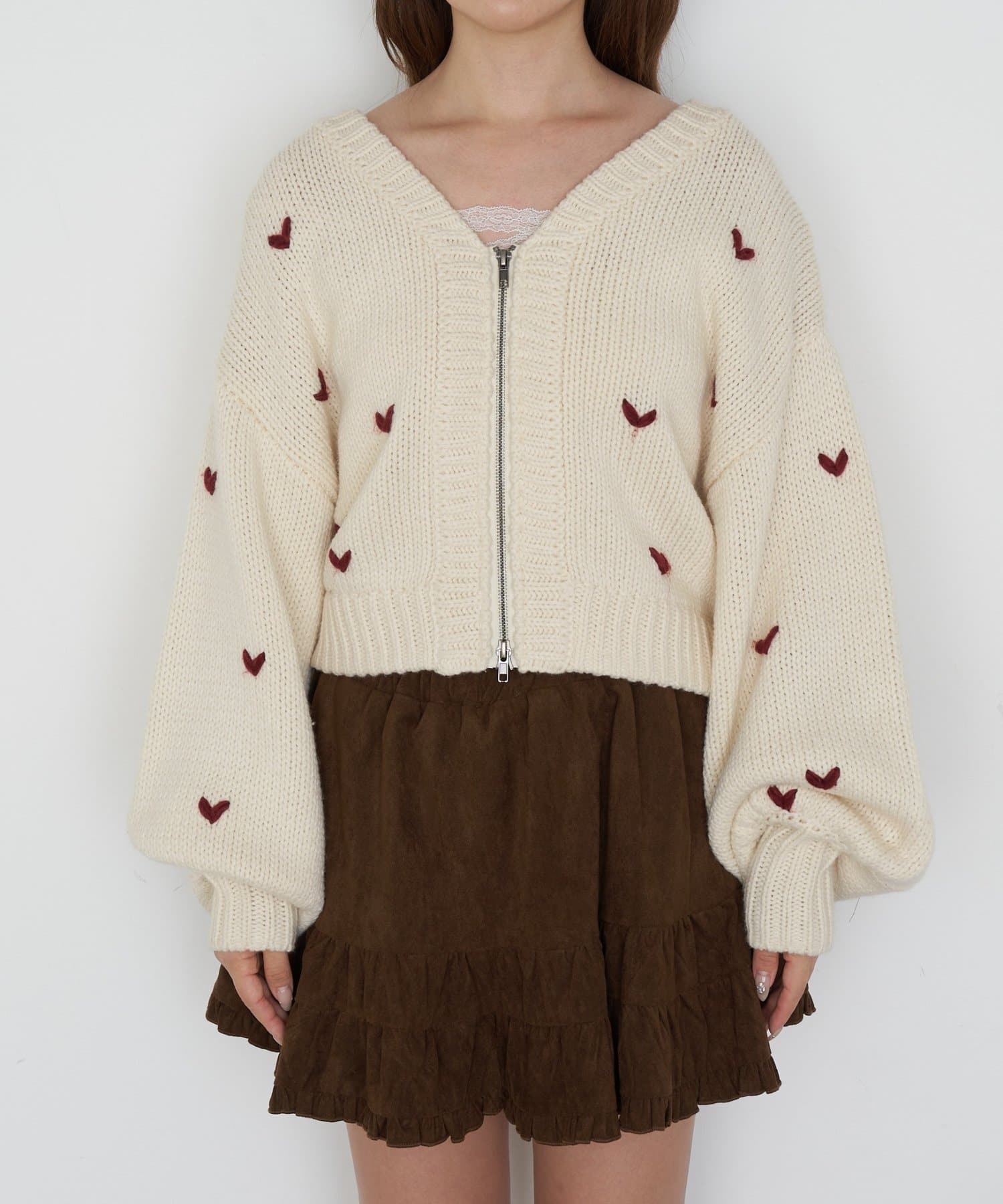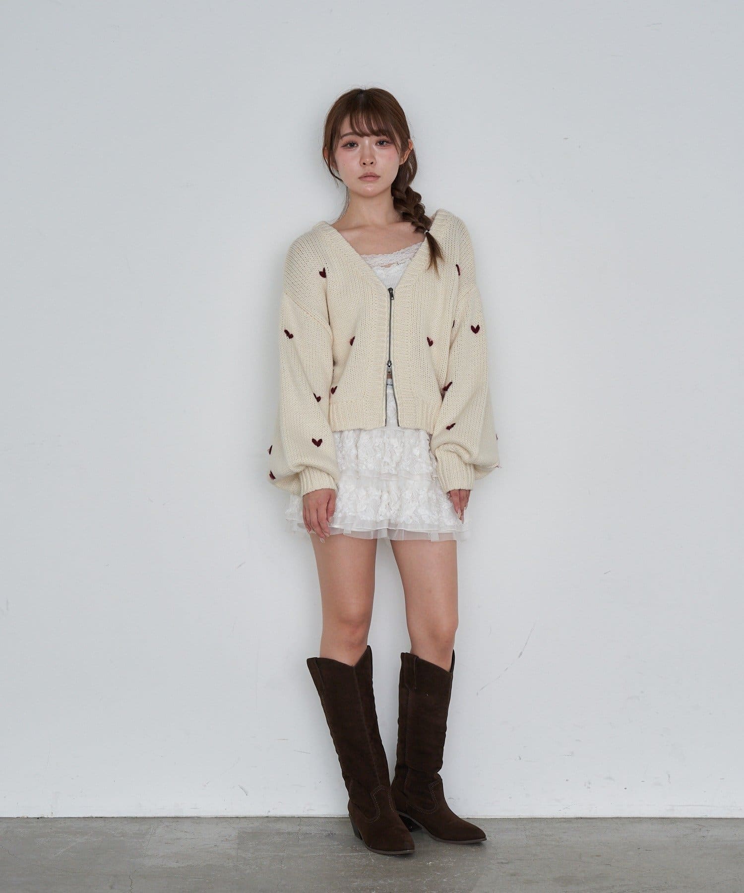 RAY CASSIN(レイカズン) ジップルーズハート柄ショートカーディガン